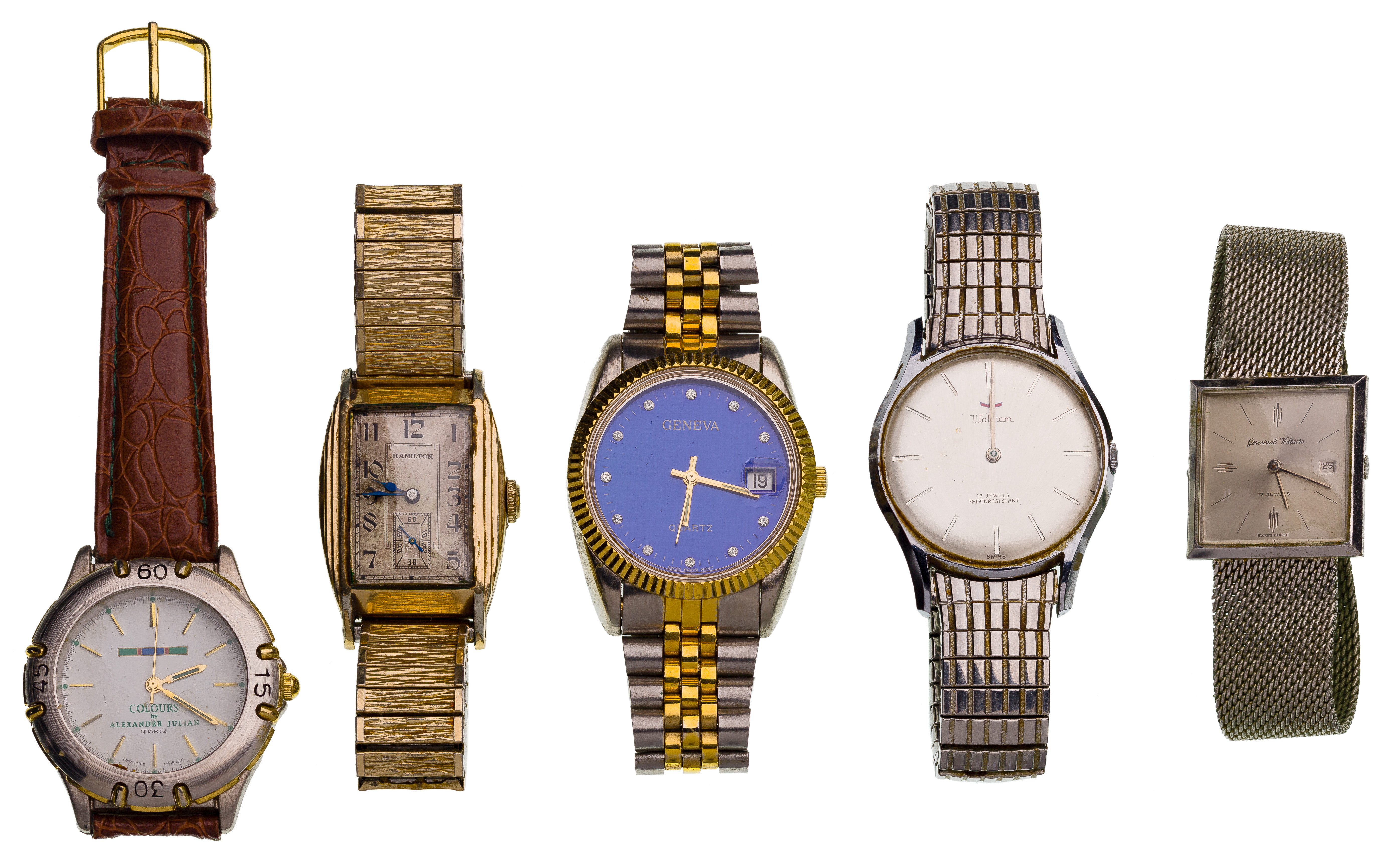 Condition: overall light to moderate wear consistent with normal use, some unmarked but XRF tested as 0.970 platinum, some unmarked but XRF tested as 18k / 10k gold