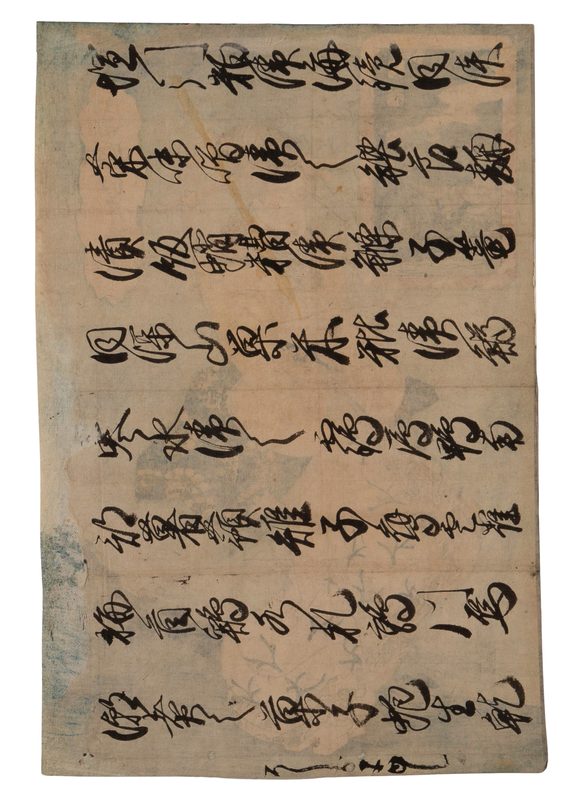 Kuniyoshi having yellow staining and paper loss on back, frames having minor chips and paint loss