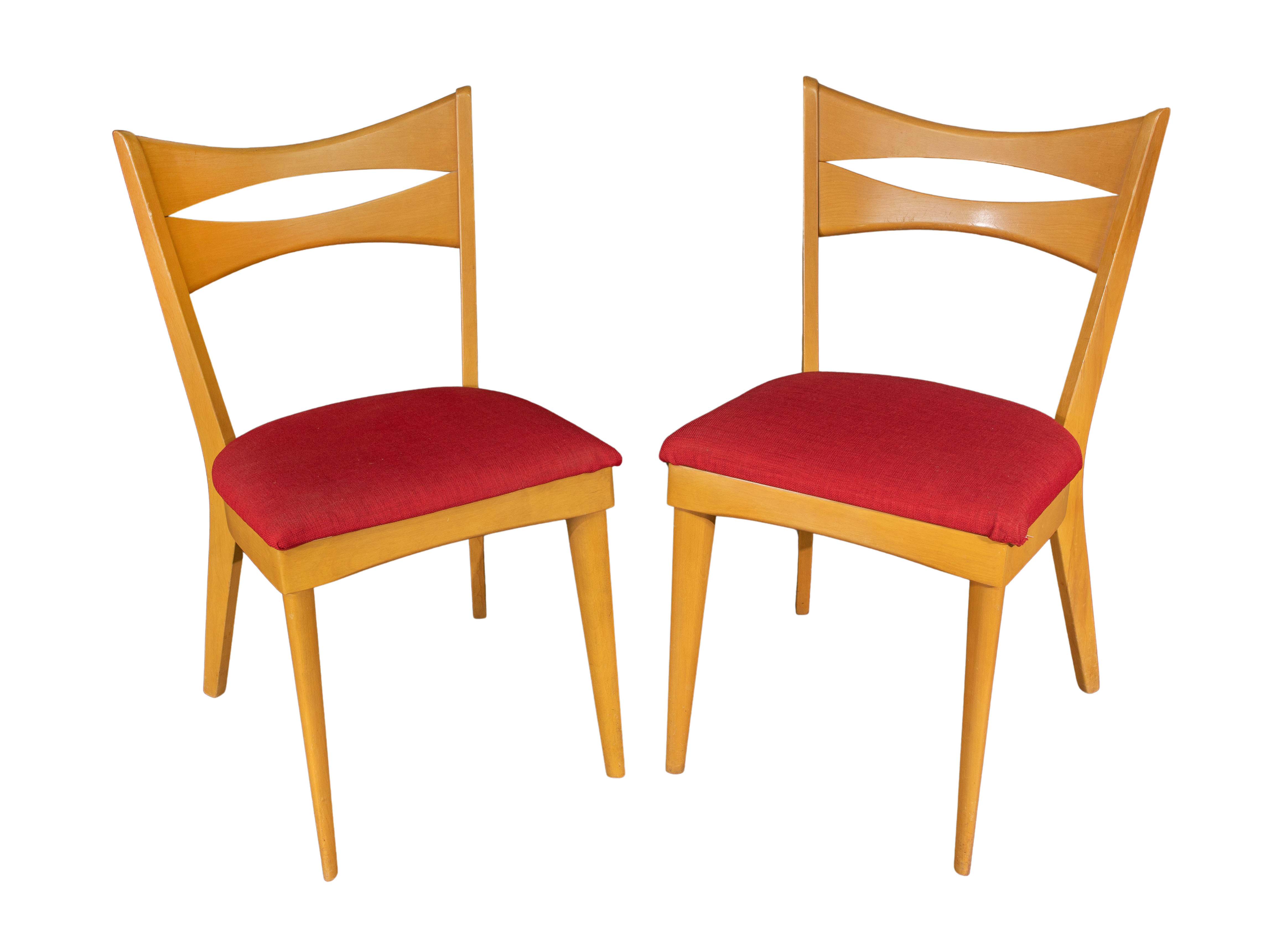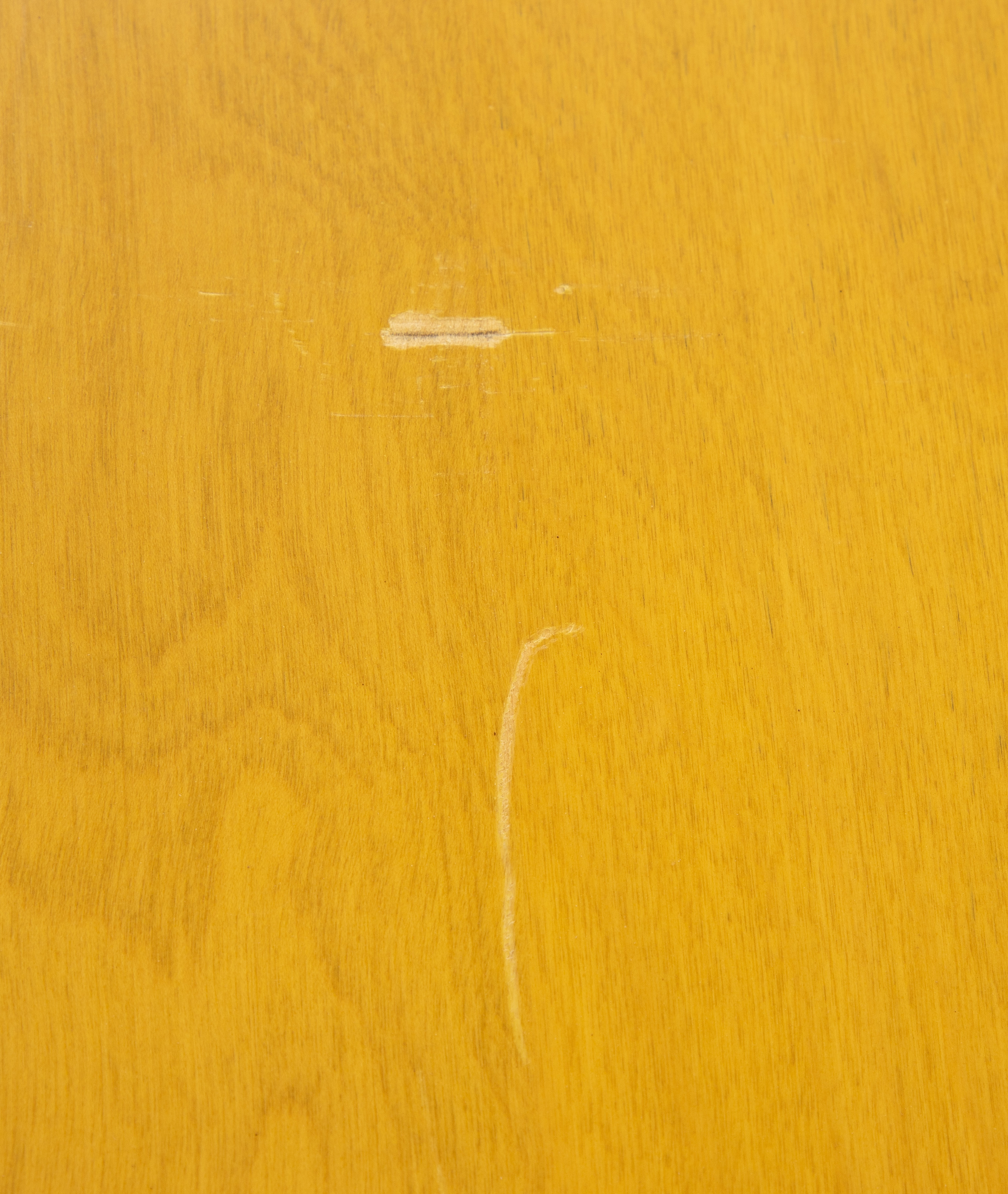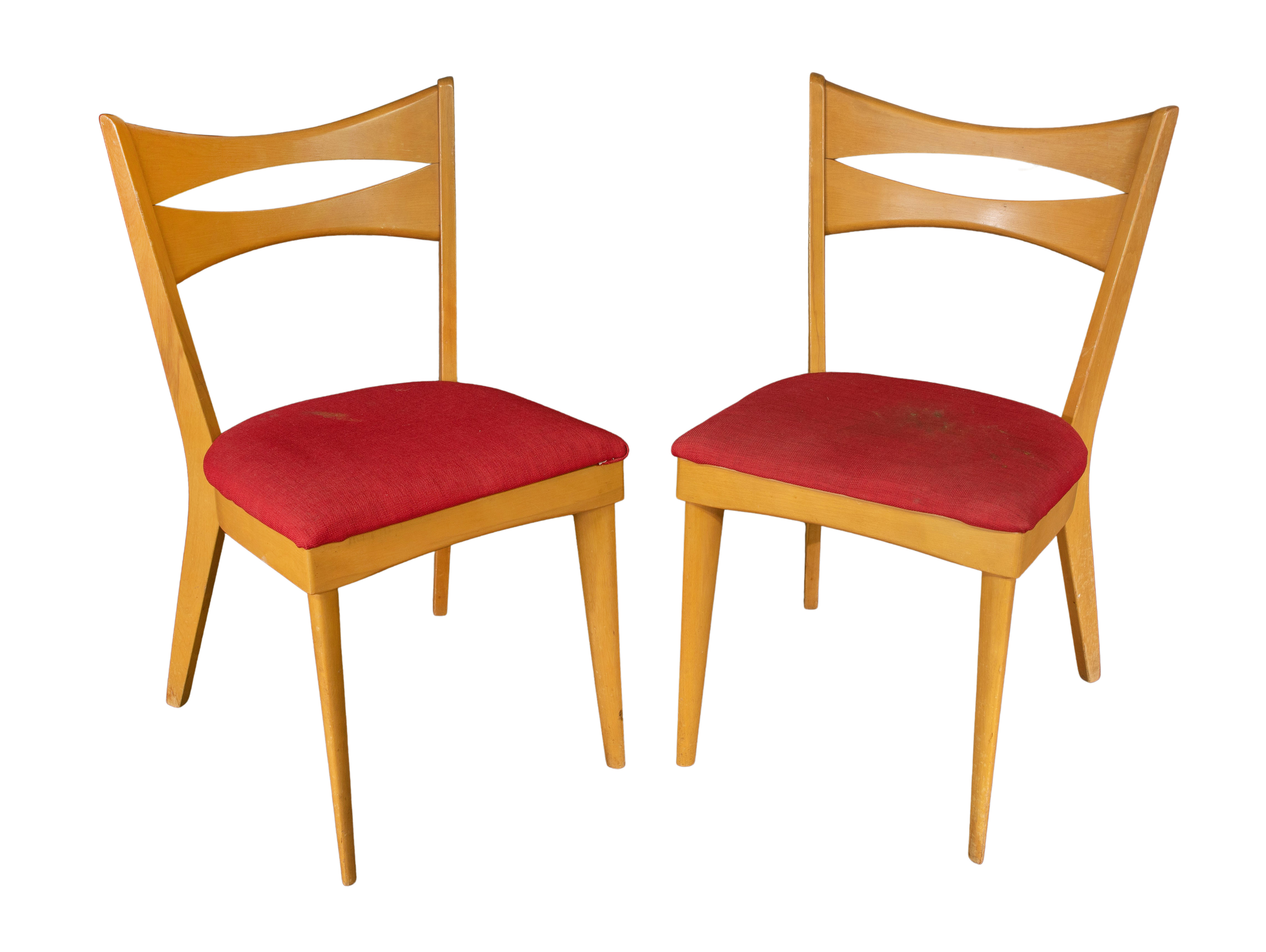 Gibbings having chips, finish loss throughout, Heywood Wakefield table and chairs having scratches, minor finish loss, seat upholstery having stains