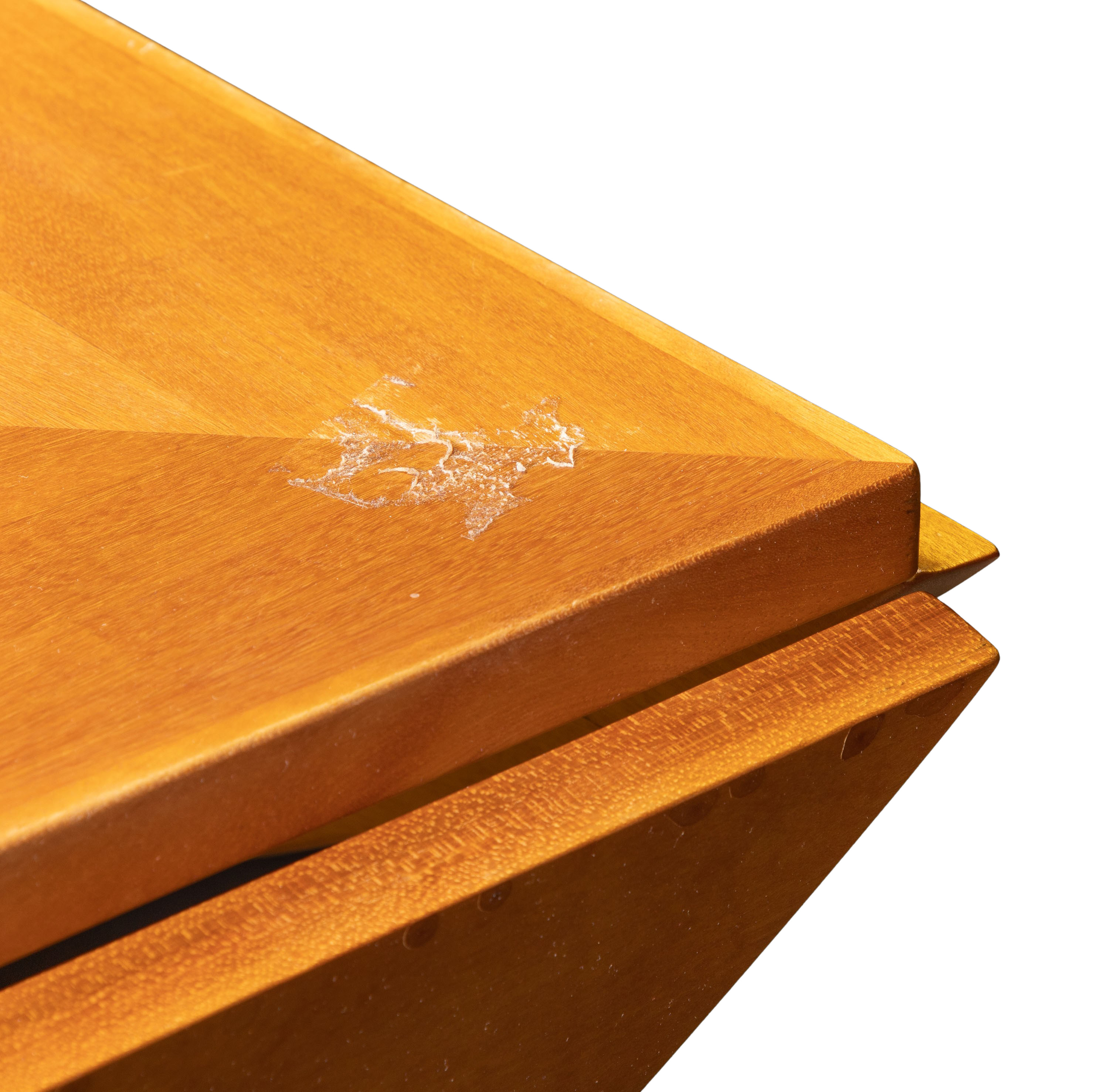 Condition: overall light wear consistent with normal use, chips, nicks, scratches, scuffs and finish wear overall, table having broken button for extension, a chair missing a seat support bungee