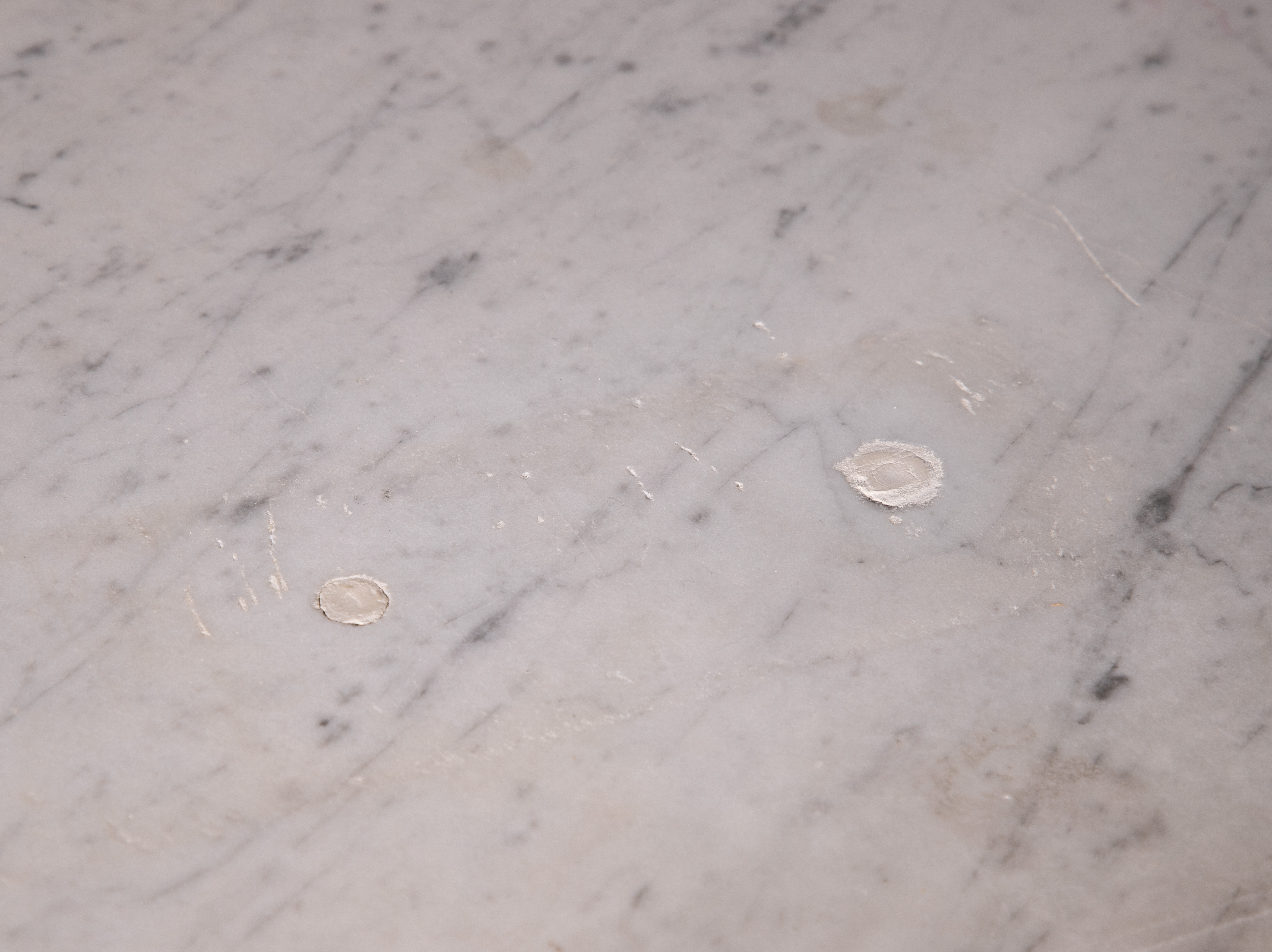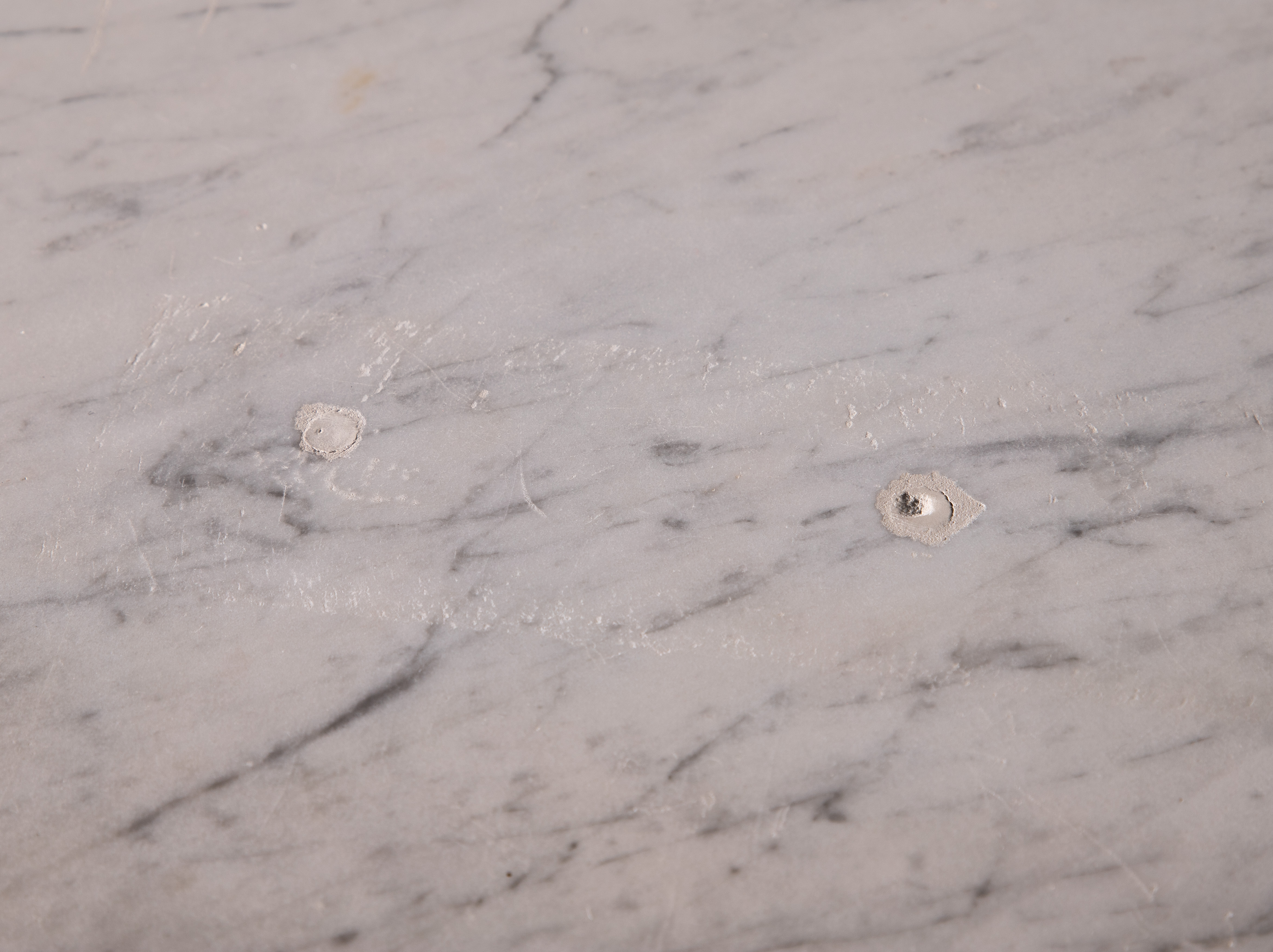 overall light to moderate wear consistent with normal use, bow front having a loose leg, cracks, scratches, nicks, chips, veneer cracking and missing, serpentine having nicks, cracks to finish, refinished, chips to marble top, marble top having evidence of a top piece missing, knobs not original to piece