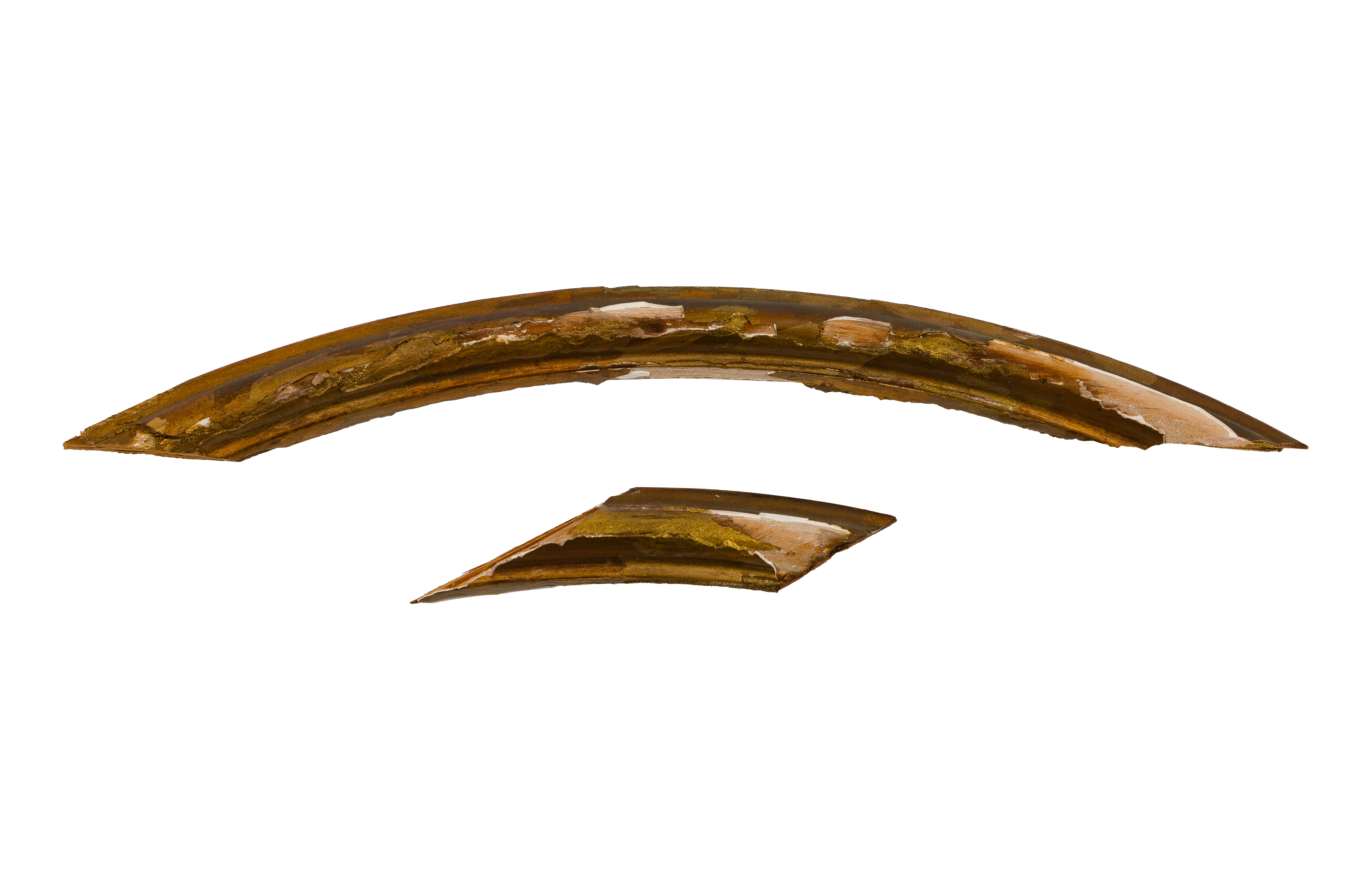 overall light to heavy wear consistent with normal use, chips, nicks, scuffs, gilt wear and missing gilt, overall, larger having loose bottom tassel, smaller having trim missing (included)