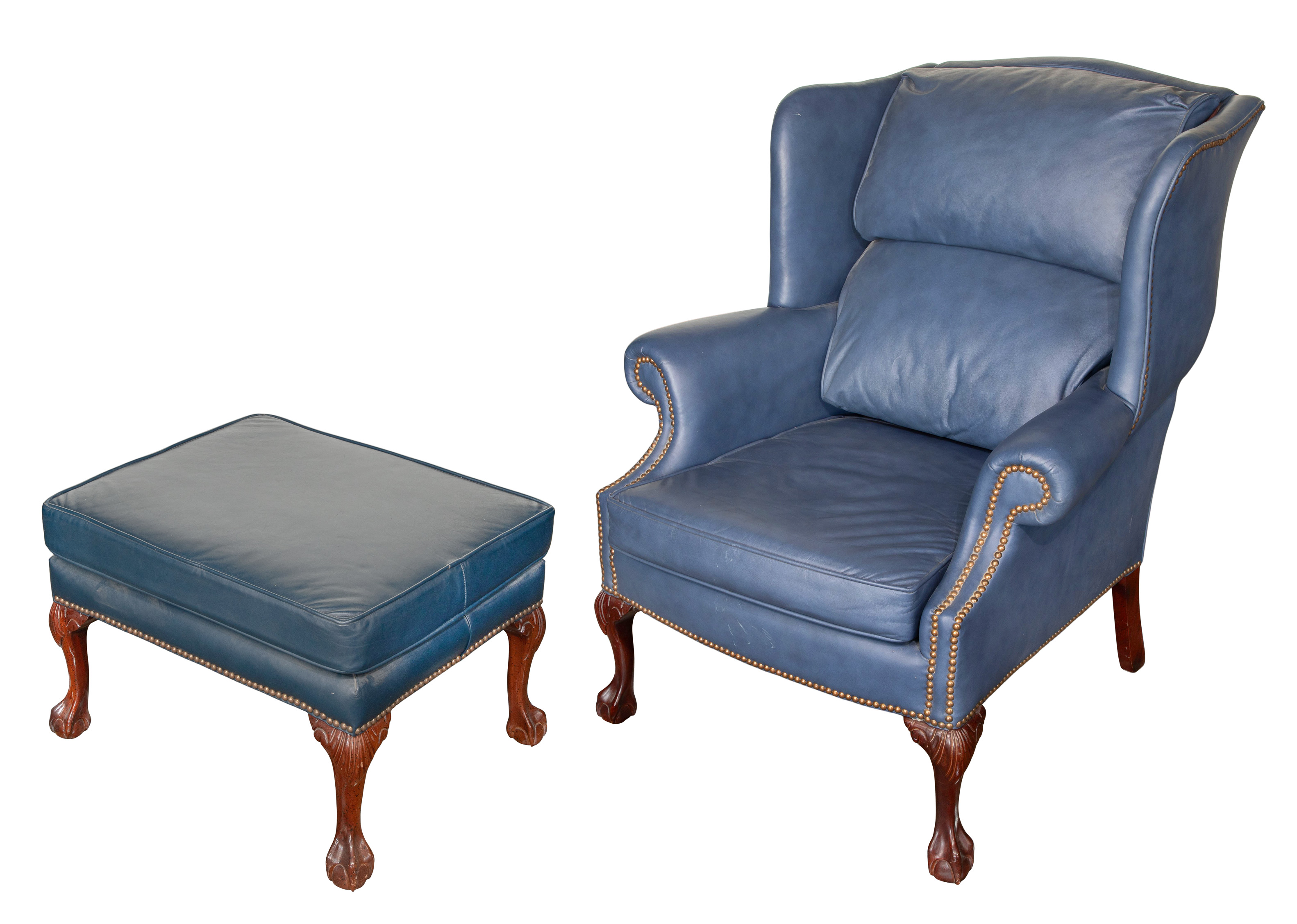 Classic Leather Inc. Leather Wingback Chair and Ottoman