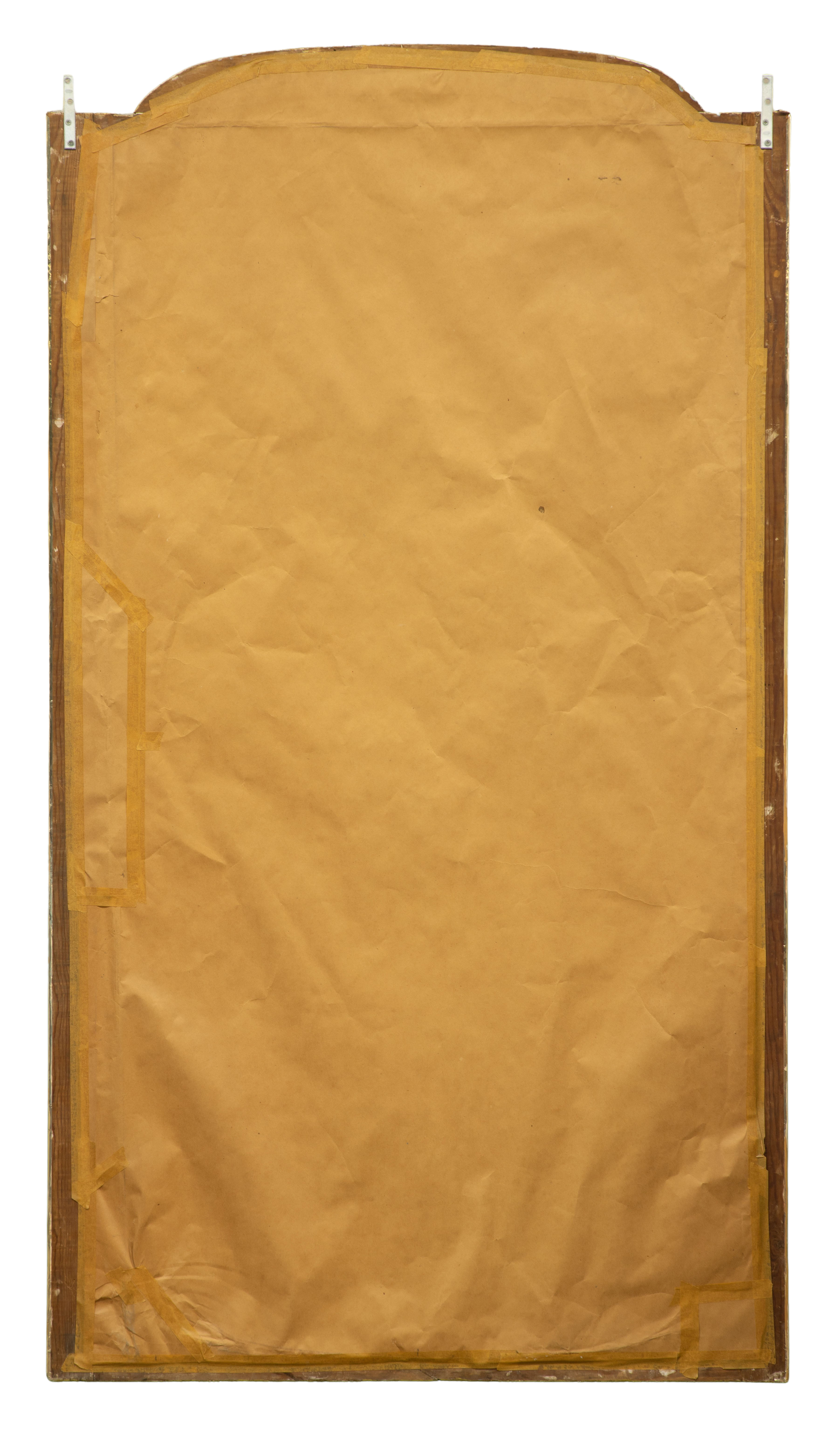 Condition: missing sections of gesso, small chips throughout, gold tape attached to edges