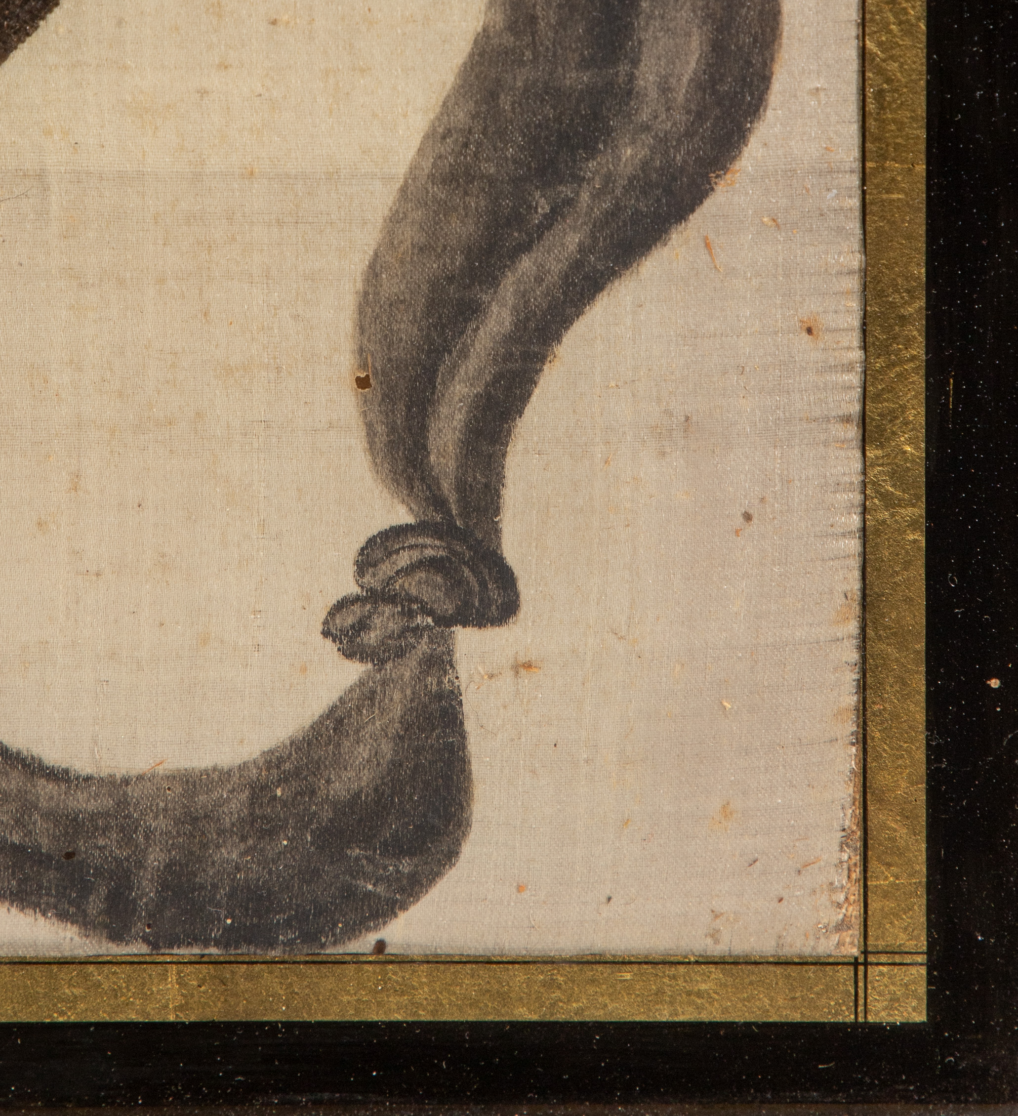 Condition: occasional light foxing in margins, paper below image having a short tear and loss lower left, frame having moderate wear including chips and scrapes to finish