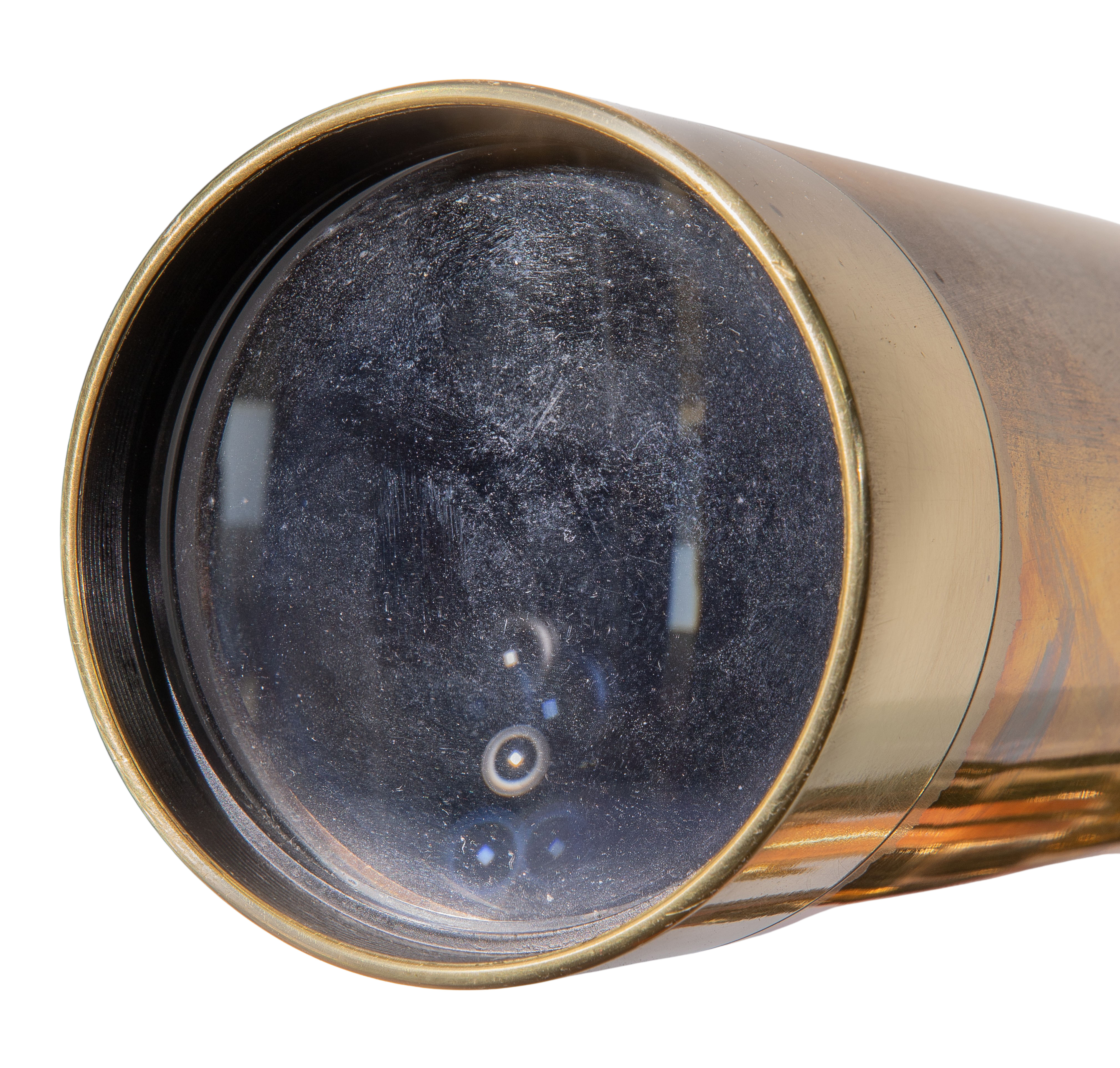 Condition: tarnish and light scratches on brass components, minor chips / finish loss on tripod, missing lens caps, not tested