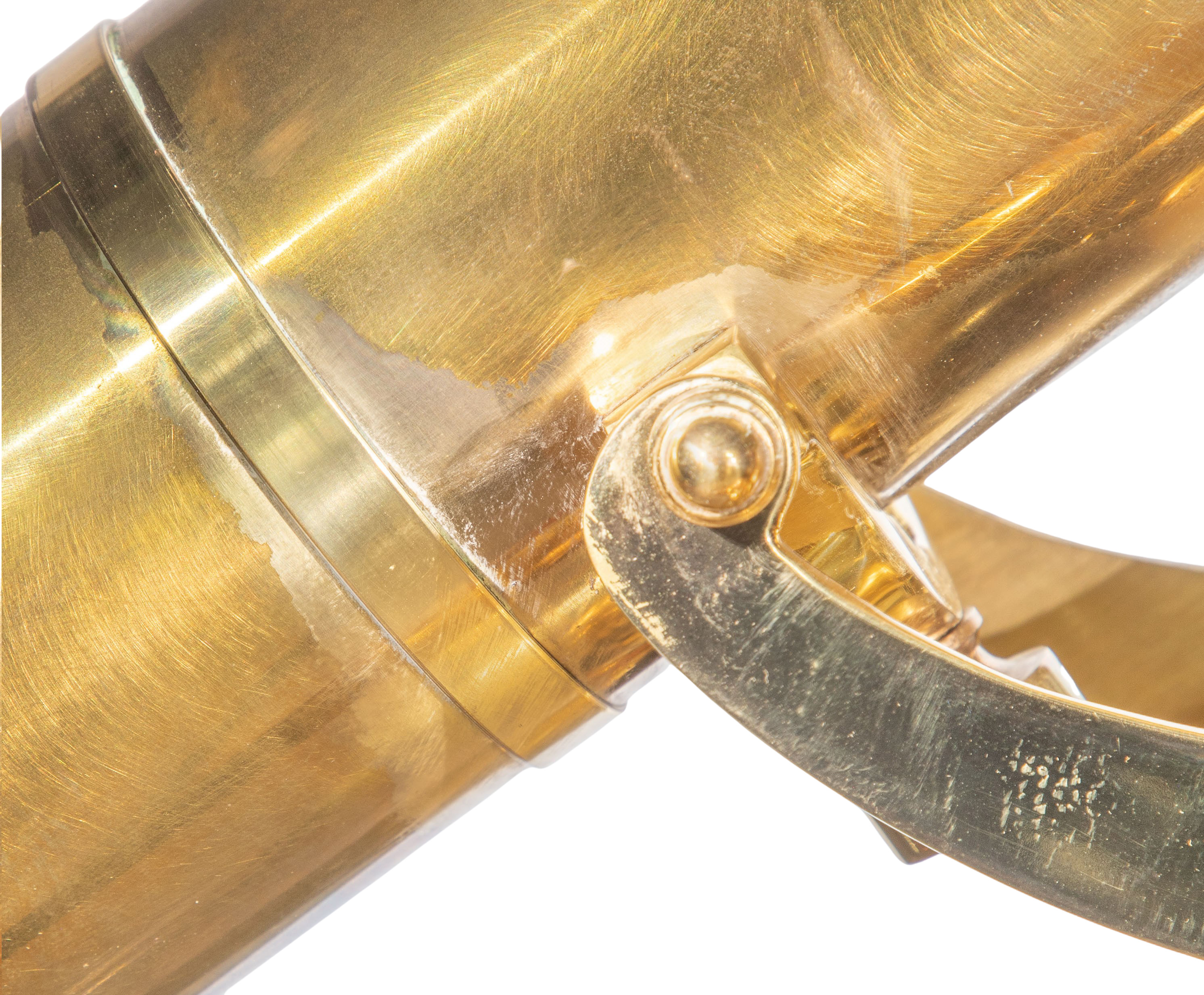 tarnish and light scratches on brass components, minor chips / finish loss on tripod, missing lens caps, not tested