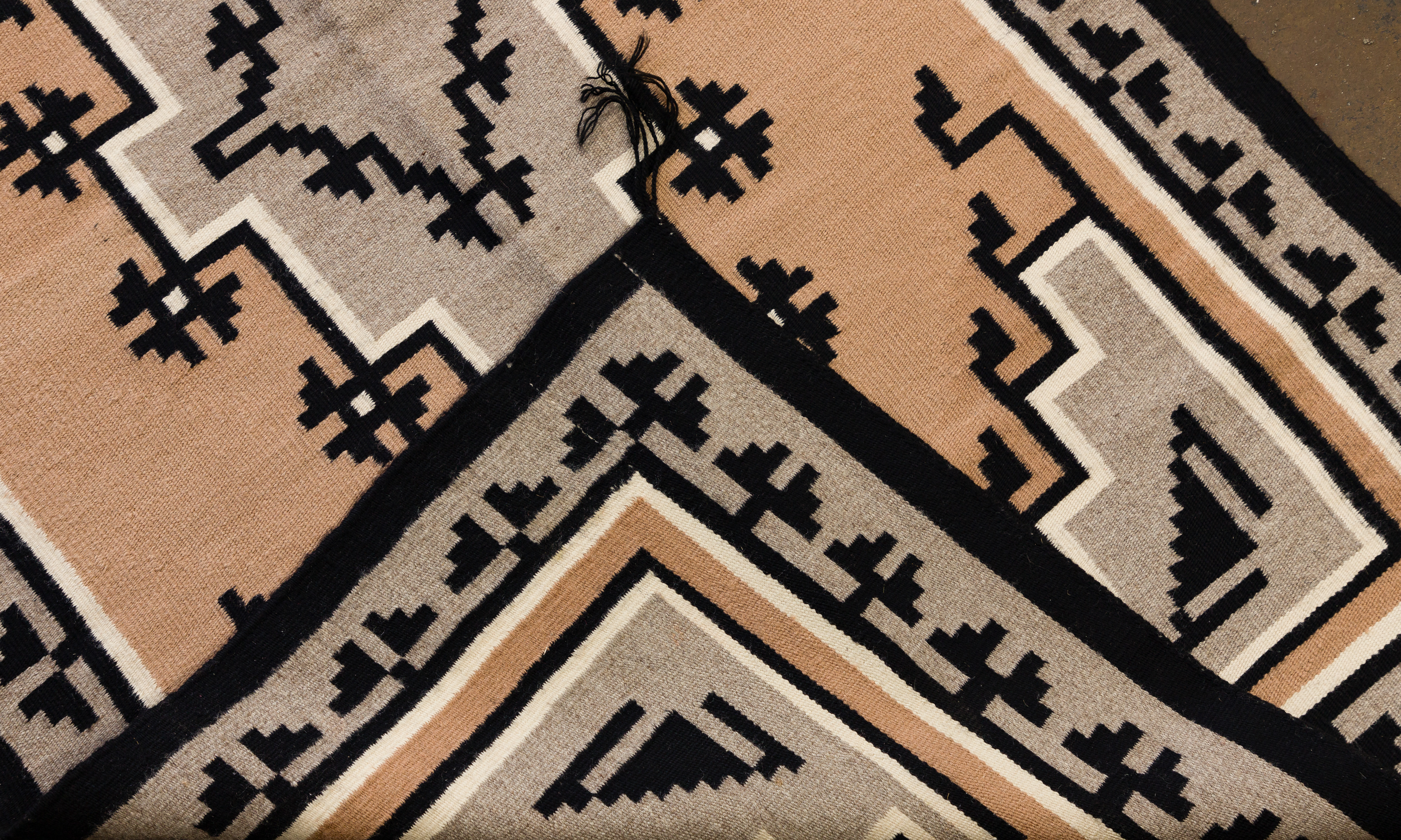 Condition: overall light wear consistent with normal use, largest having small stains near an end, lost tassels at worn corners, selvedge at sides having occasional loose ends at breaks