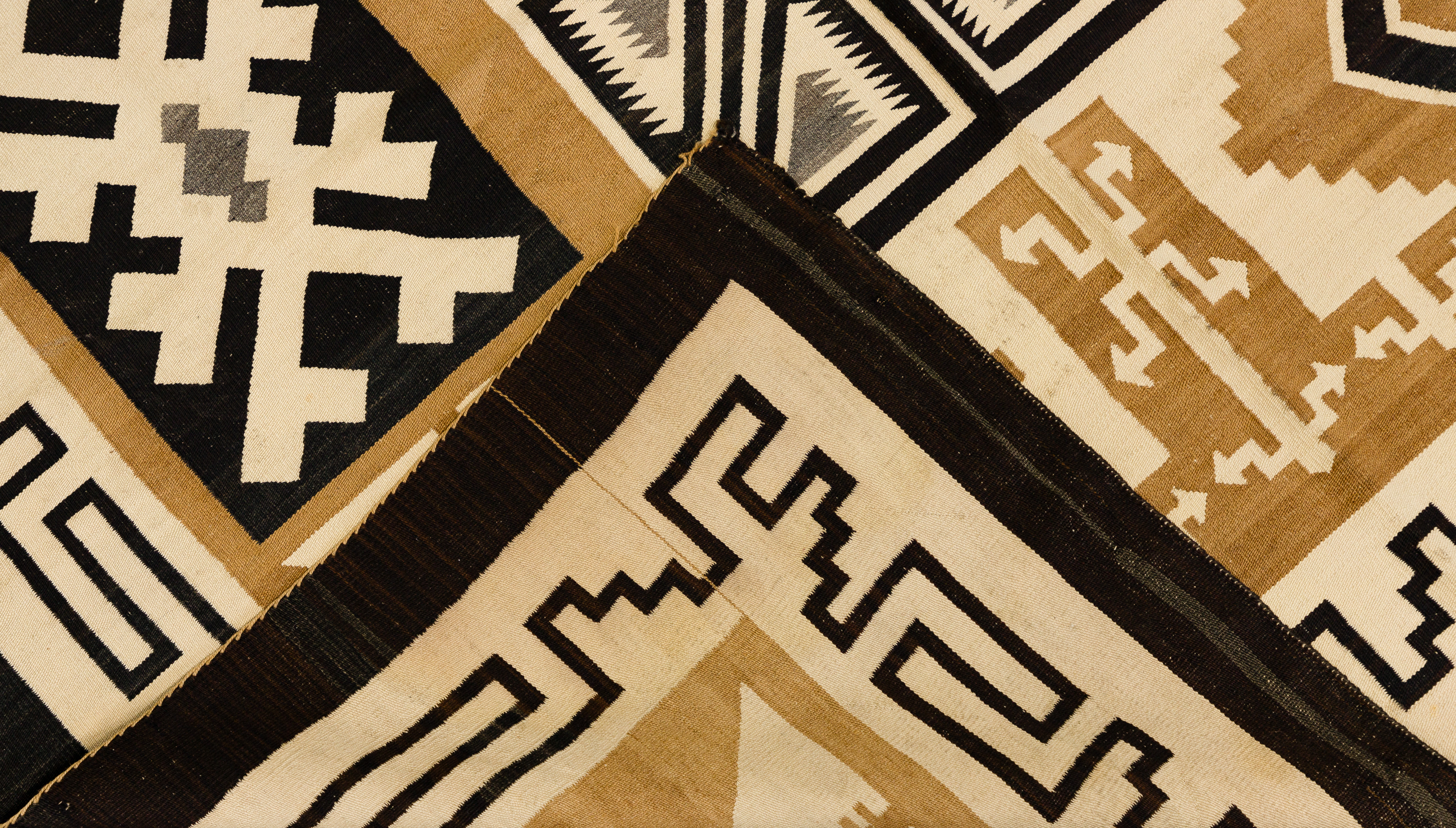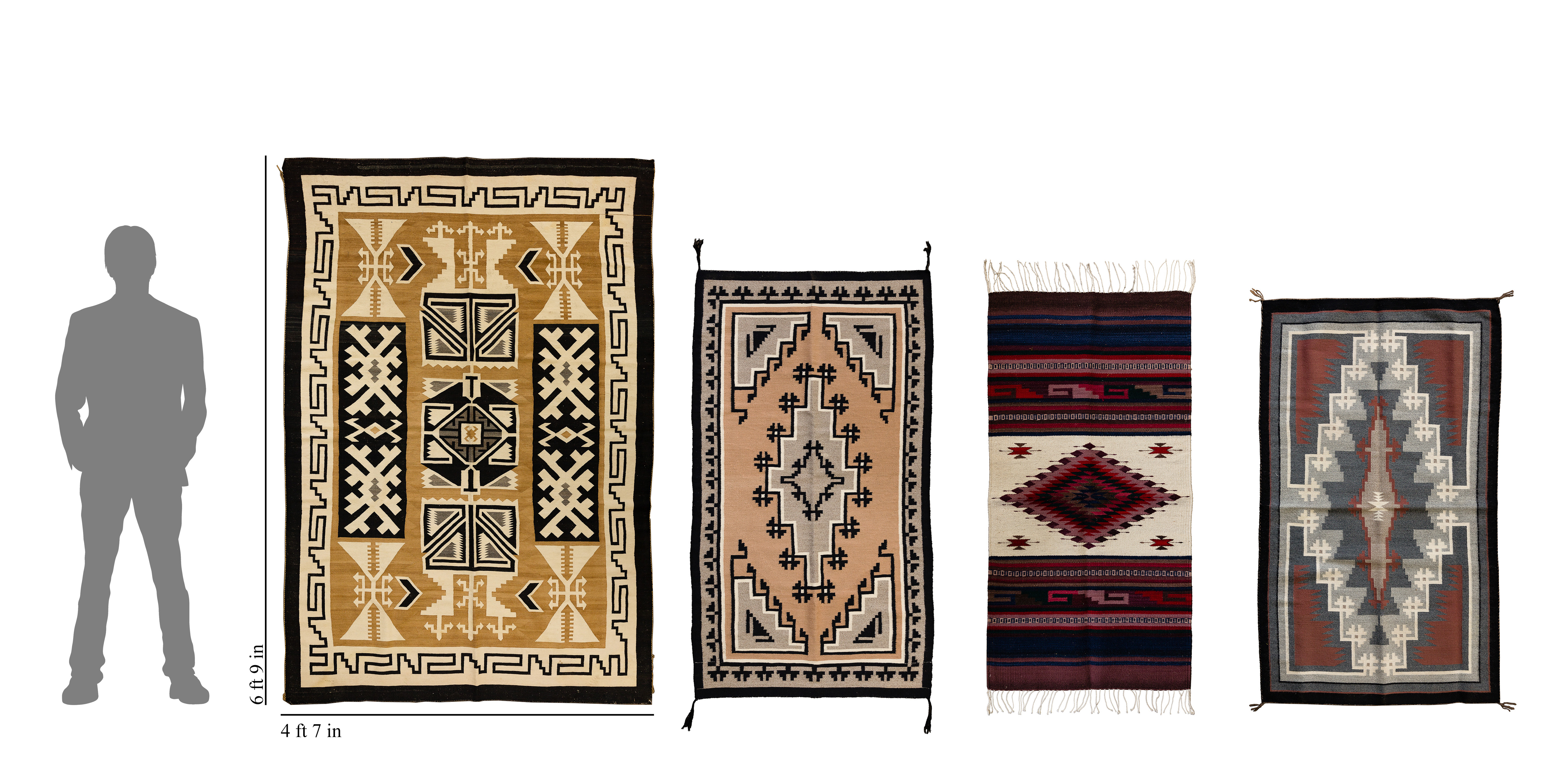 overall light wear consistent with normal use, largest having small stains near an end, lost tassels at worn corners, selvedge at sides having occasional loose ends at breaks
