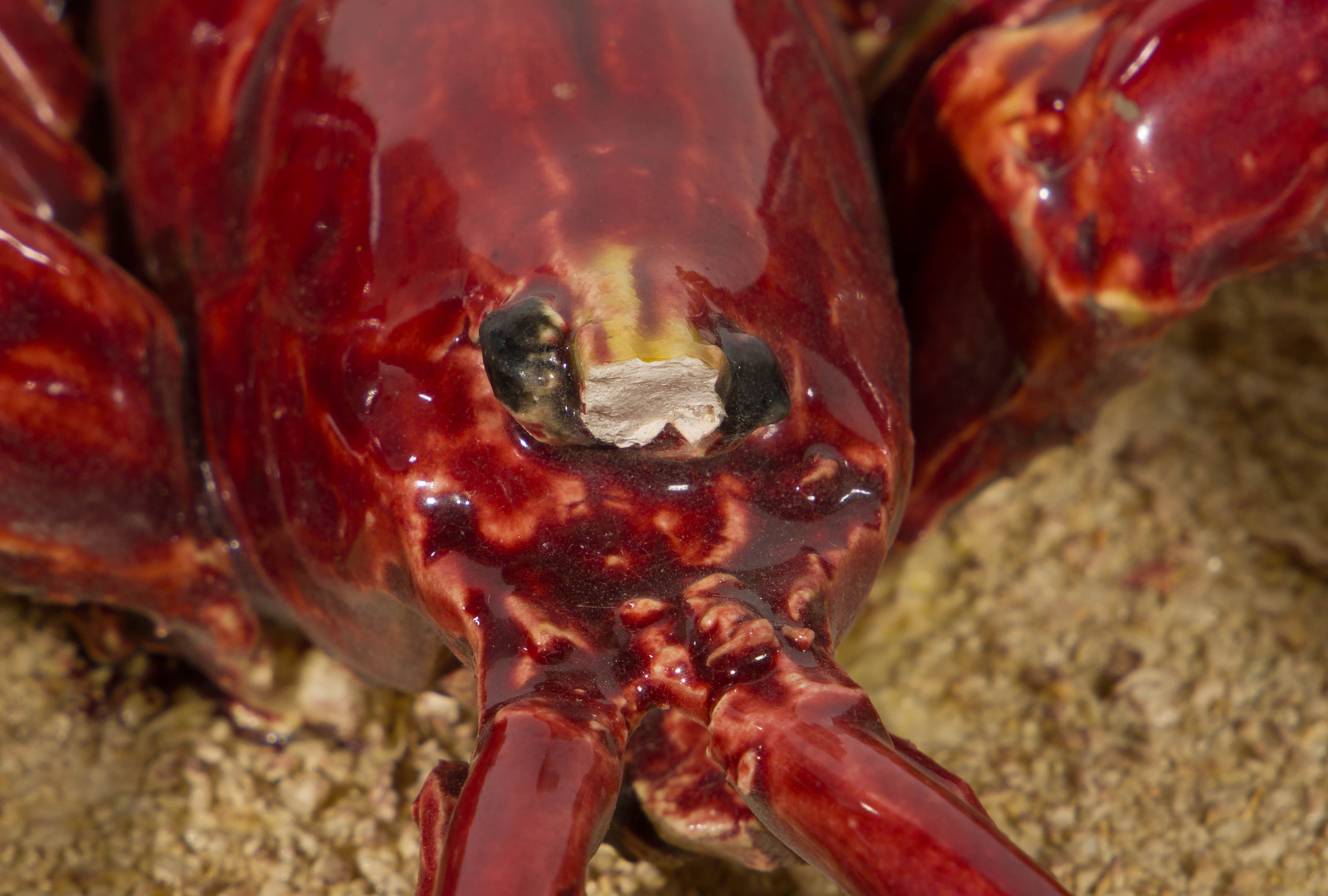 lobster having broken / missing antennas, no damage noted to crab plate, crab having repairs on legs and small pieces missing