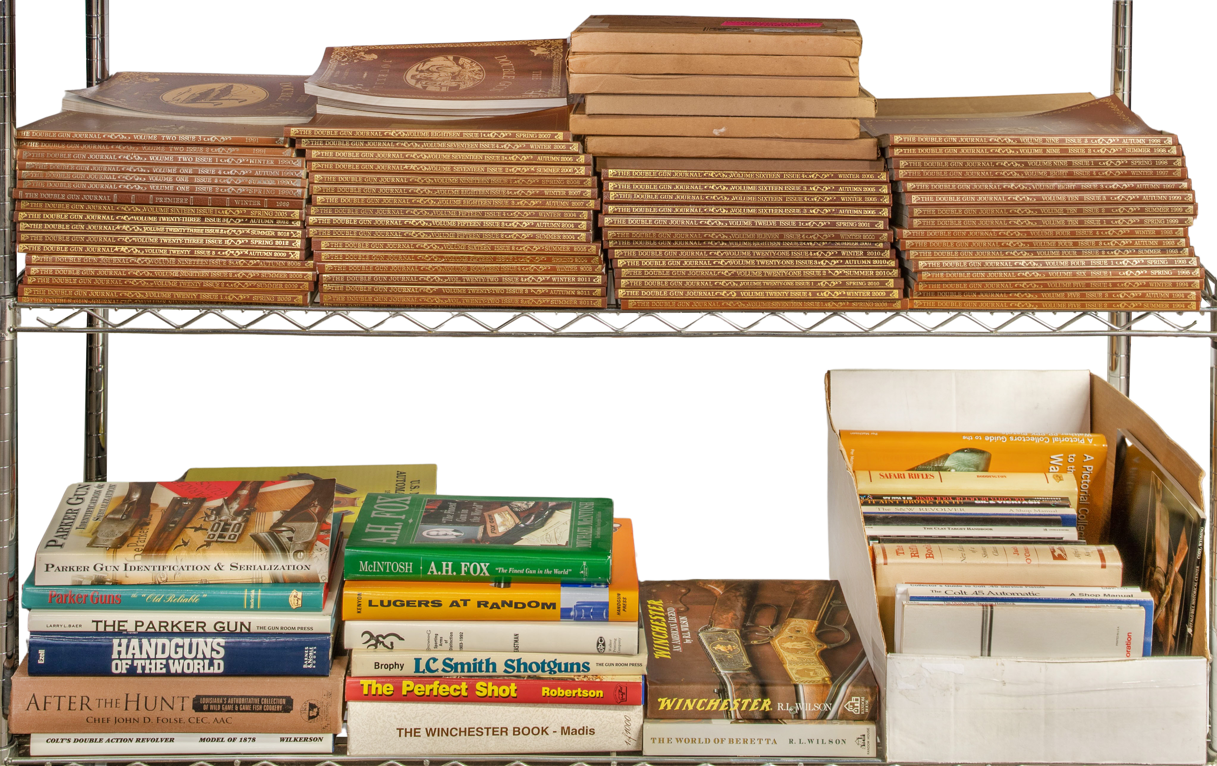 Approximately (150) hard and soft cover books, including approximately (120) issues of ‘The Double Gun Journal’ periodical from the 1990s and early 2000s, eleven of which remain sealed in shipping cartons