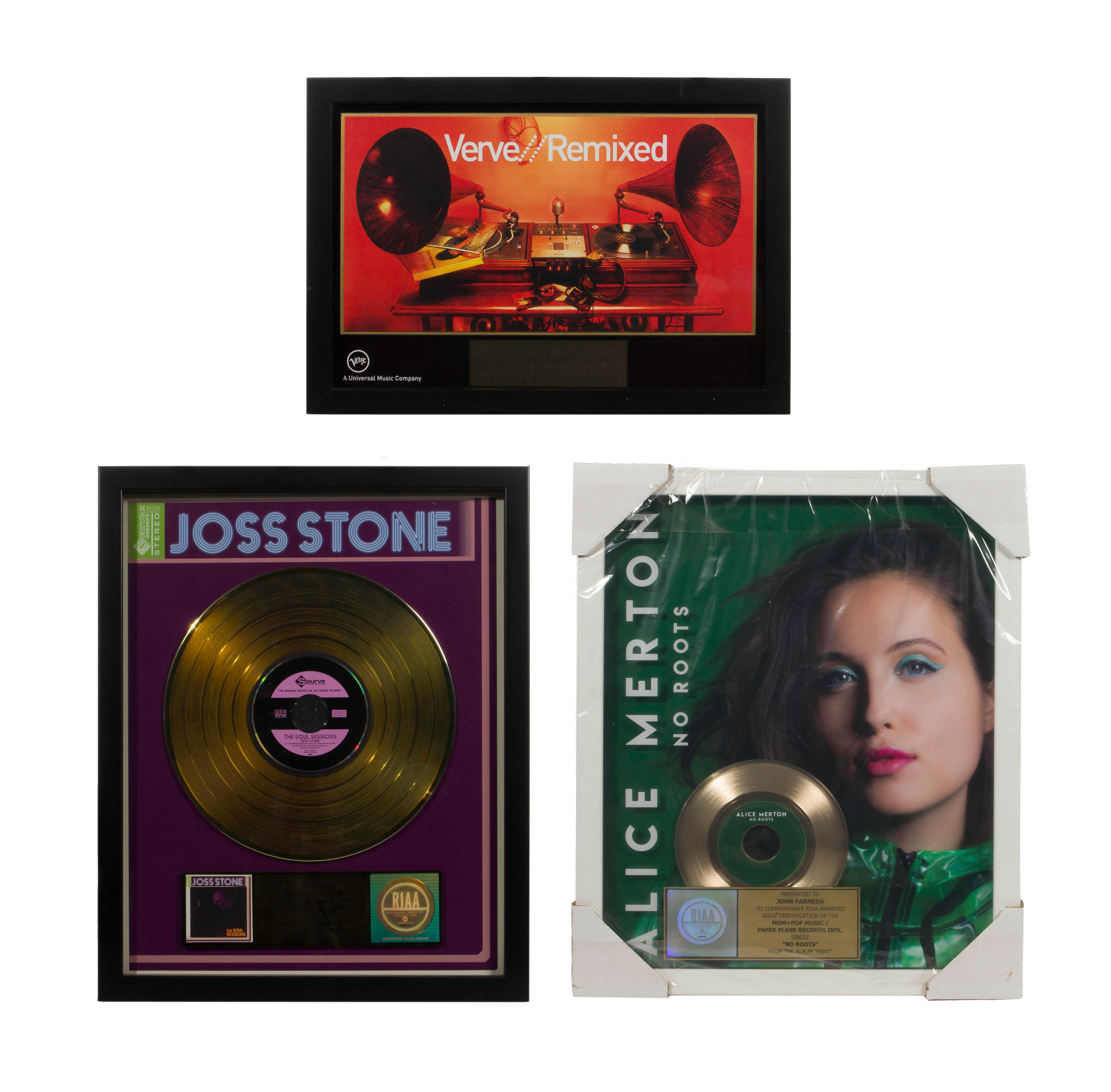 (3) framed awards for sales of records by Joss Stone, Alice Morton and Verve / Remix, all having RIAA seal on back