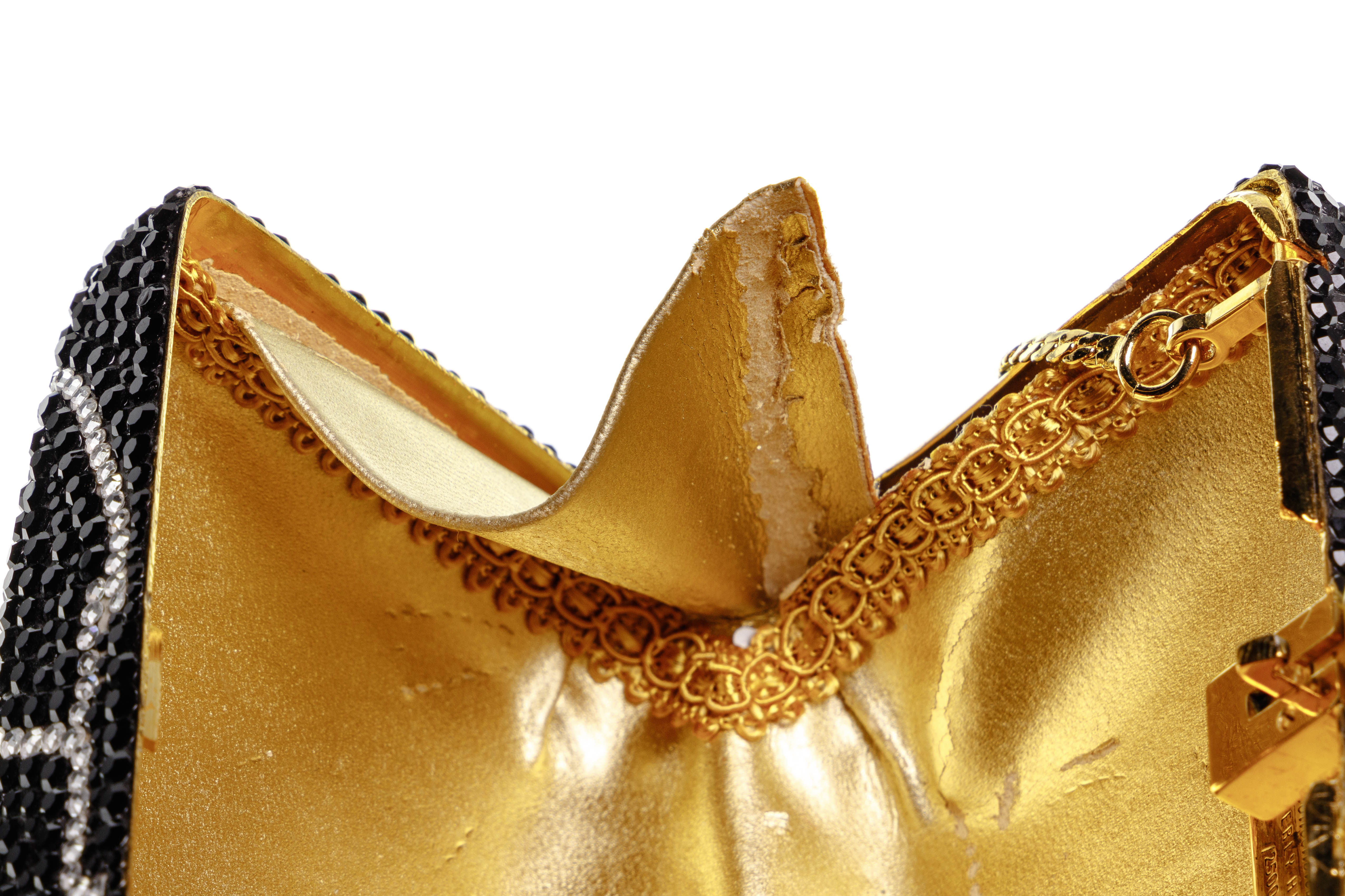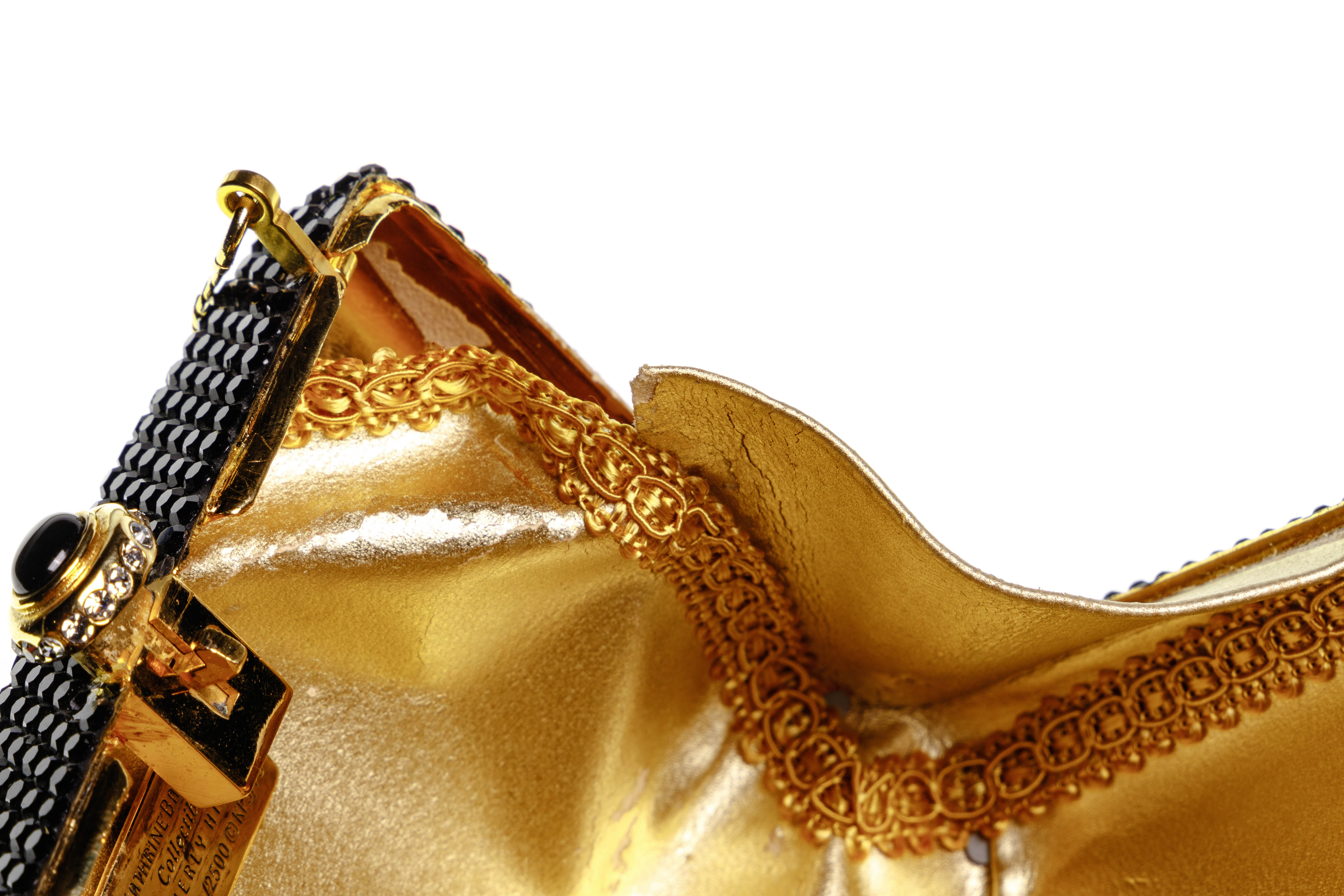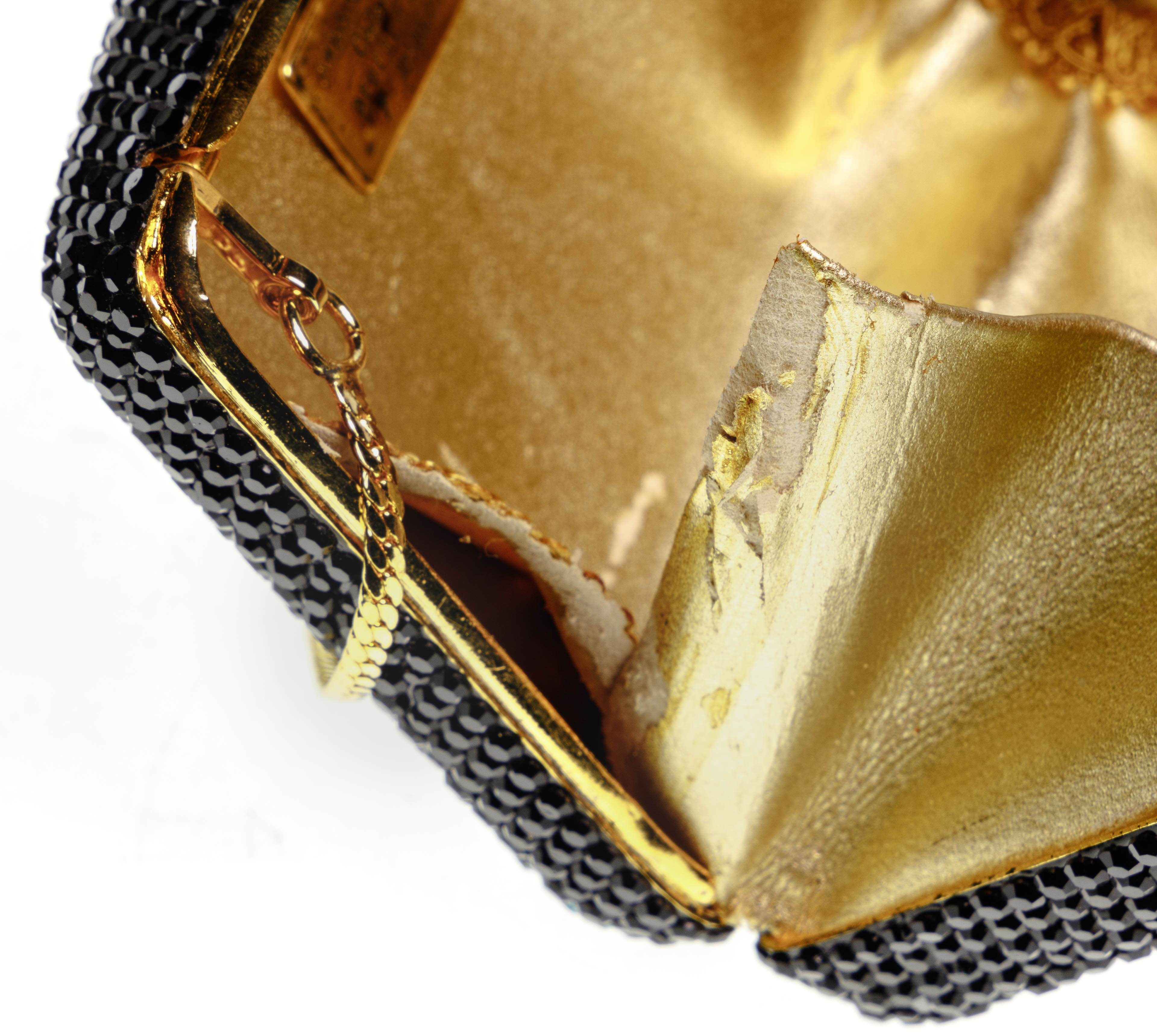 Condition: overall light wear consistent with normal use, minaudiere having ripped lining, interior wear