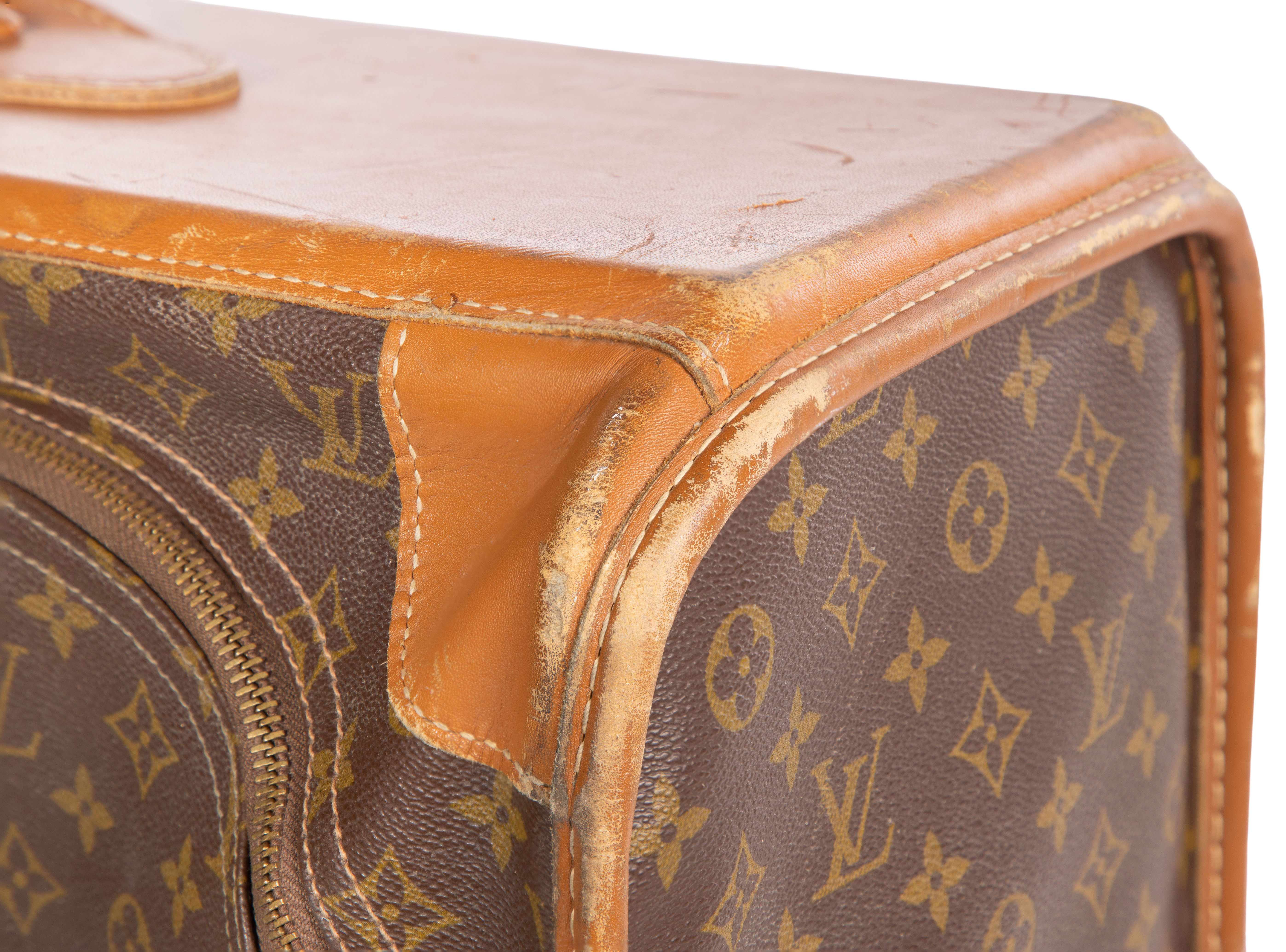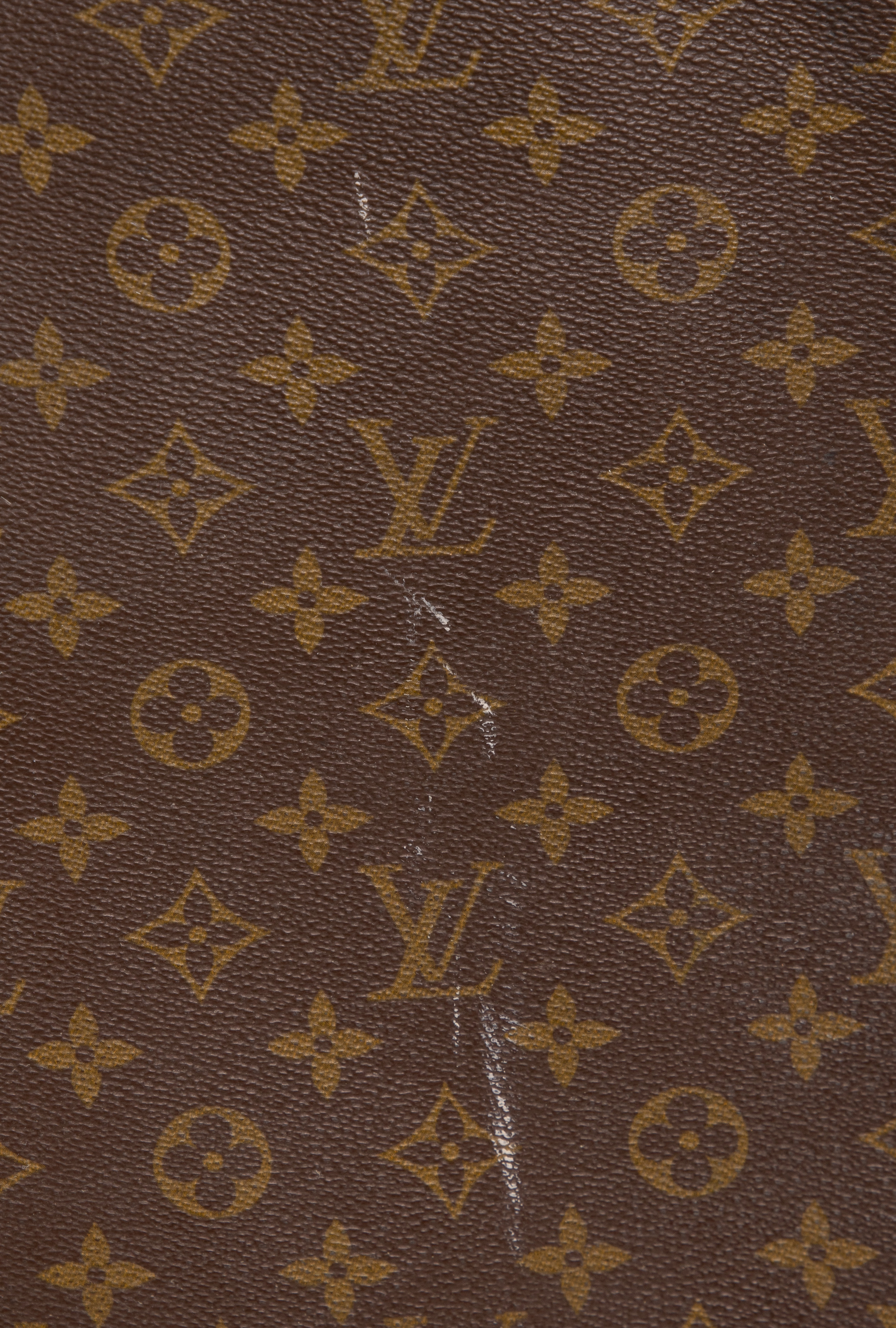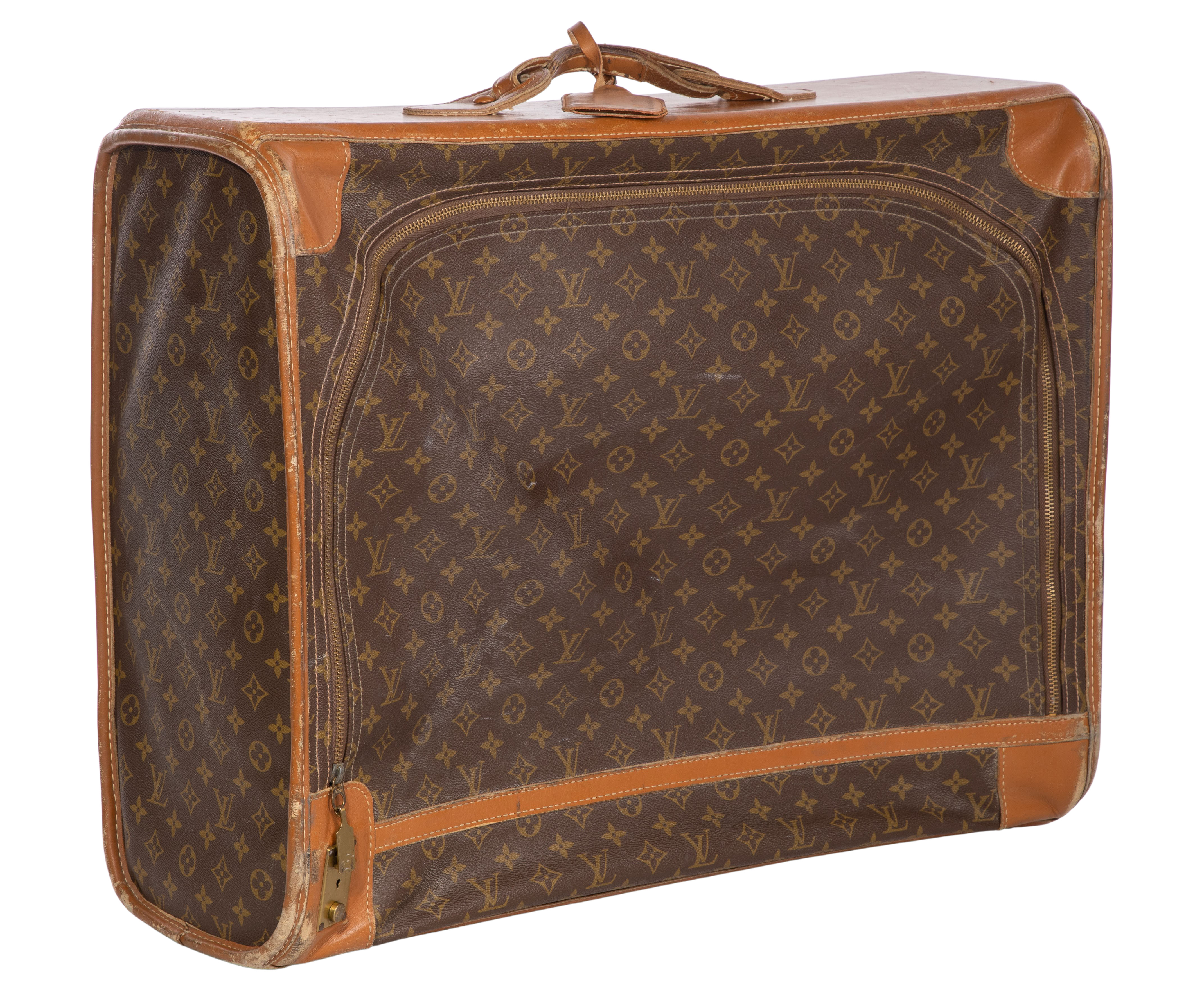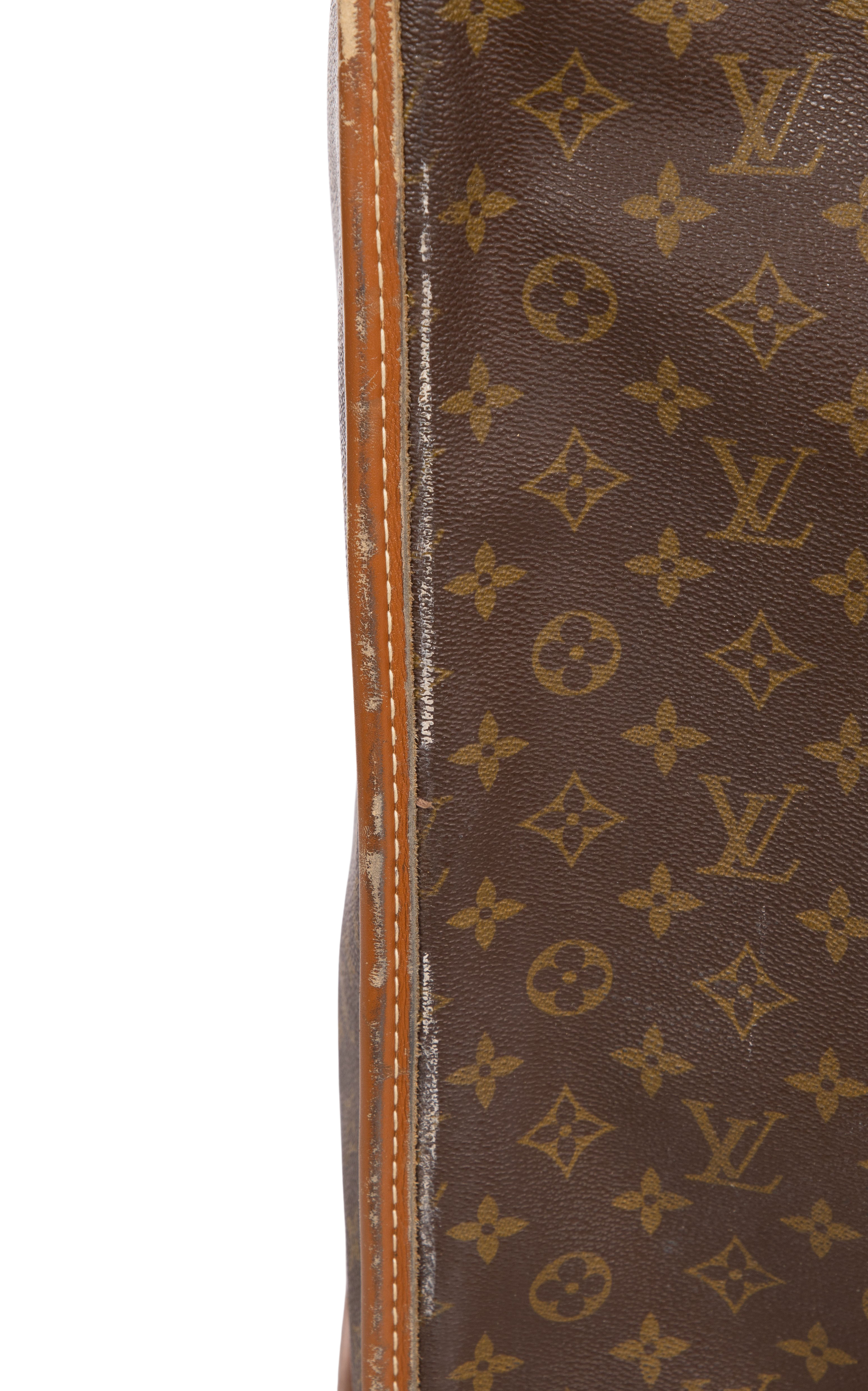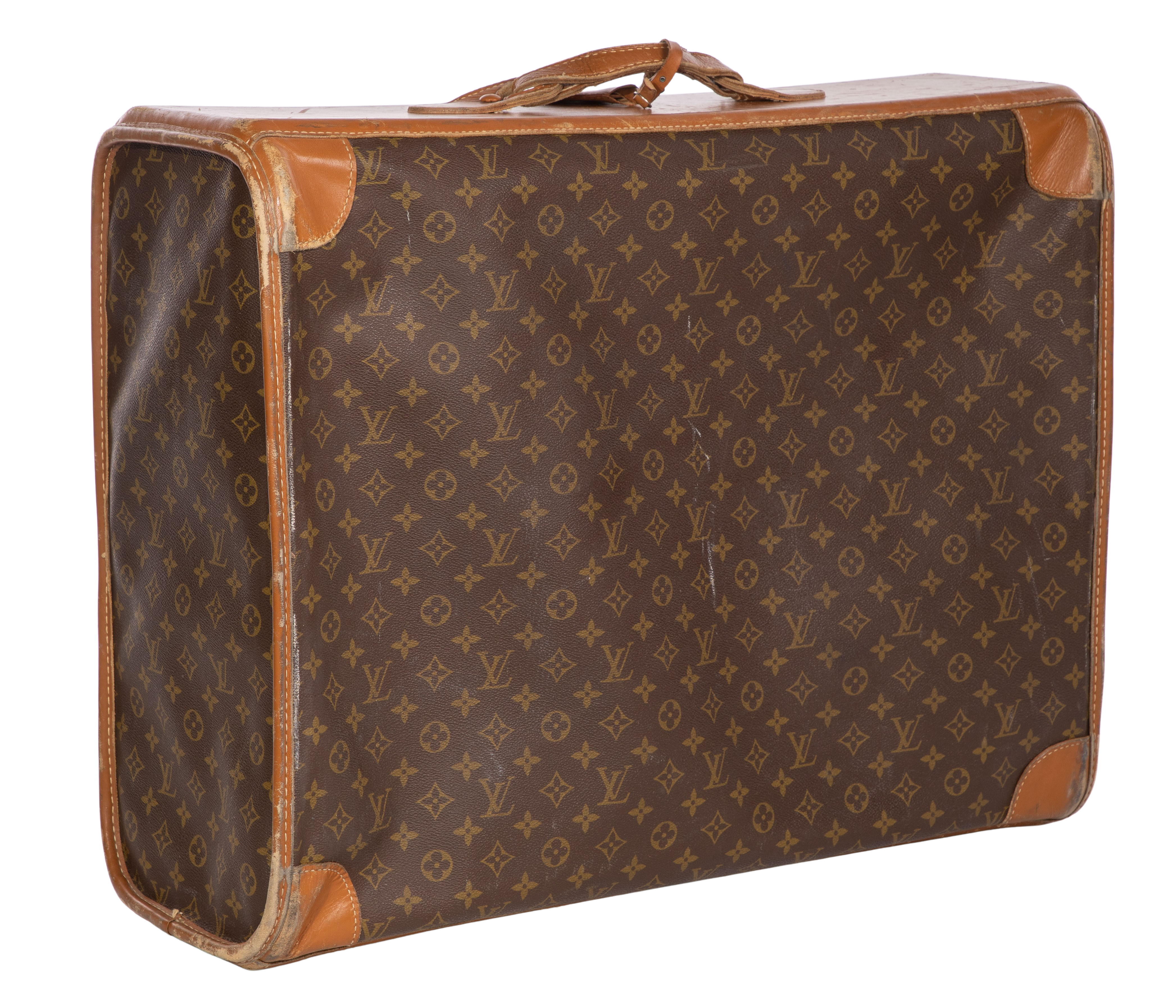 (2) items including a soft sided Pullman 60 suitcase having monogrammed canvas exterior, Vachetta leather trim, rolled handle with luggage tag, brass hardware, a brass zipper closure and an interior having elastic side pockets and straps, as well as a Sak Plat tote bag having a monogrammed canvas exterior, Vachetta leather trim and rolled handles, a textile lining and a zipped pocket, both having original tags inside ‘Made in America under special license’