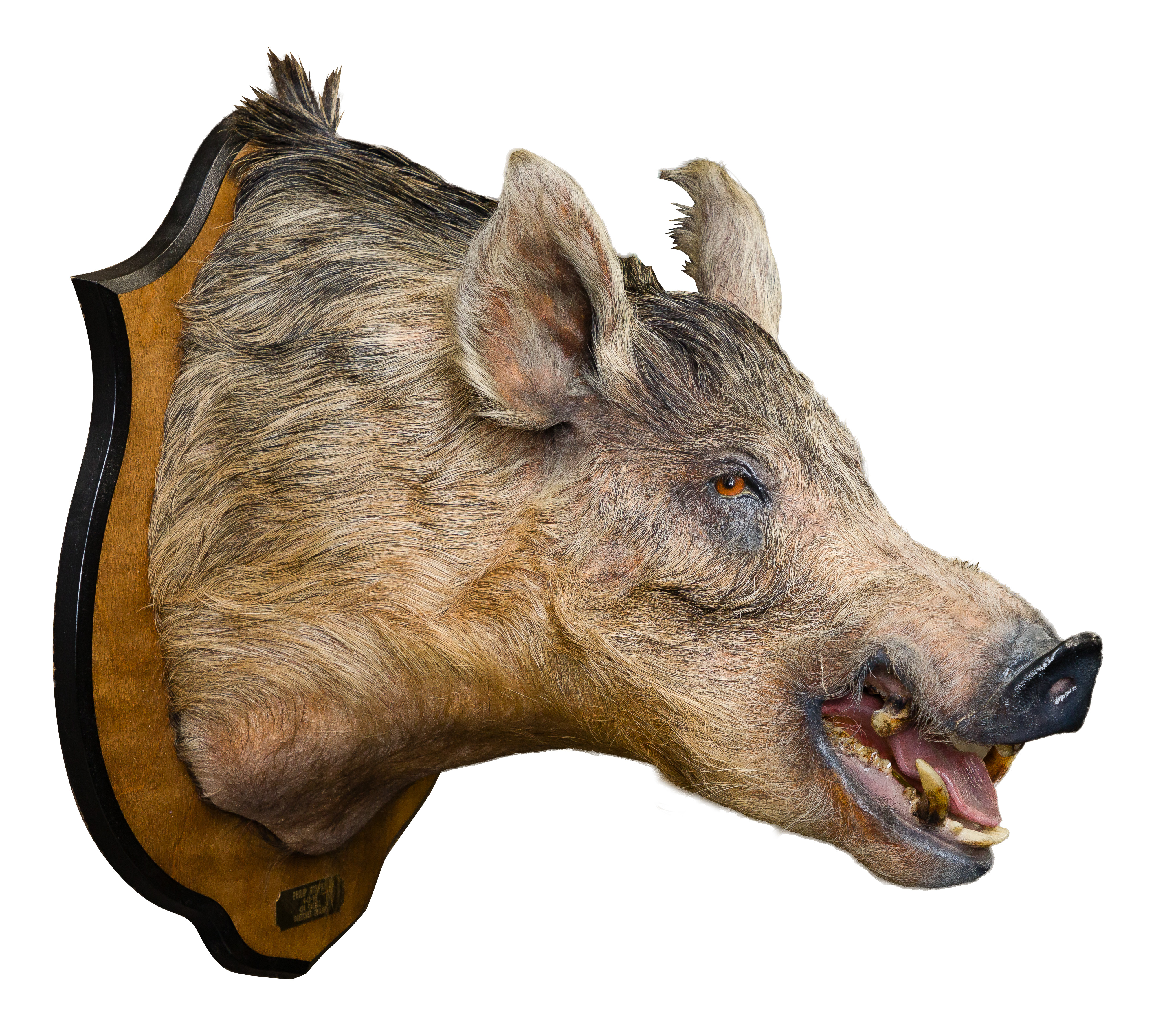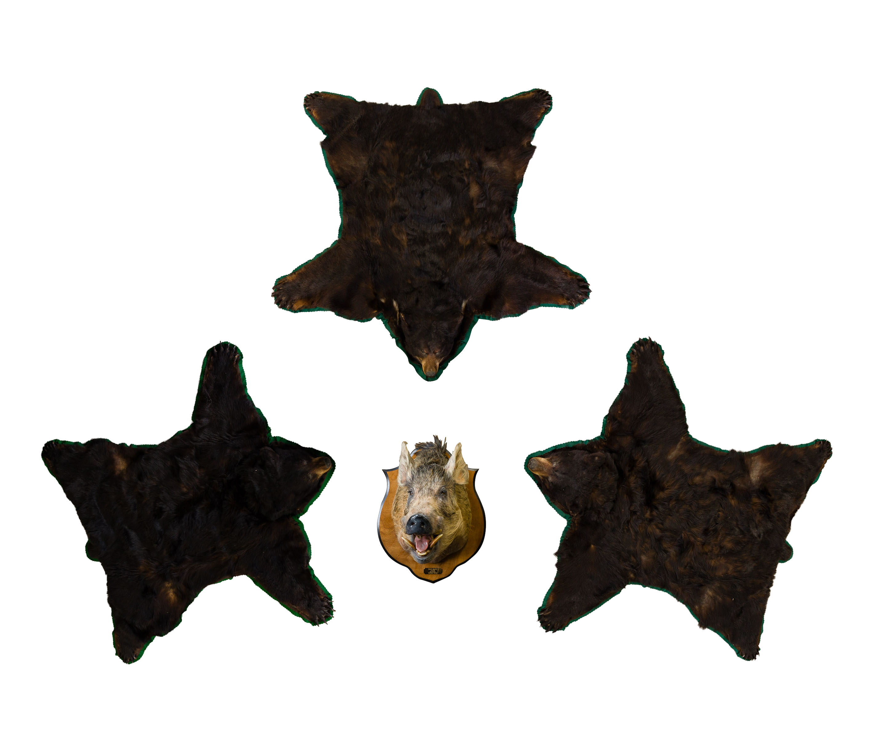 Condition: overall light to moderate wear consistent with use, all rugs having areas of fur loss, light wear to boar plaque