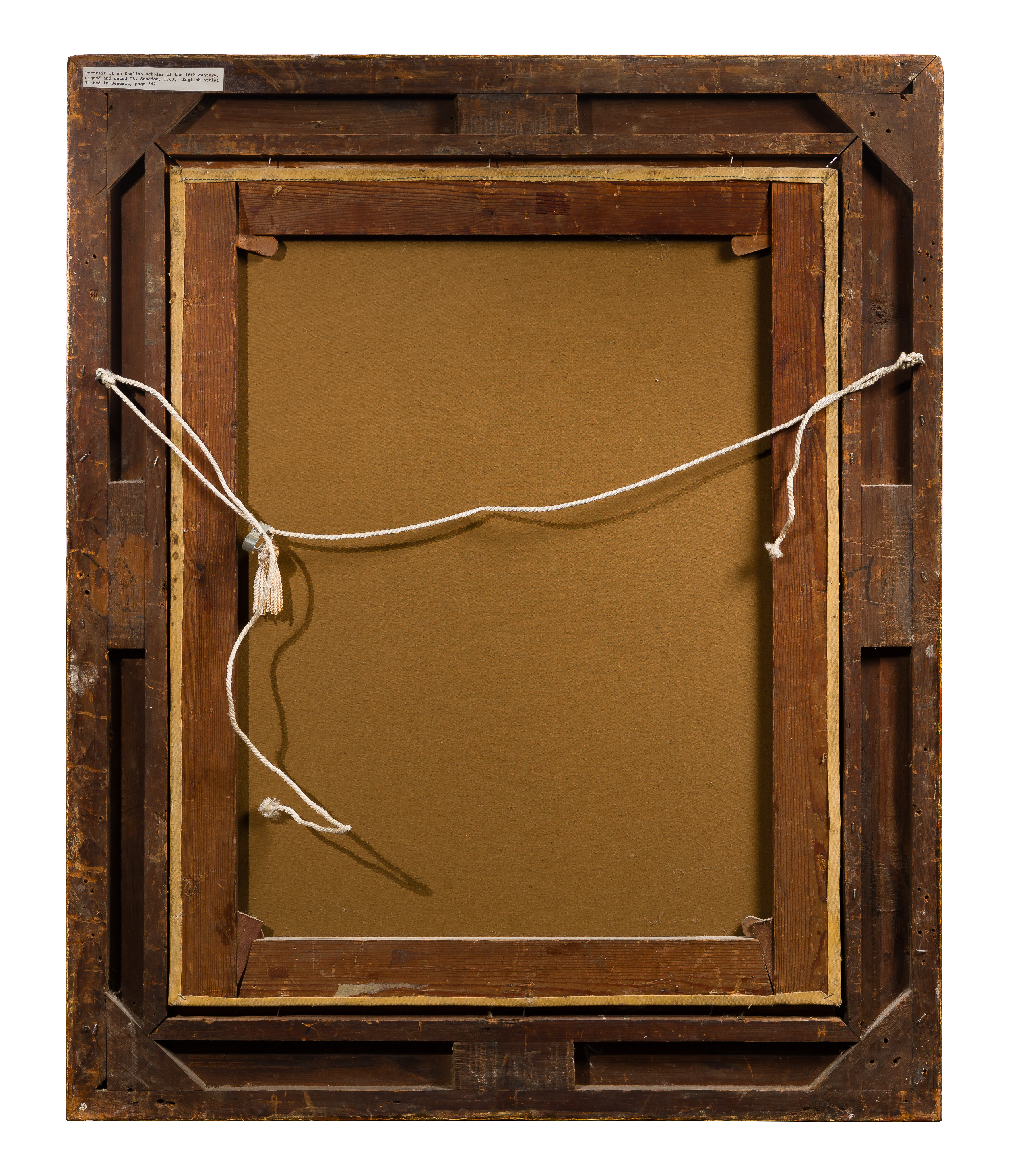 Condition: UV inspected, repair in center canvas, some frame rubbing and minor slippage on upper edge, relined, frame having missing gesso and overall wear