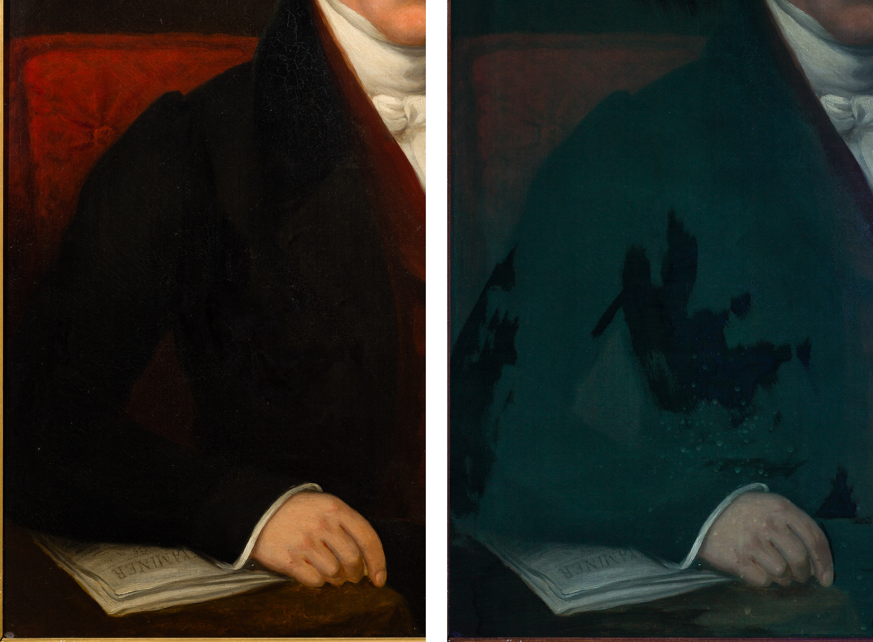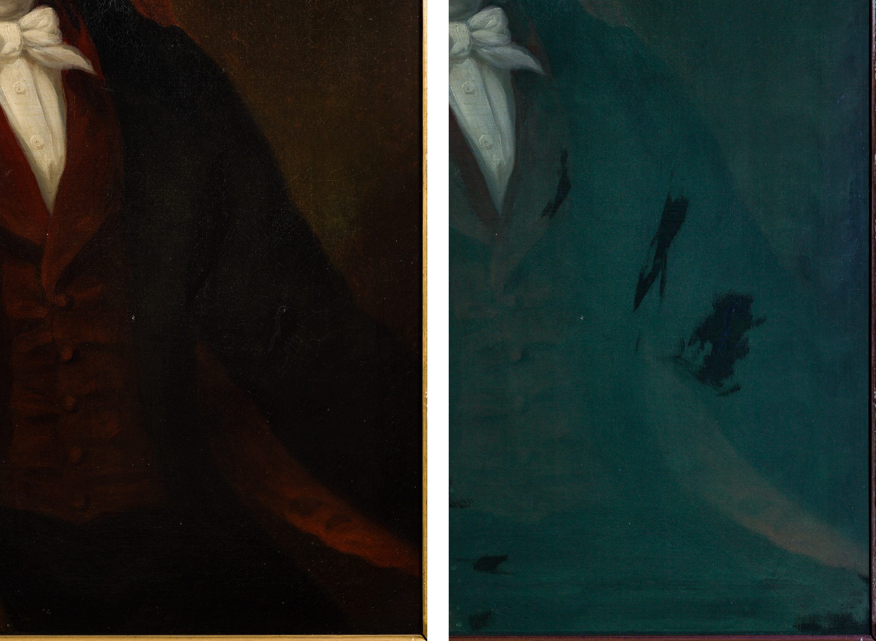 UV tested having areas of inpainting and repair, some spotting, frame having missing gesso, chips, cracks