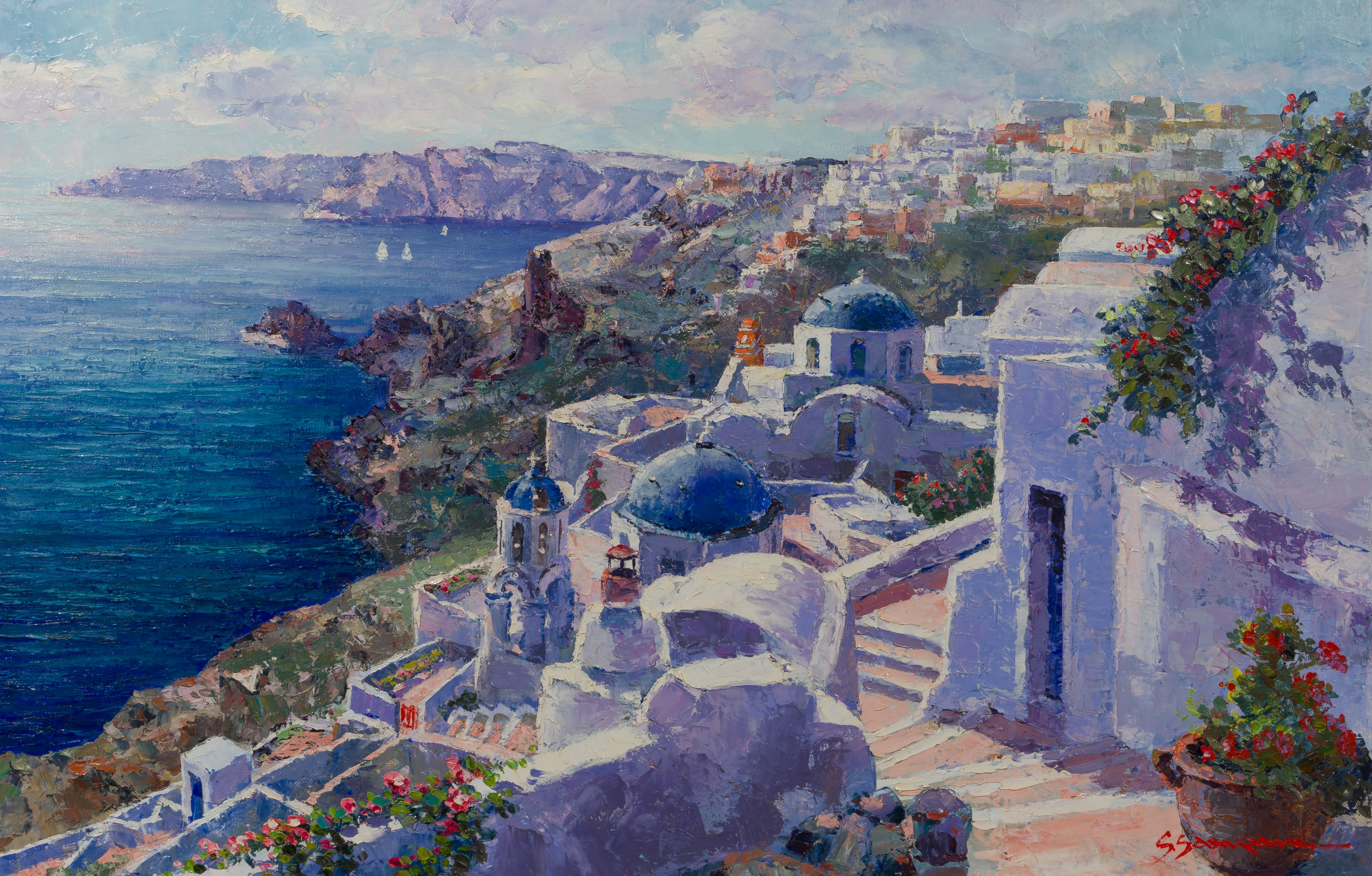 Sung Sam Park (South Korean, b.1949) ‘Steps of the Santorini’ Oil on Canvas