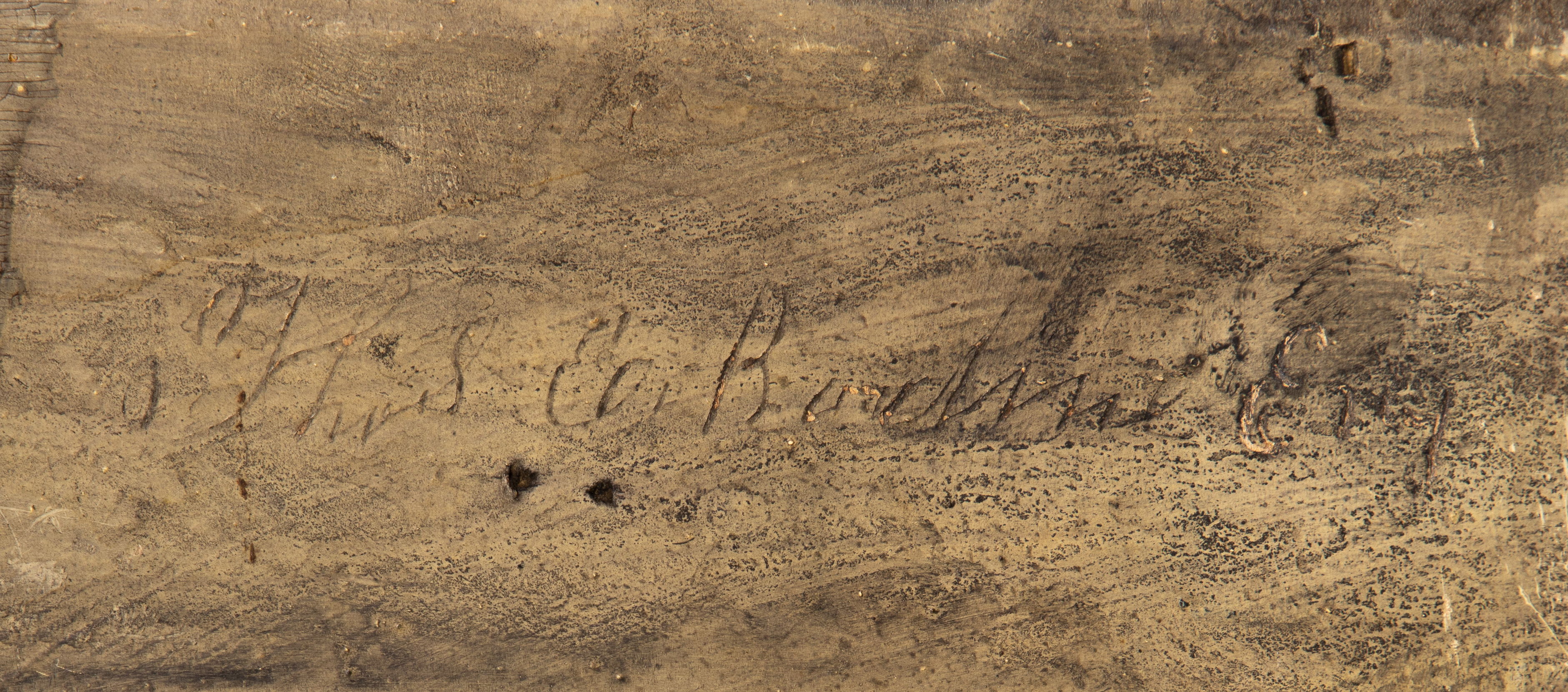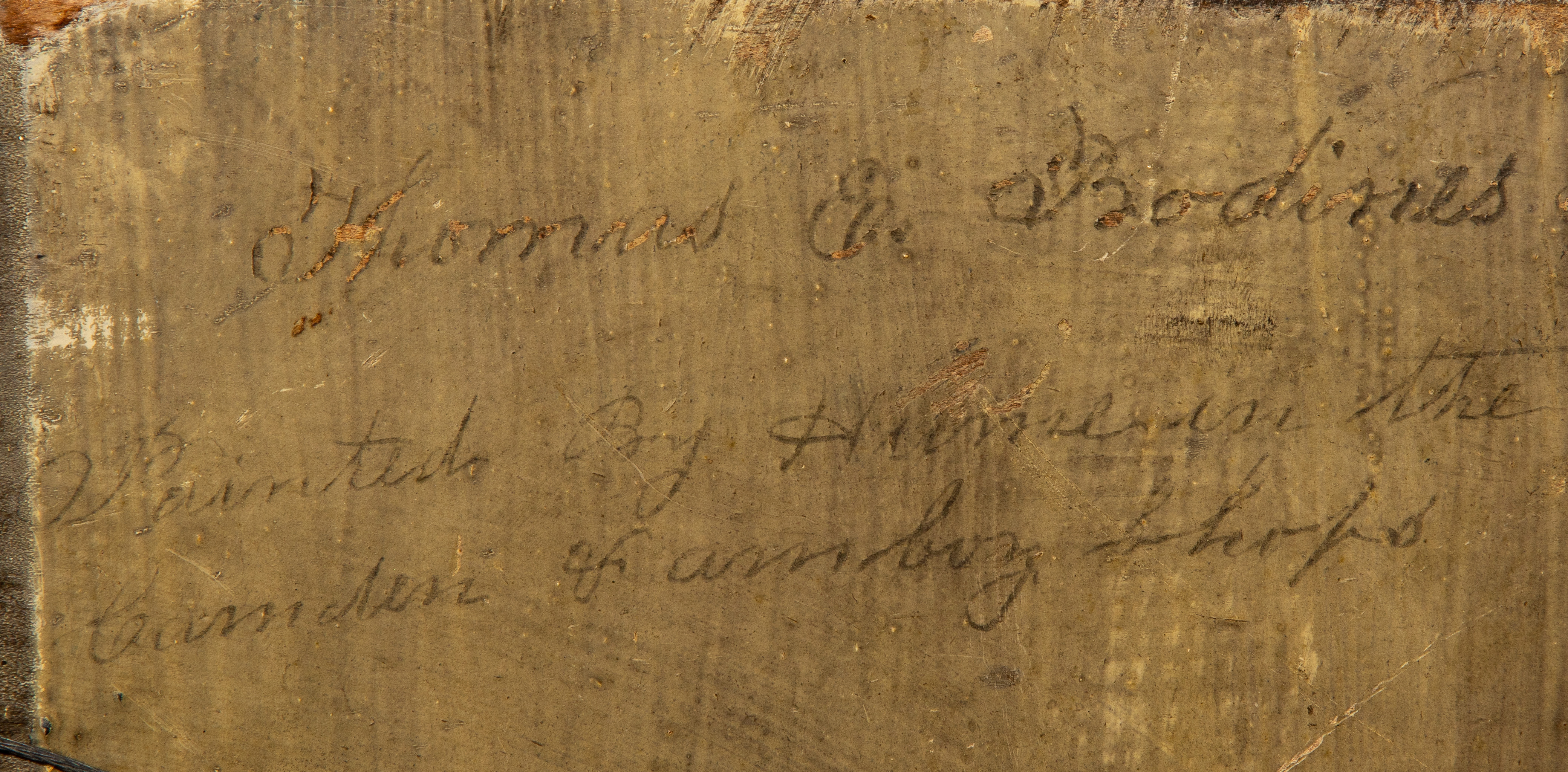 painting possibly cut down from a larger image, in-painting throughout, frame having chips