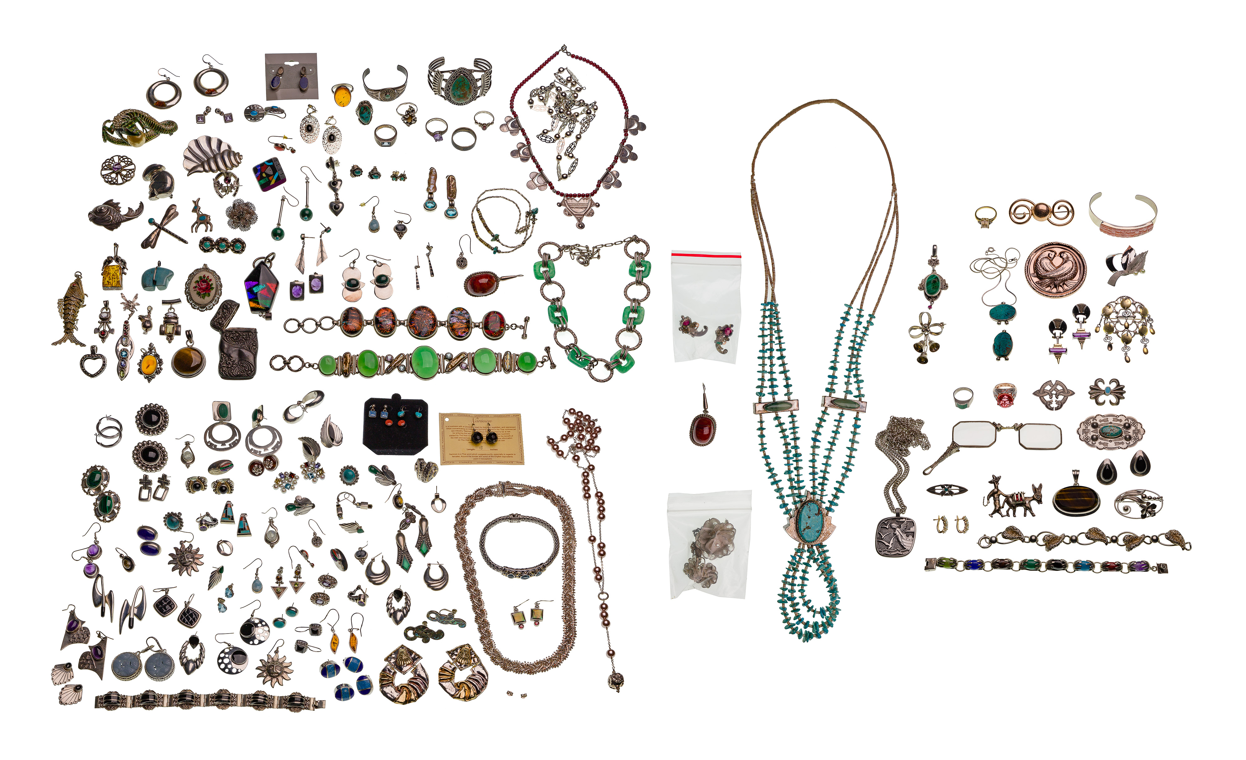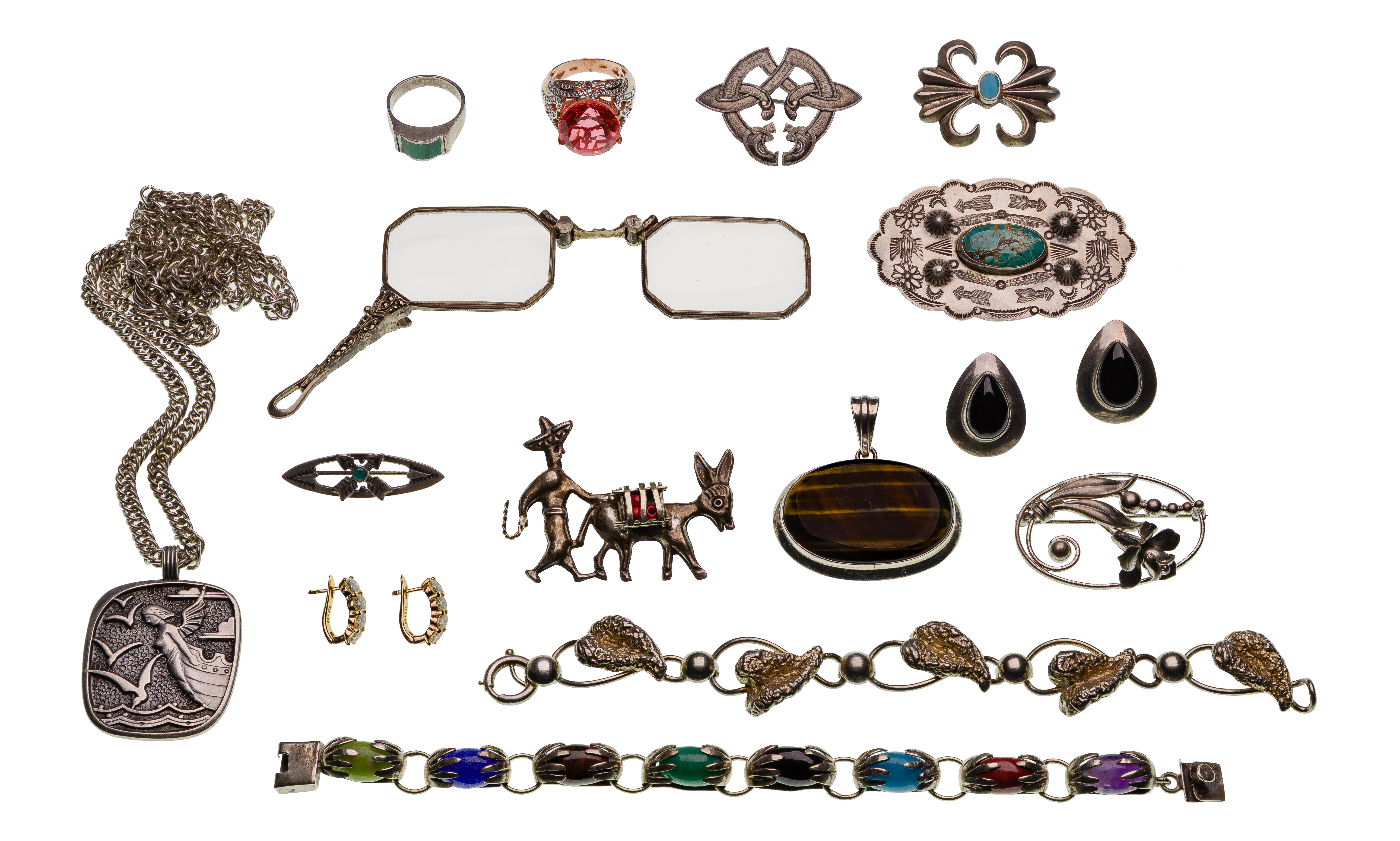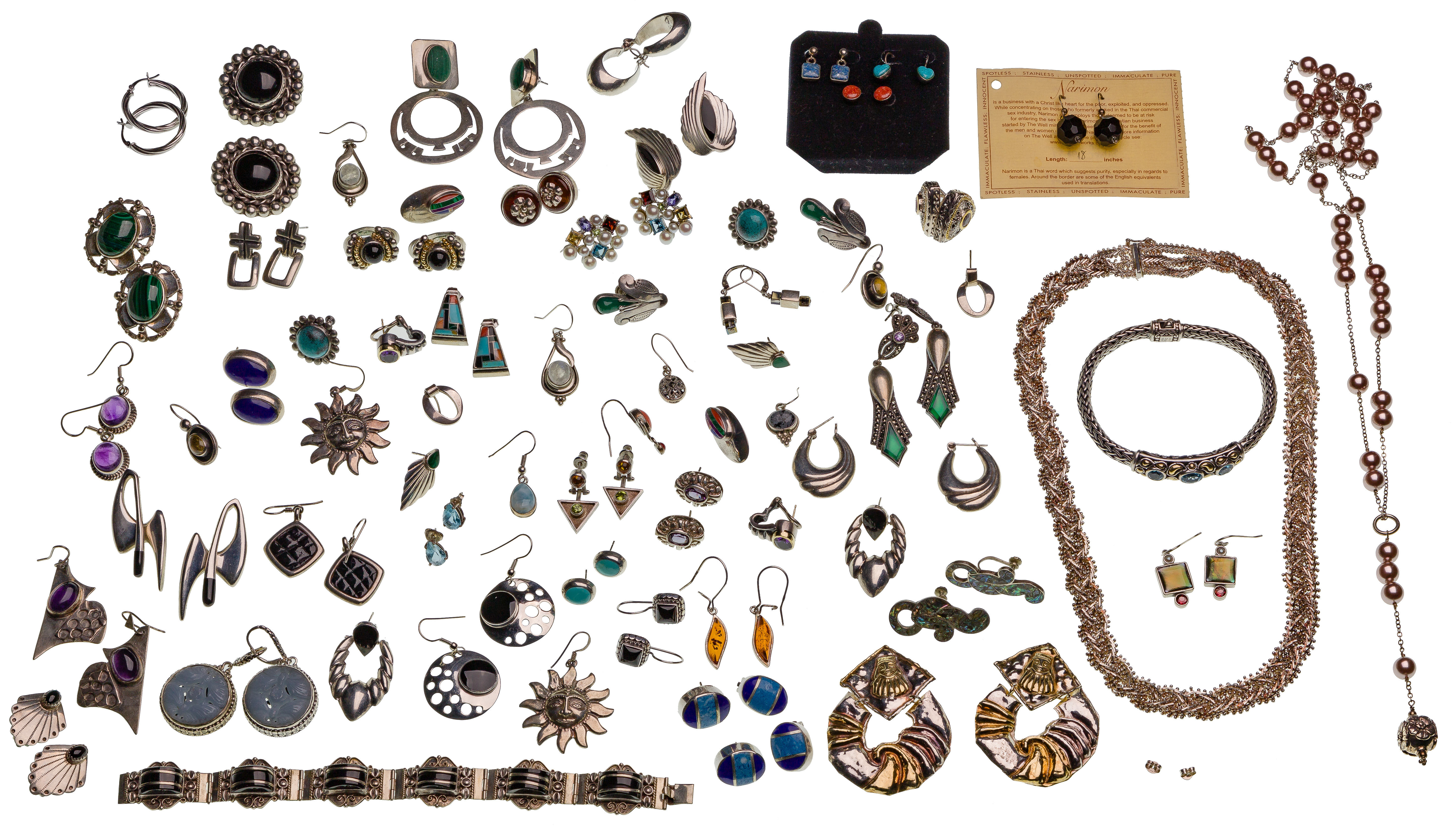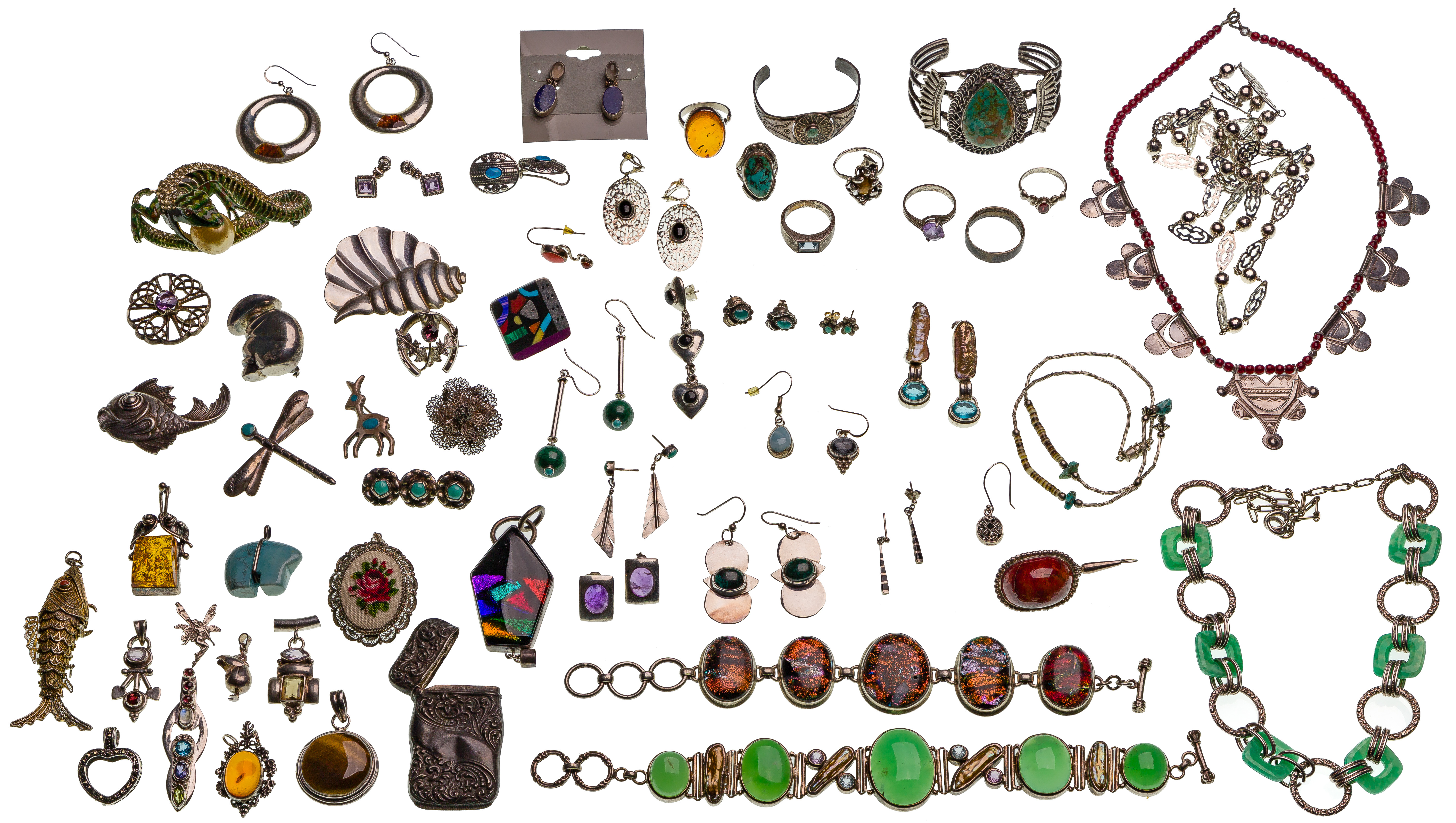 Including earrings, necklaces, pins, bracelets and pendants (most marked ‘sterling’ / ‘925’), some having stones