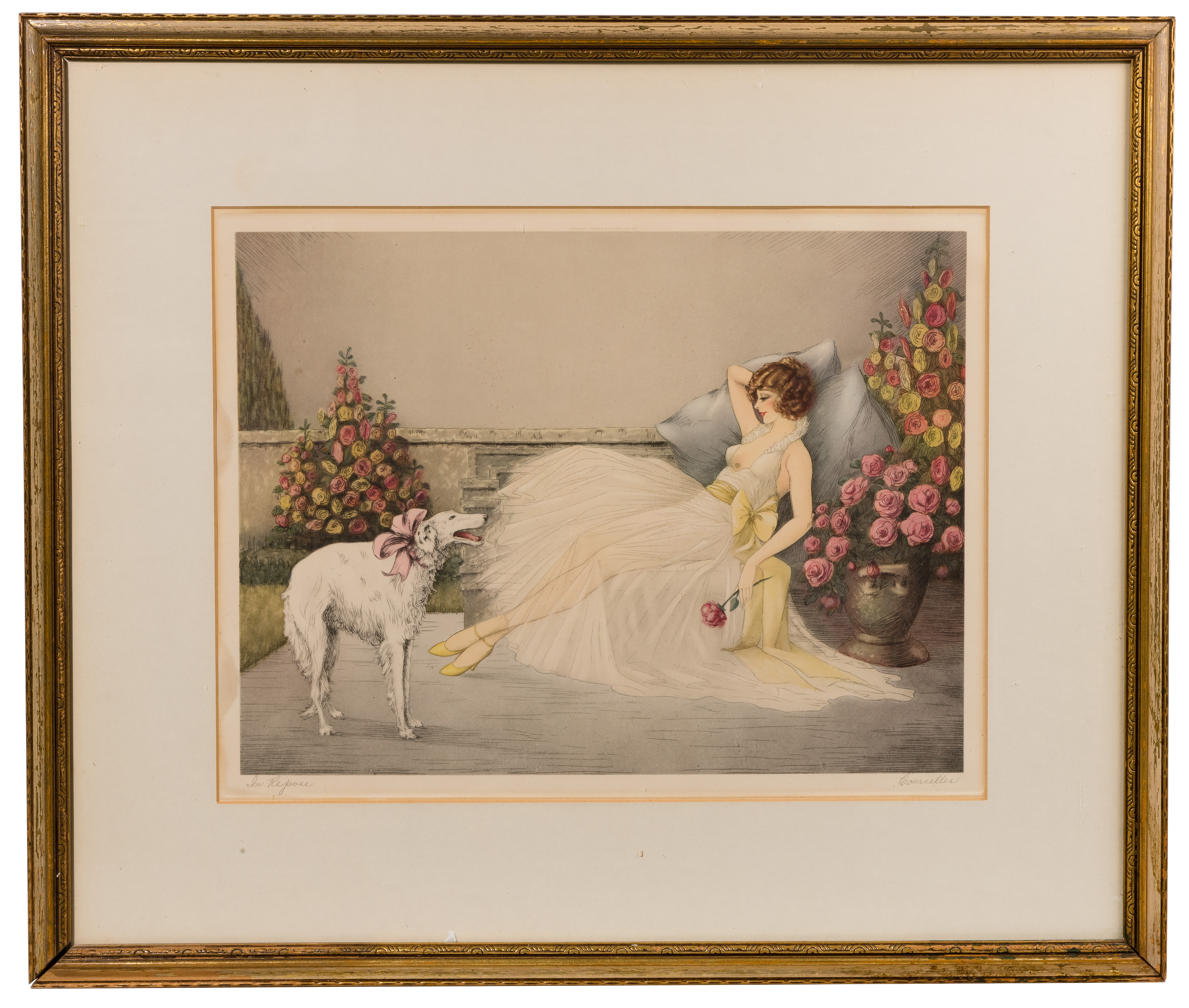 Height: 13 1/4 inches, Width: 17 1/4 inches (sight, reclining figure with dog (largest))