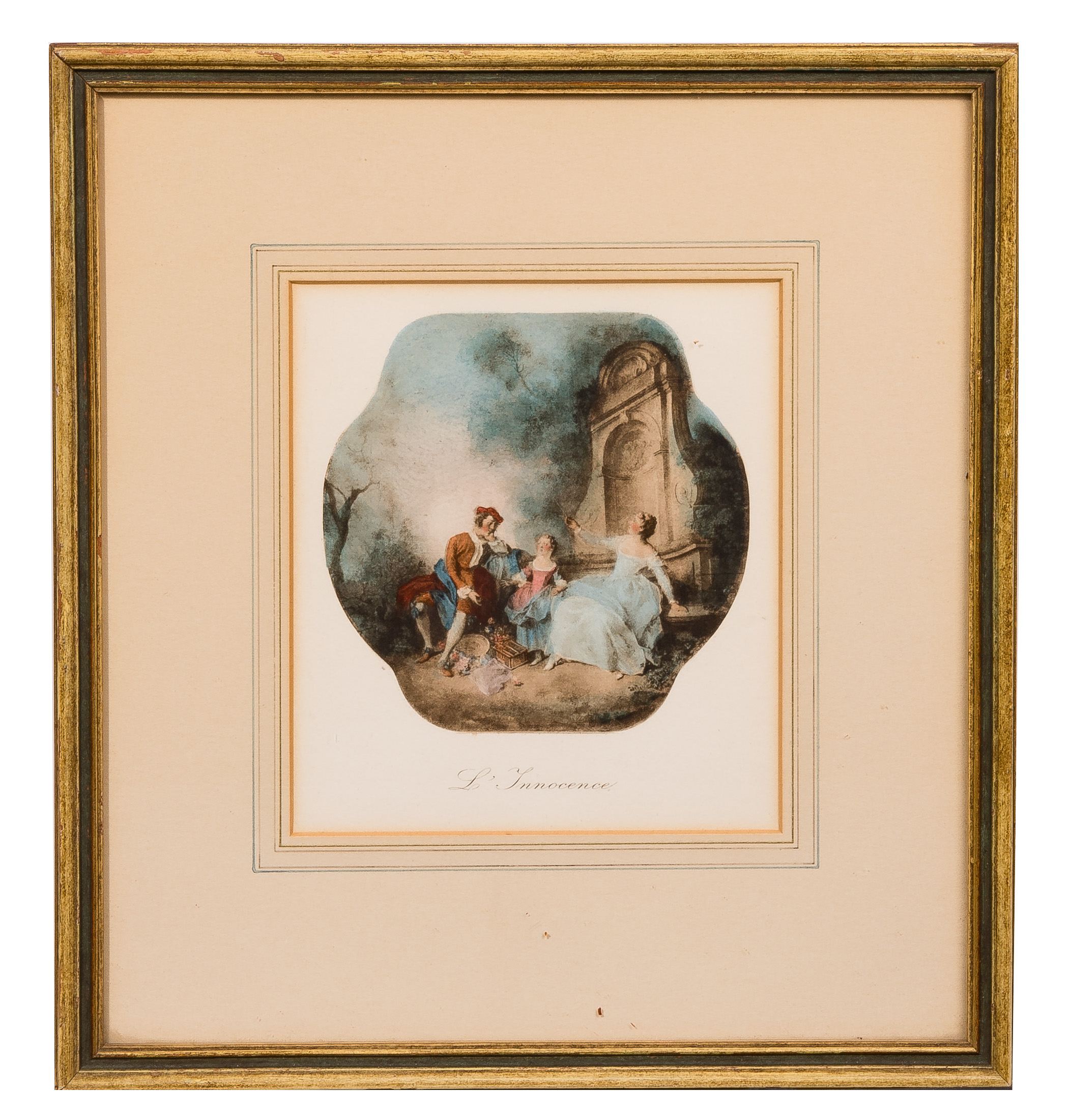 (8) items of varying sizes with (6) depicting singular or groups of figures; (7) French matted and a print matted, all behind glass in gold tone wood frames