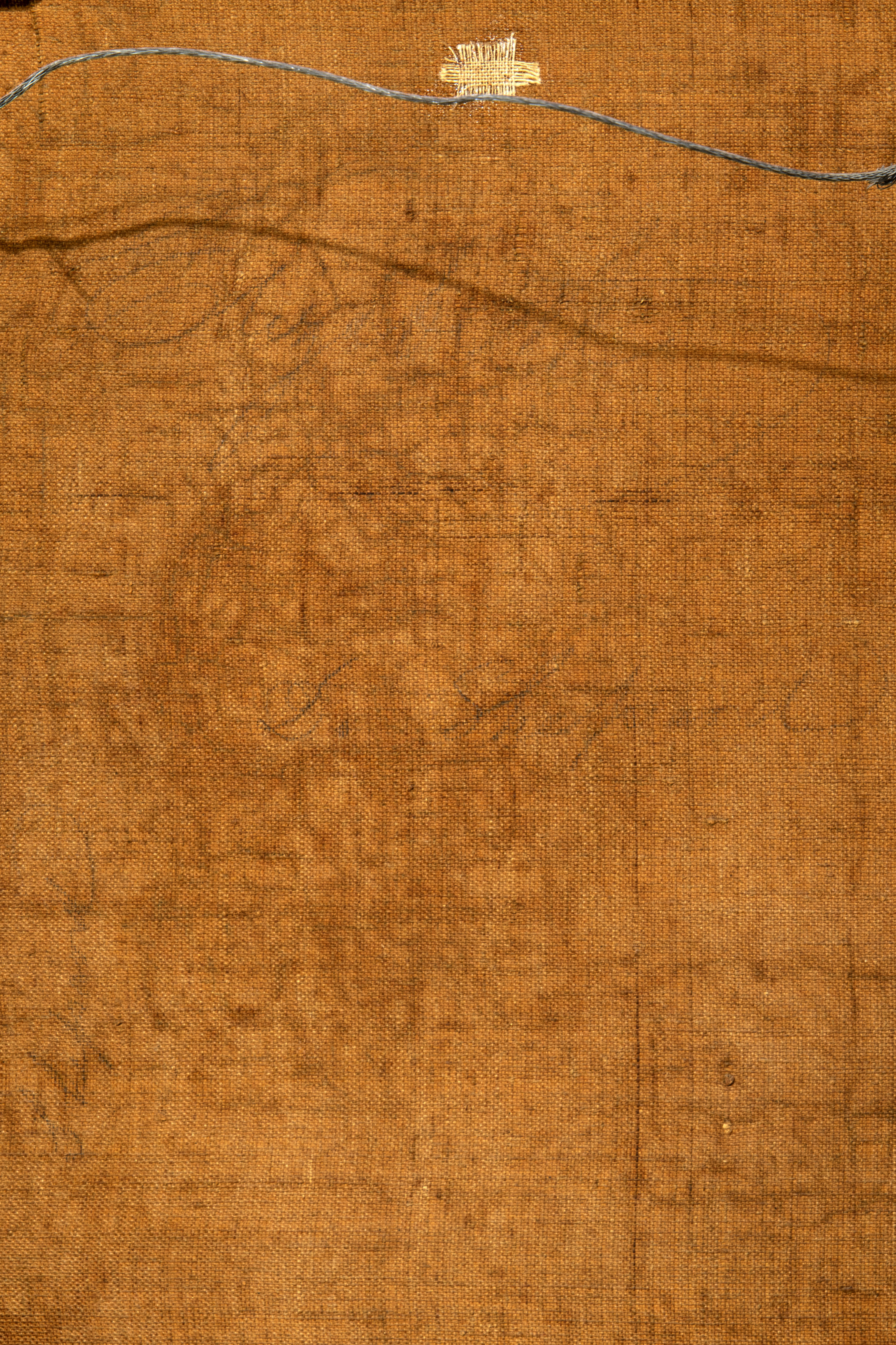 Condition: Good, moderate wear with a small repair and patch at the upper center; craquelure overall; light dirt accumulation; frame having small cracks around edges