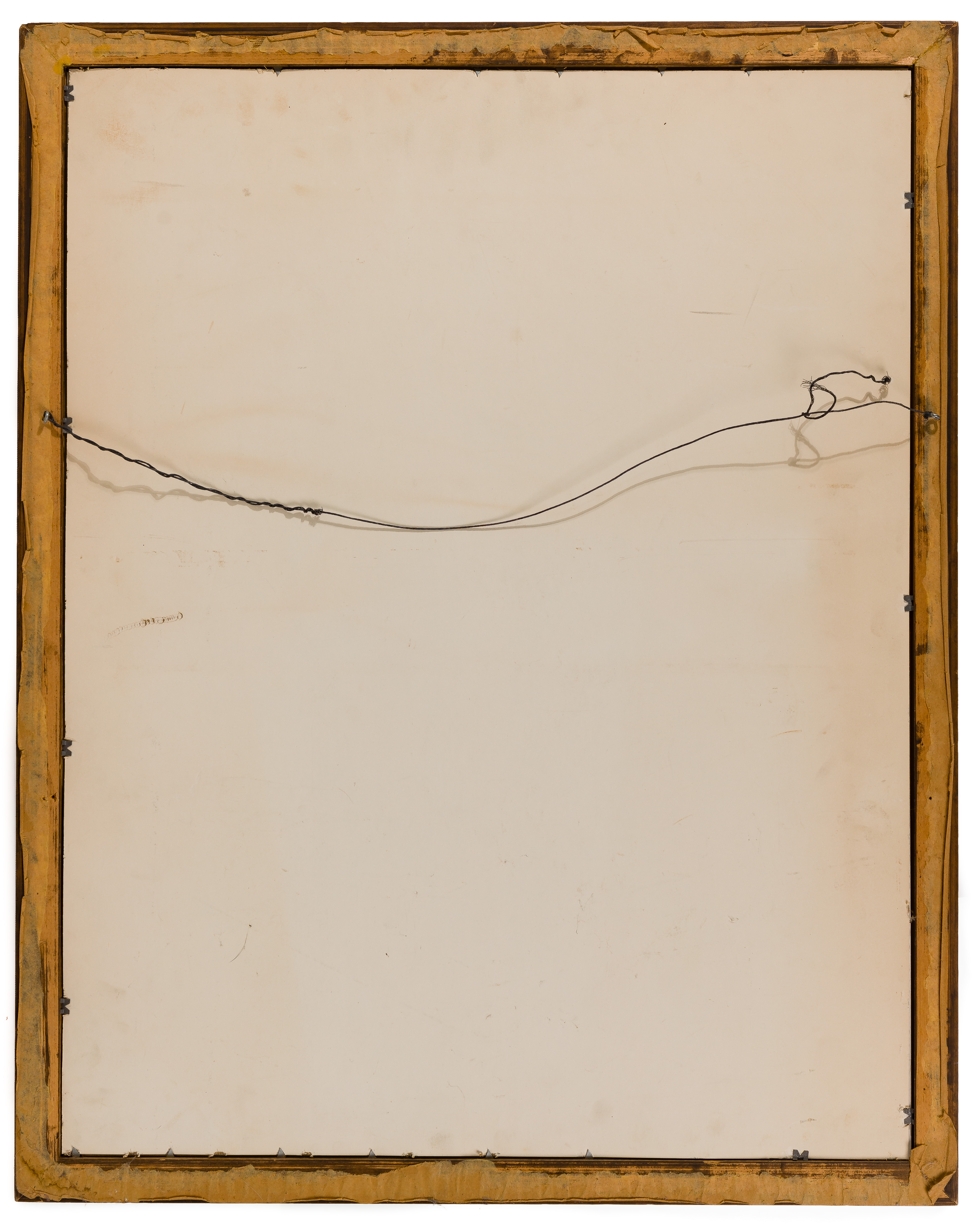 Condition: Very Good, light dirt accumulation; pin holes along top edge; tear to upper left corner; scratch at upper center; nicks and scuffs to frame