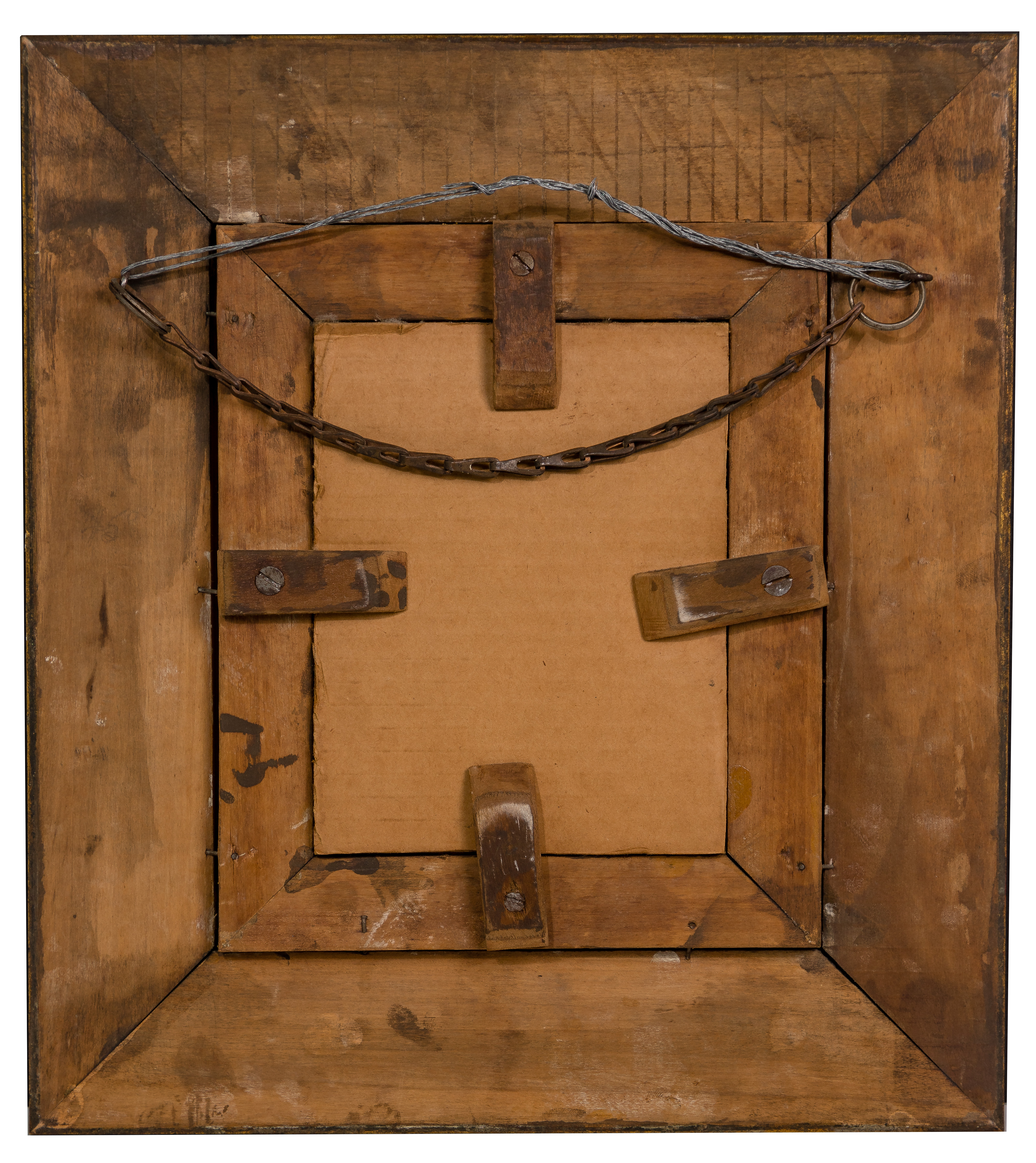 Condition: Very Good, light wear; no damage to tile noted; frame having cracks in corner and plaster loss at lower left corner