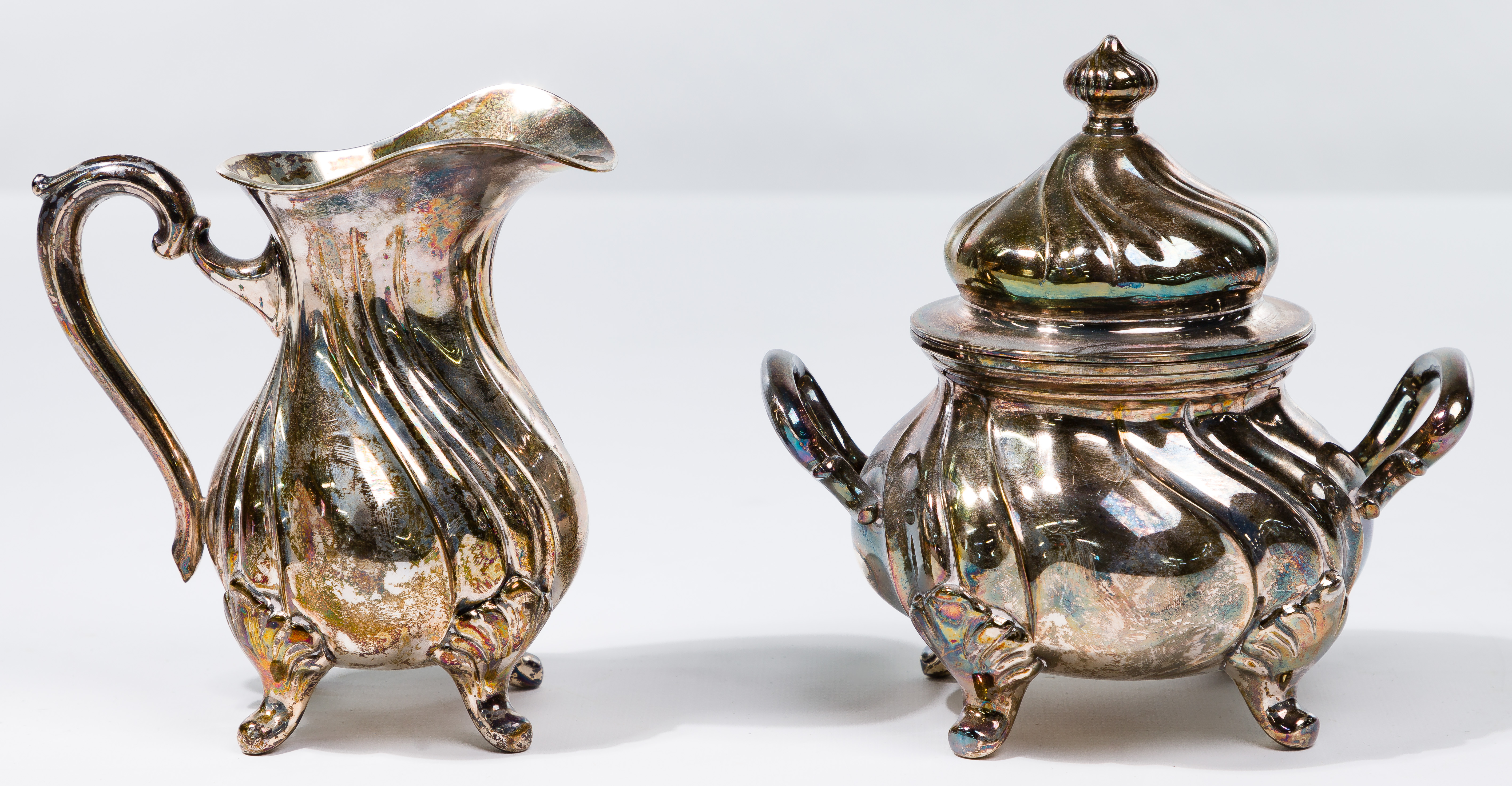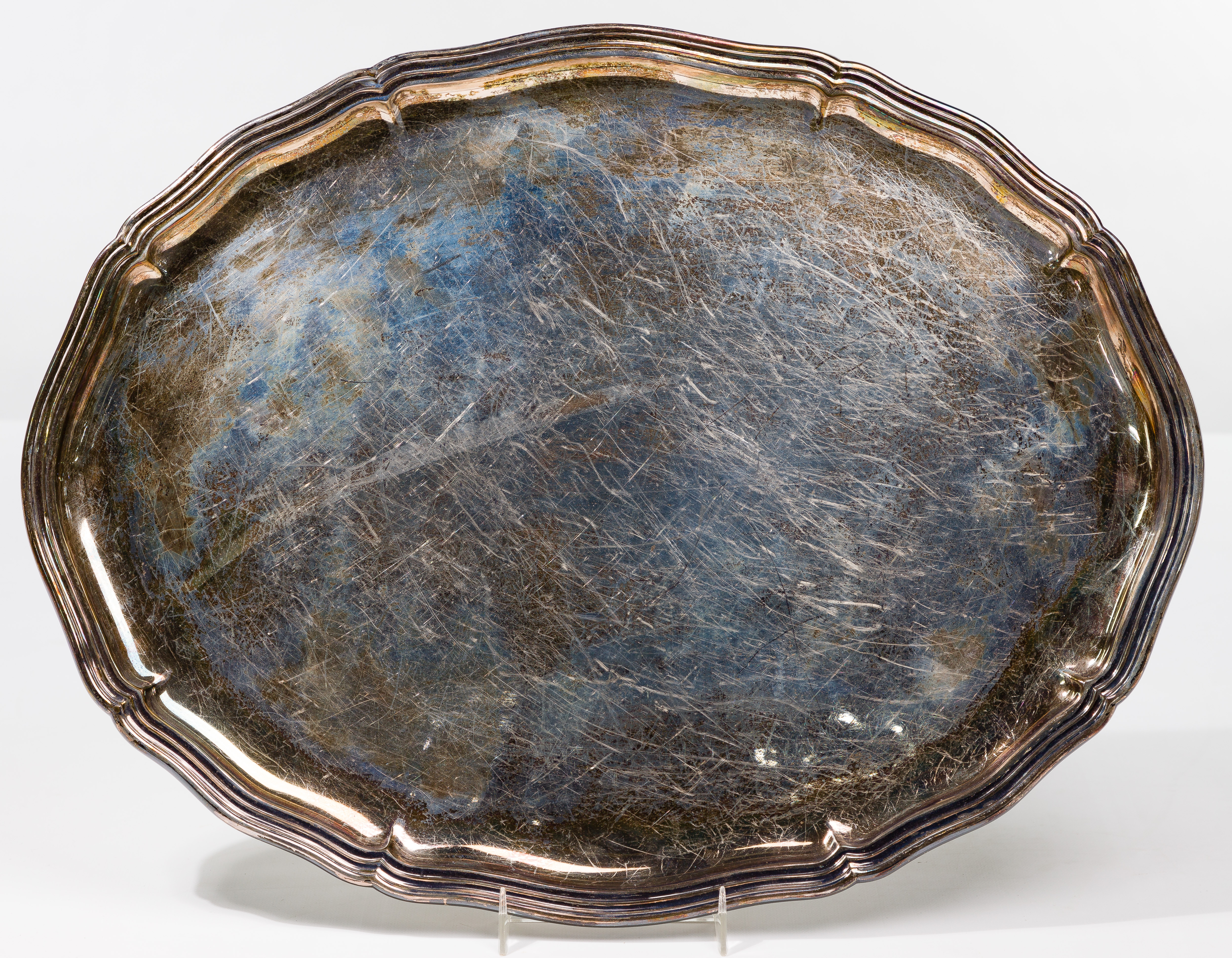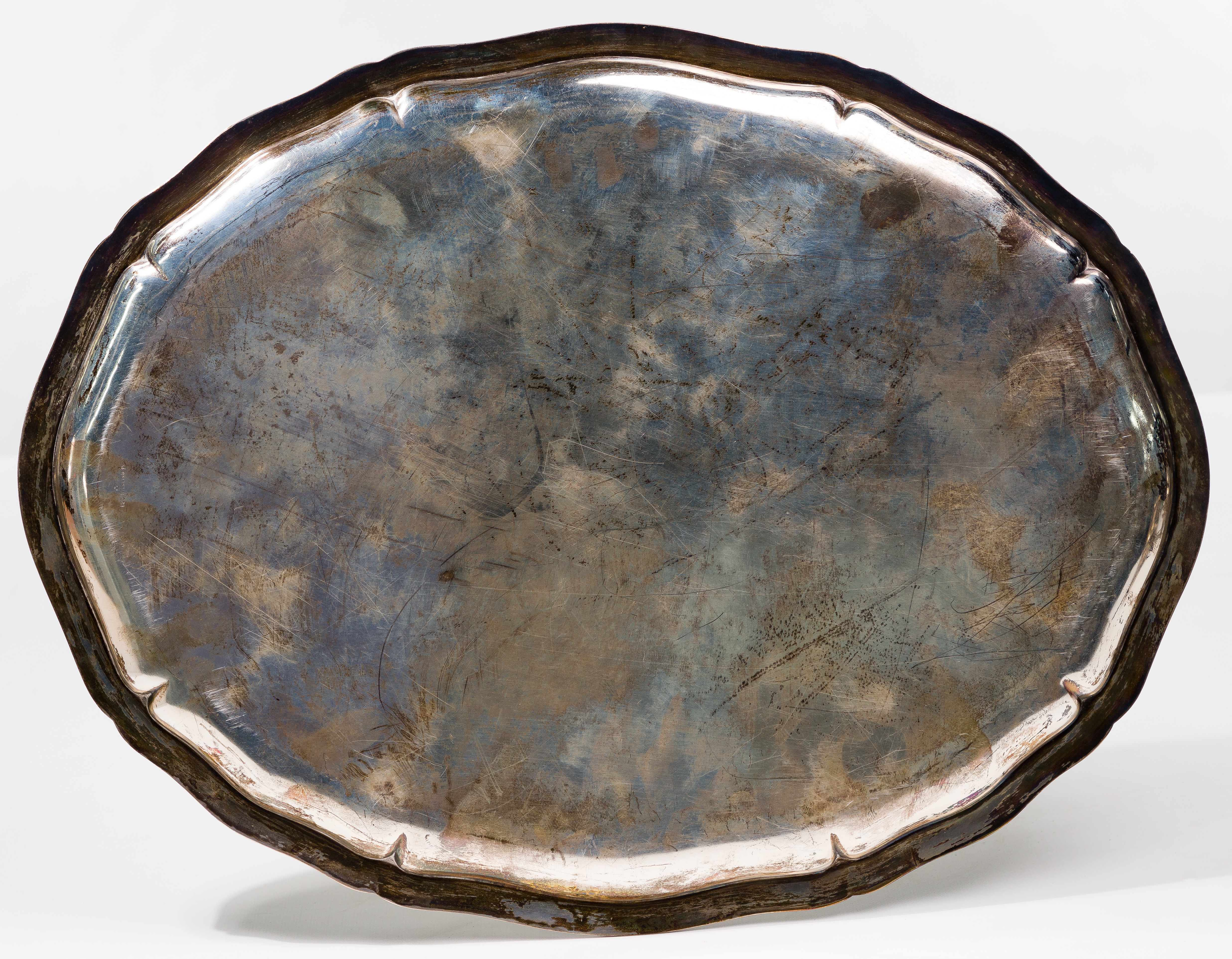 Condition: Very Good to Good, light tarnish on all; tray showing heavy scratches