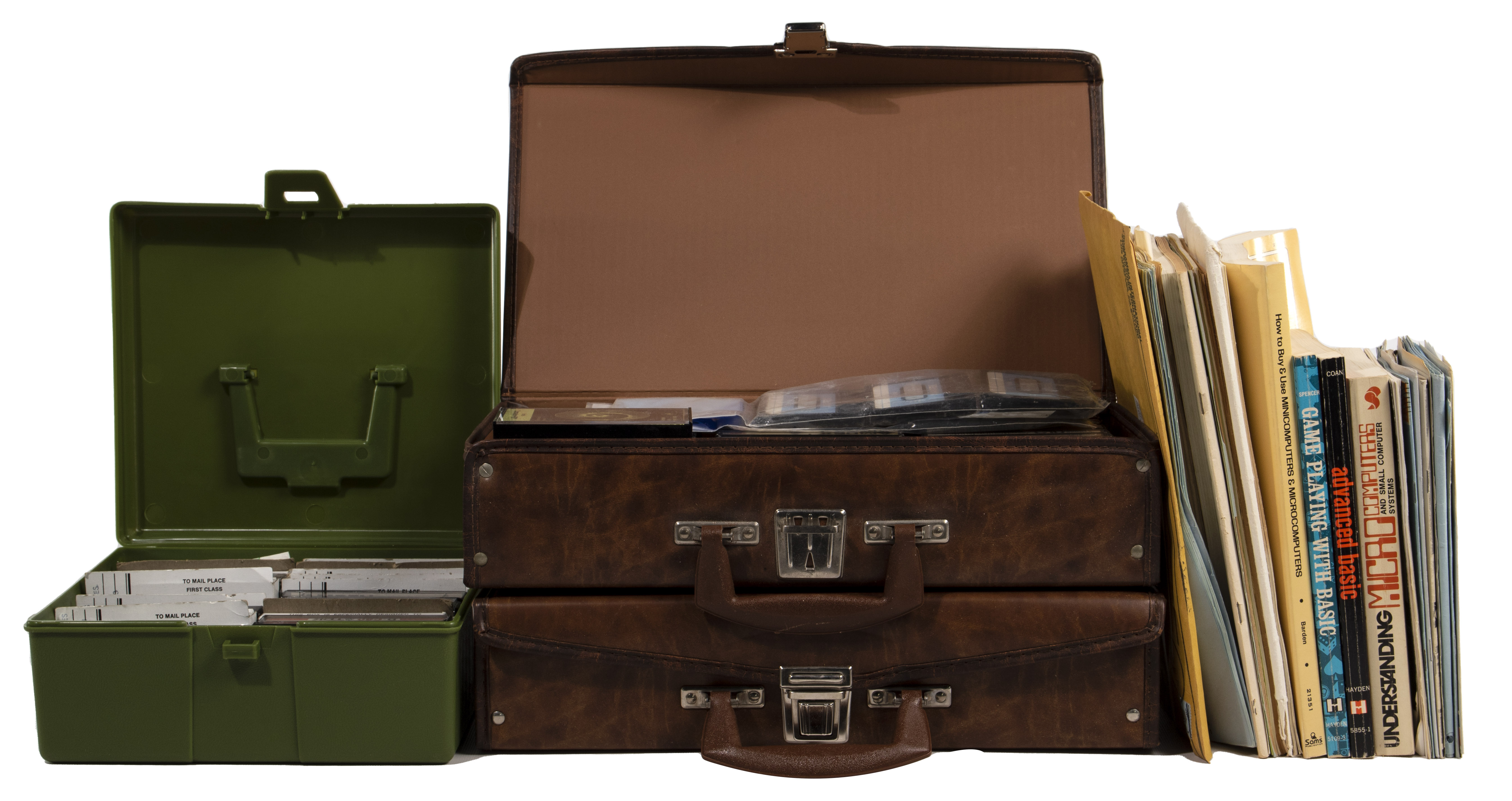Including PET 2001 Series having integrated keyboard, numeric pad, cassette deck and computer monitor with (12) position (24) pin TRW Cinch, (3) full cases of cassettes having programs, over (10) bulletins relating to commodore software as well as (4) printed publications relating to use of, programming of and gaming with early computers