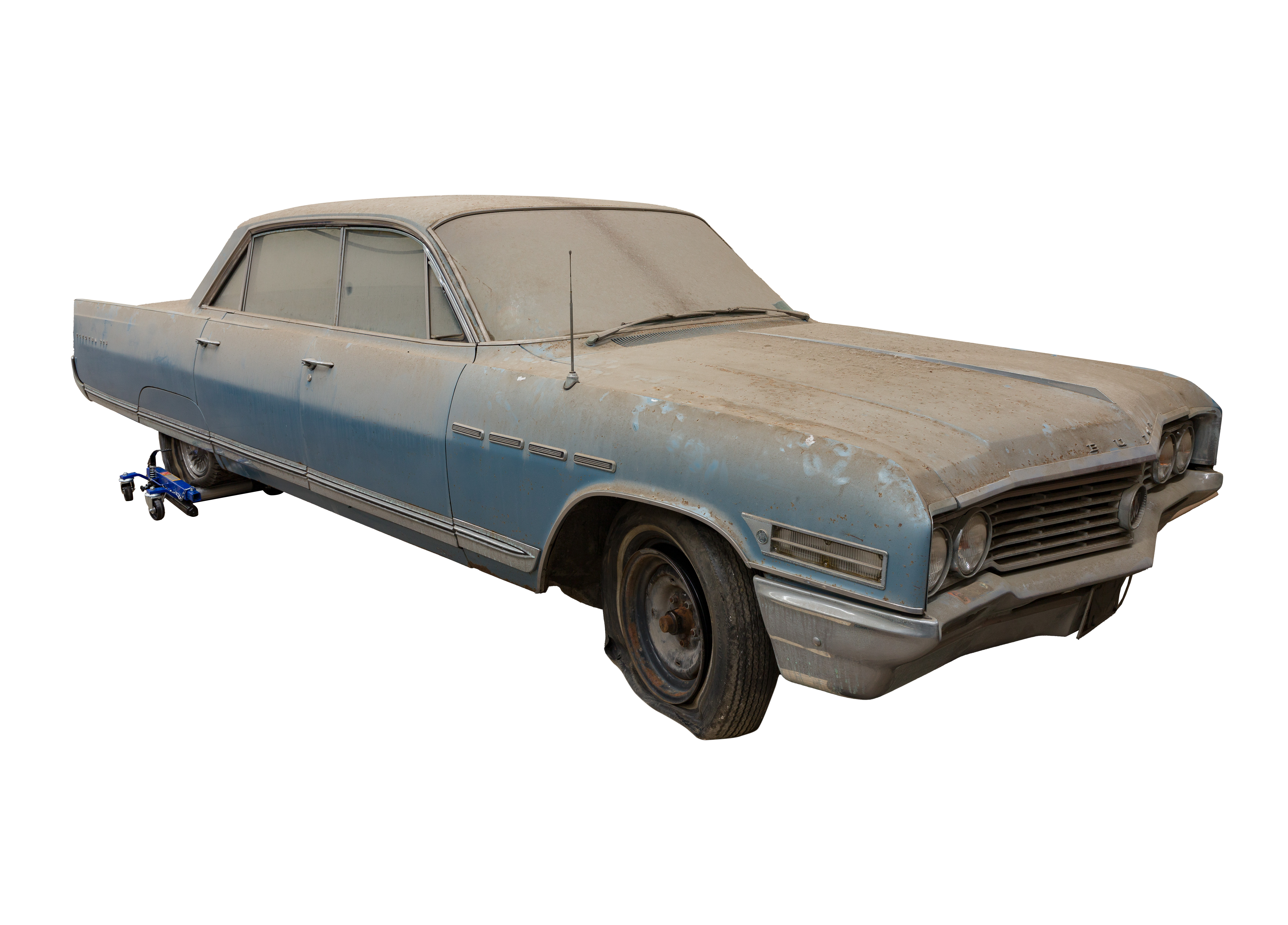 Condition: AS IS, no keys, no battery, not tested, major dirt accumulation, some rust, odometer may not be an accurate reading, missing hubcap, all tires flat, back trunk Buick insignia detached (included), interior having some staining, wear, fading, torn fabric on top and slight odor
