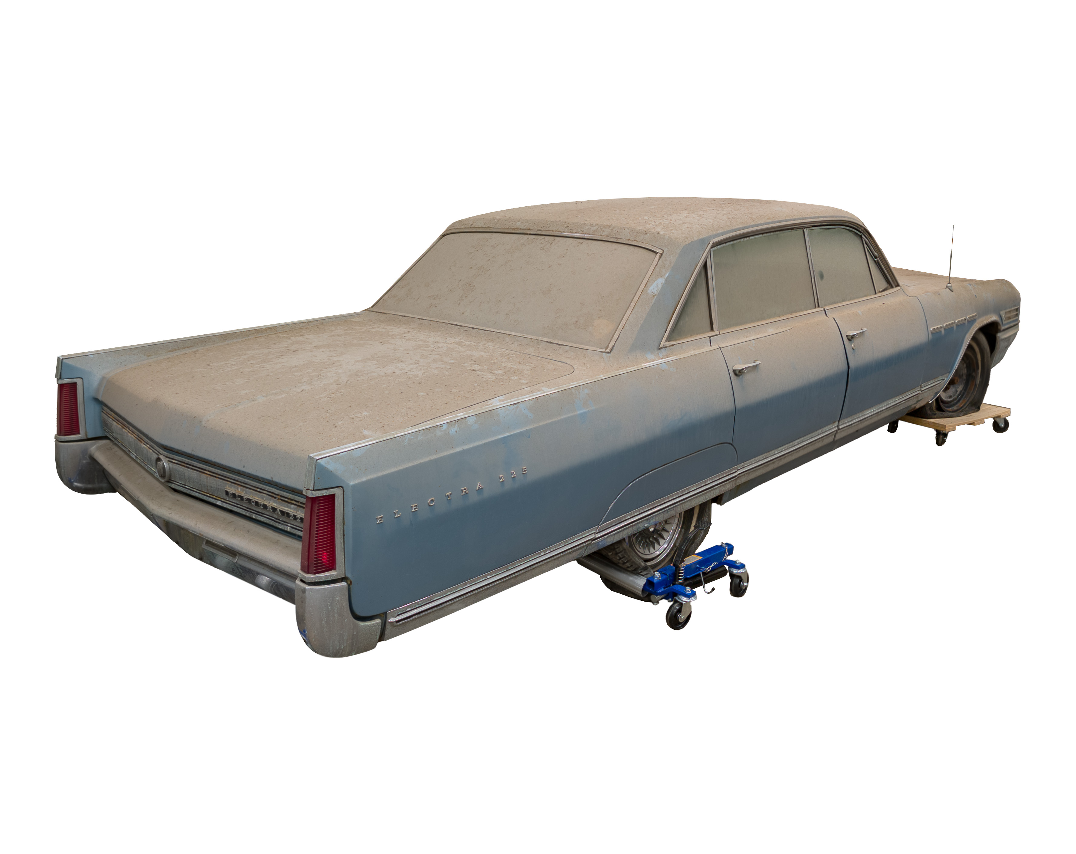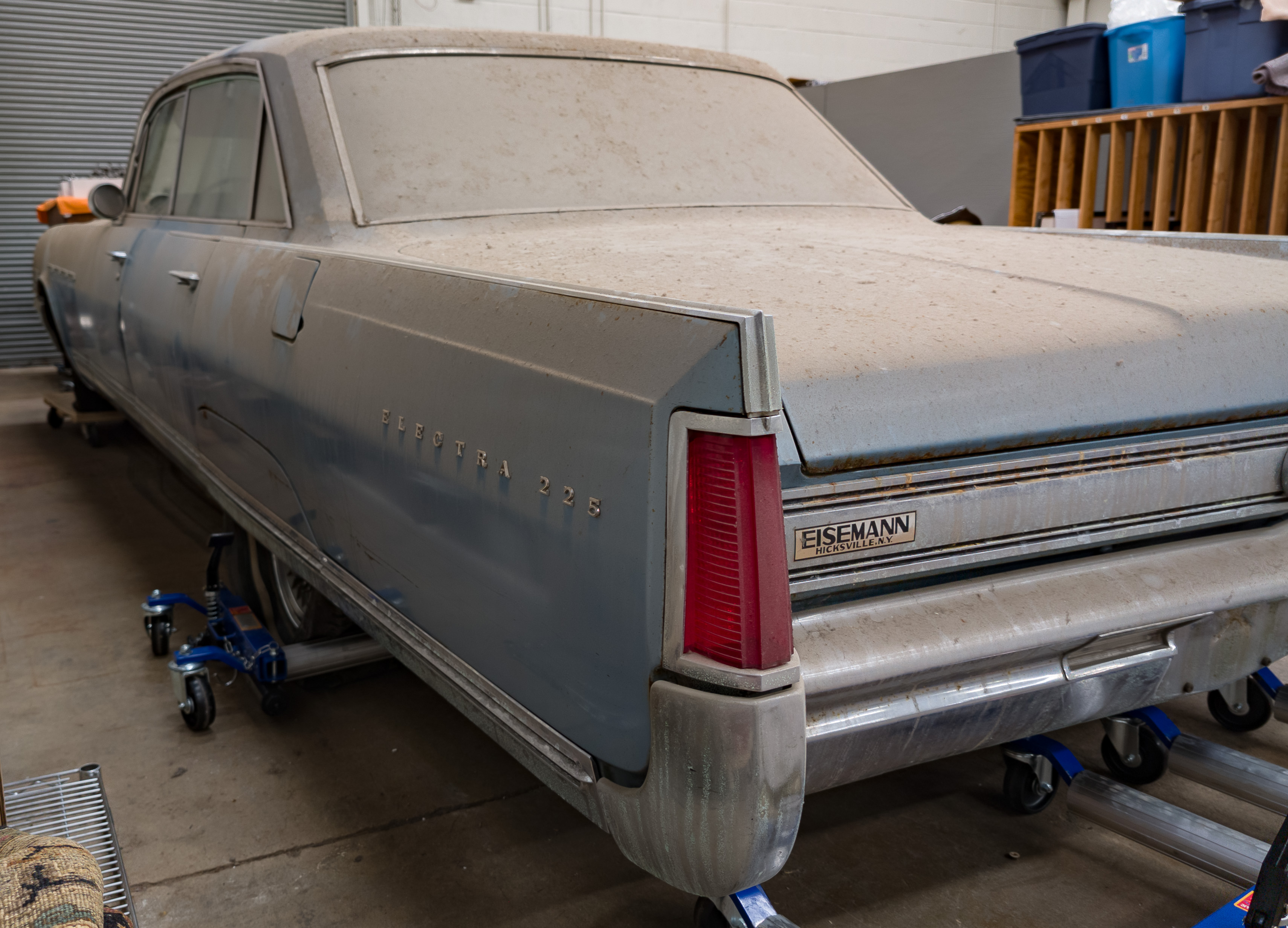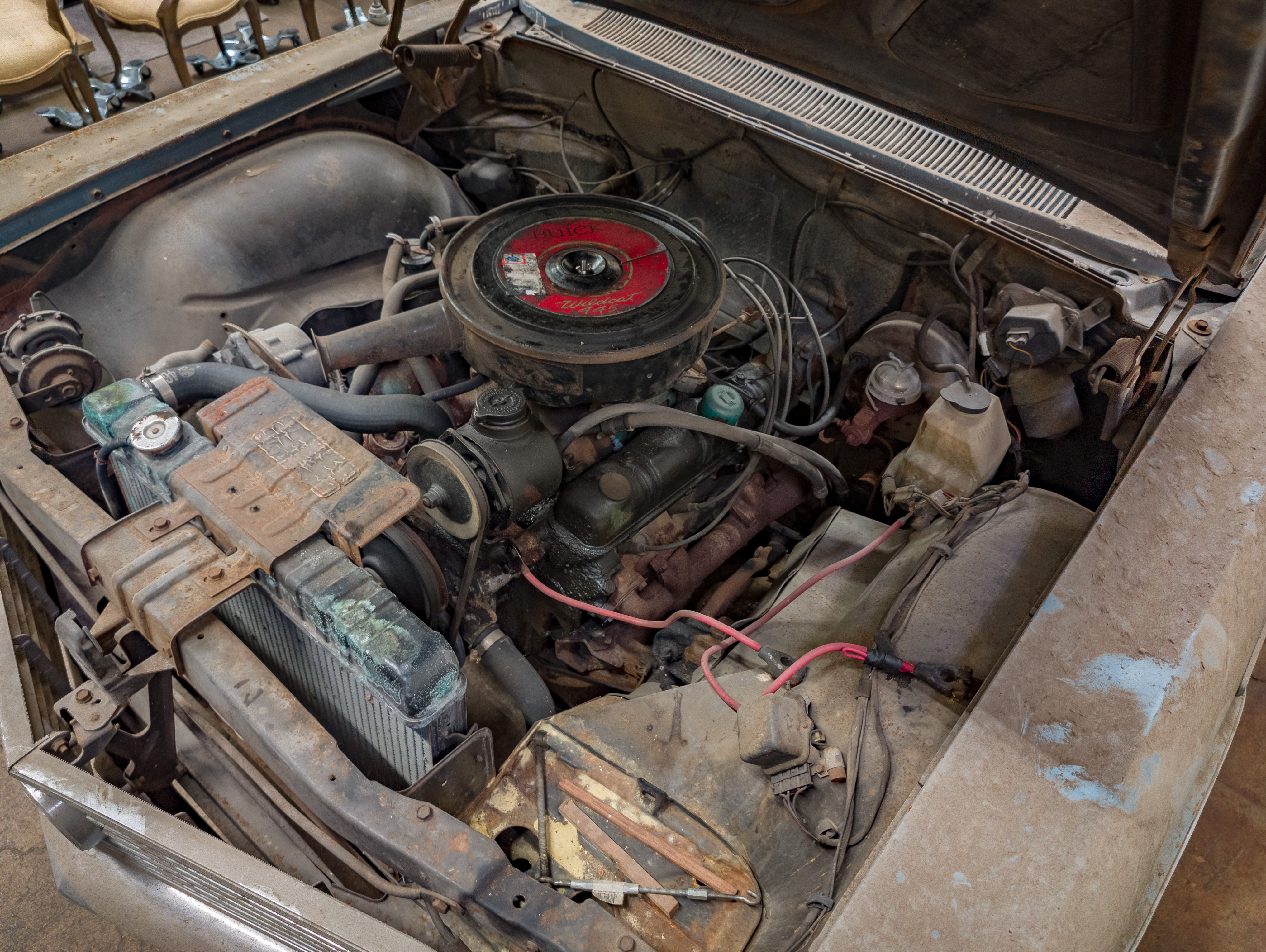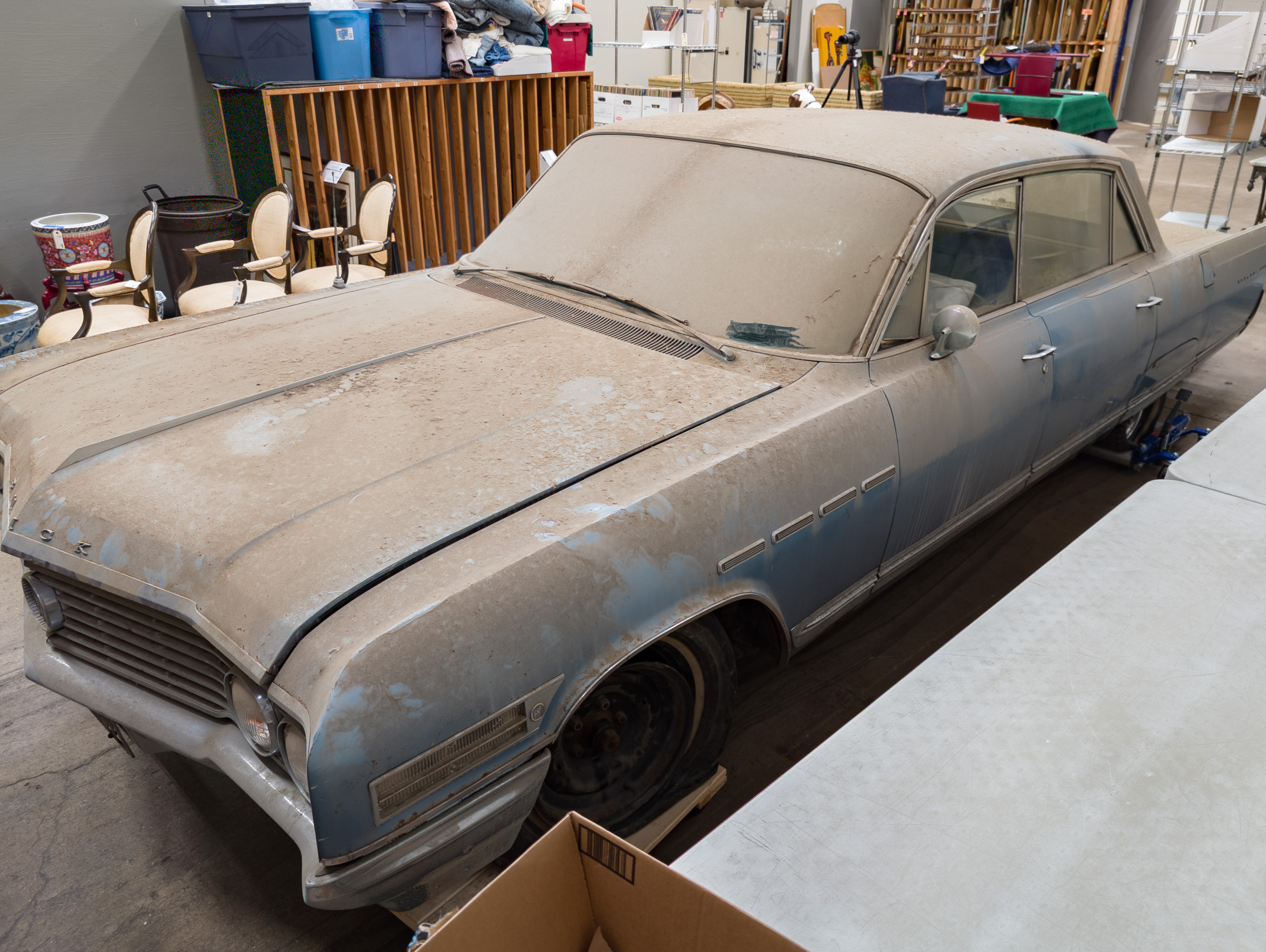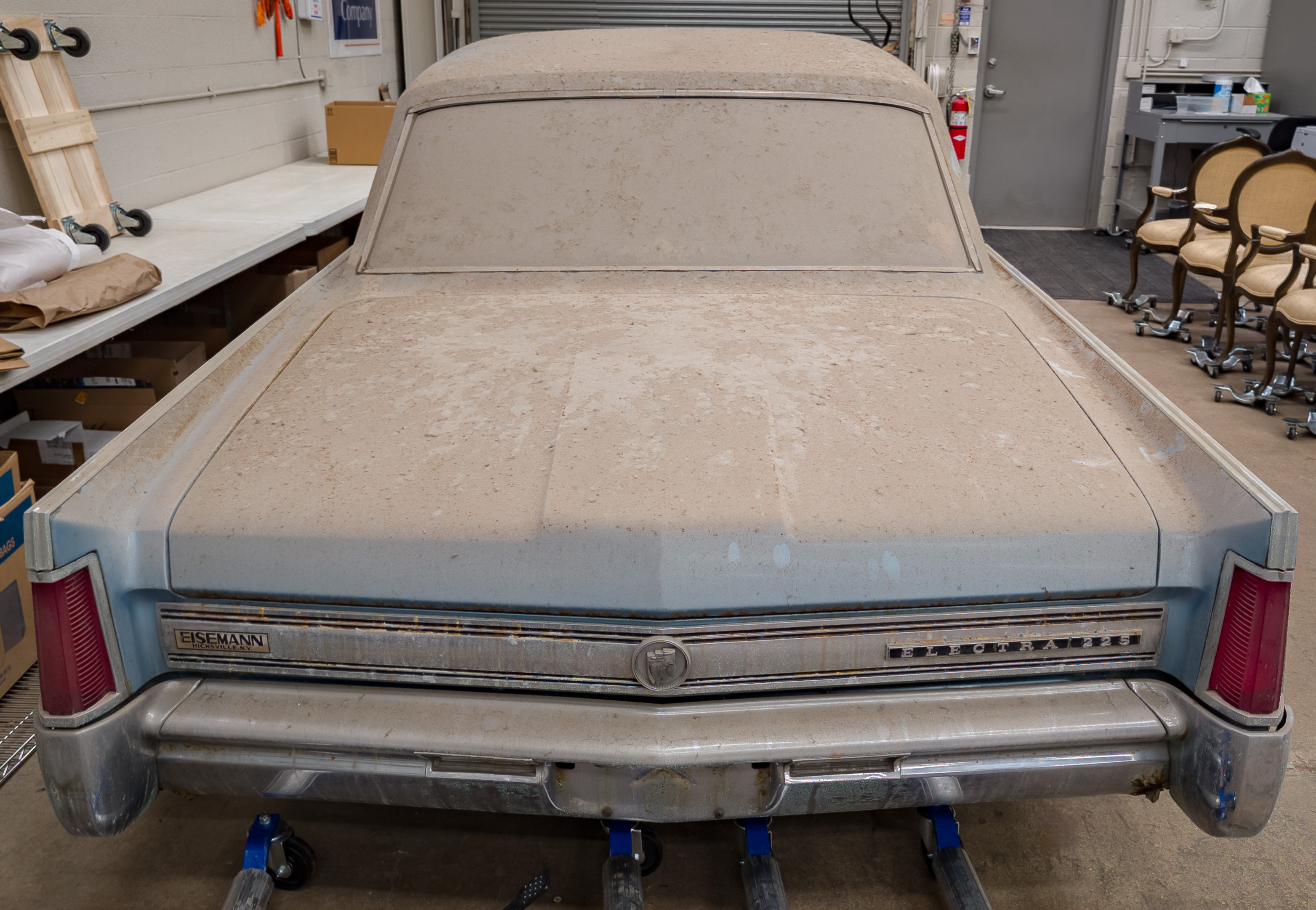 Stored untouched in a storage locker for the last 15+ years, VIN #8K1092920, Wedgwood blue, four door sedan, 401 cubic-inch V8 engine #B11969, blue leather and fabric interior, automatic, odometer current reading 39,346 miles, chrome detailing, including fuses and 4-way turn lights, title, books and personal gas and mileage log