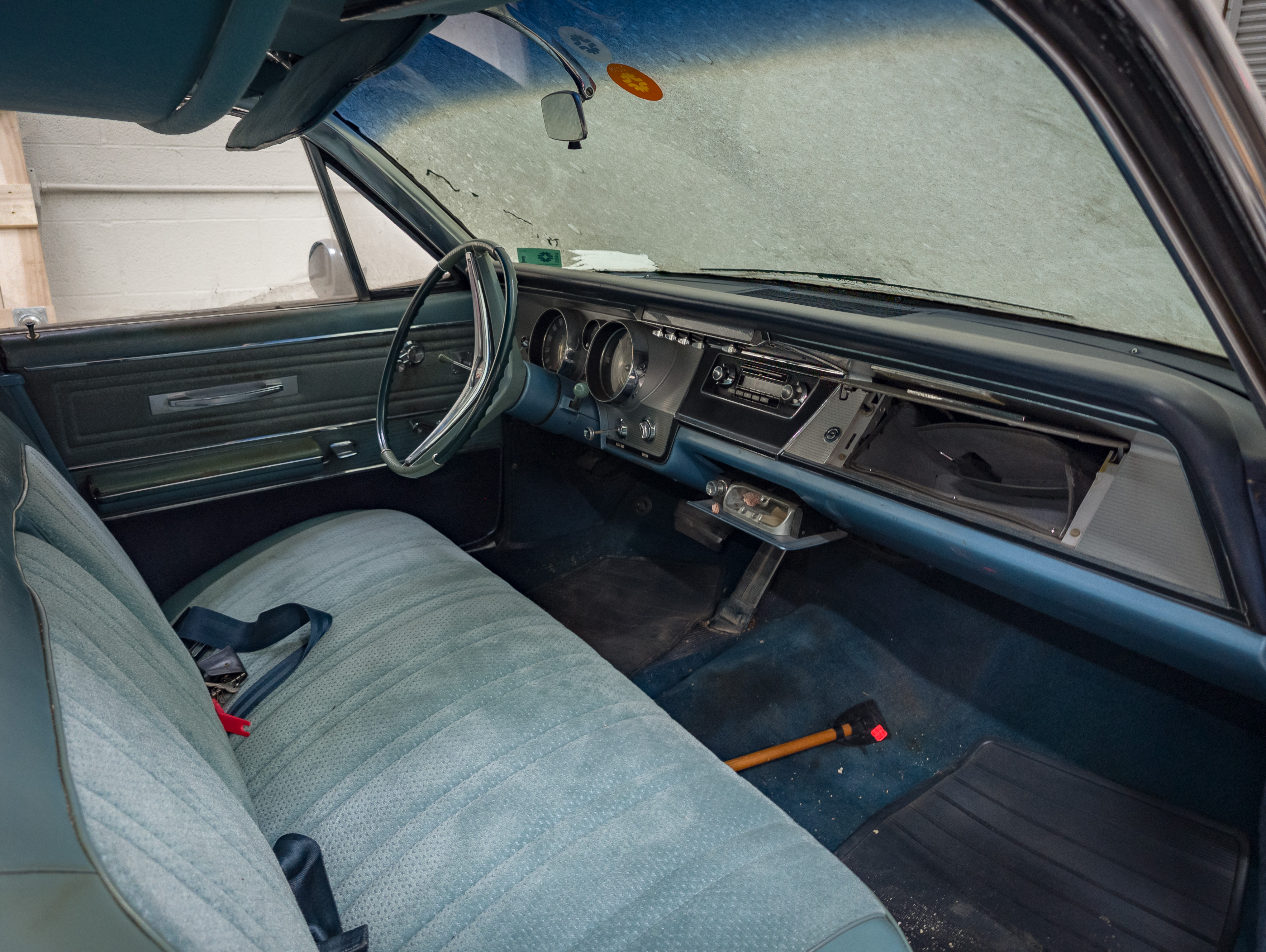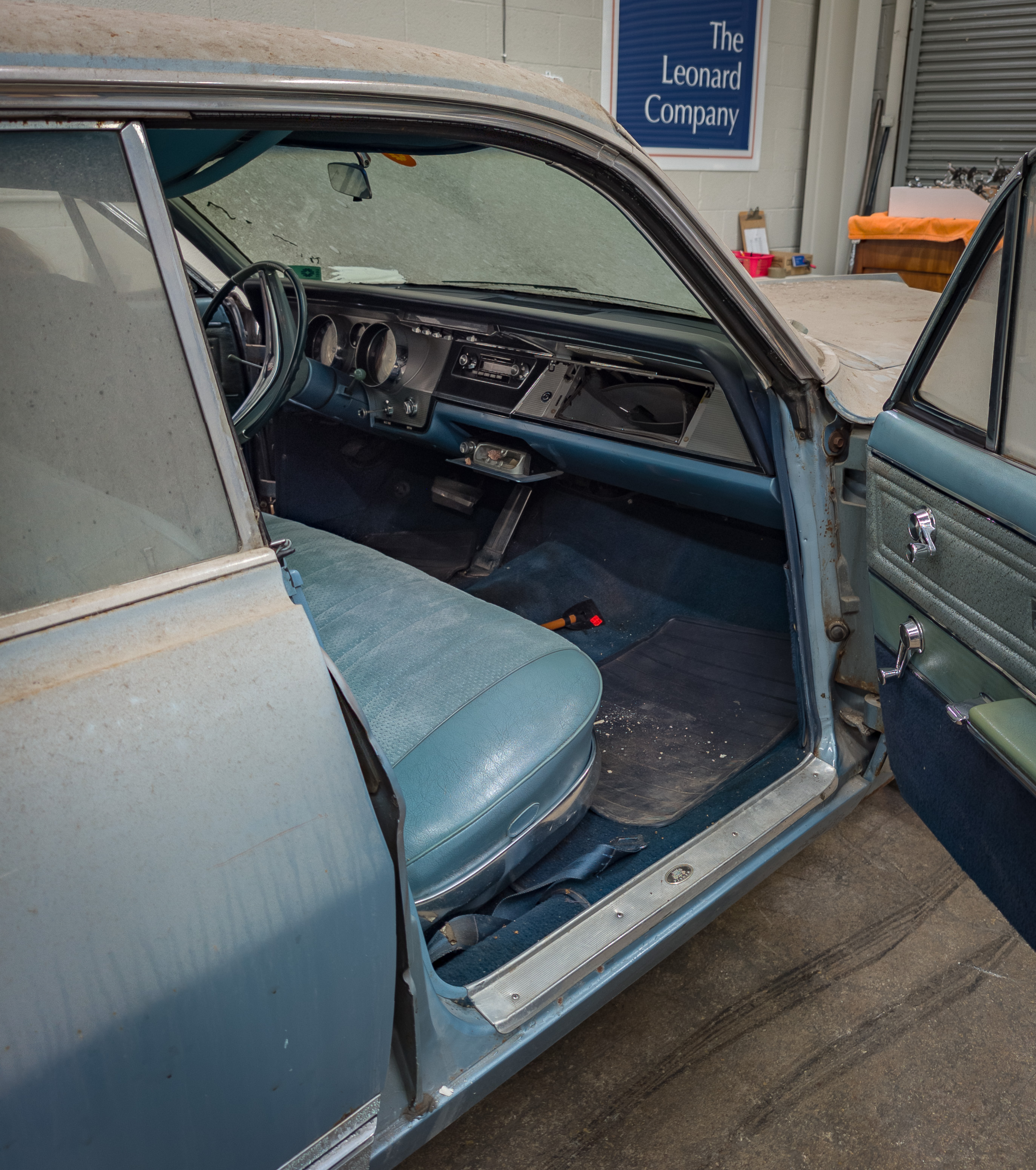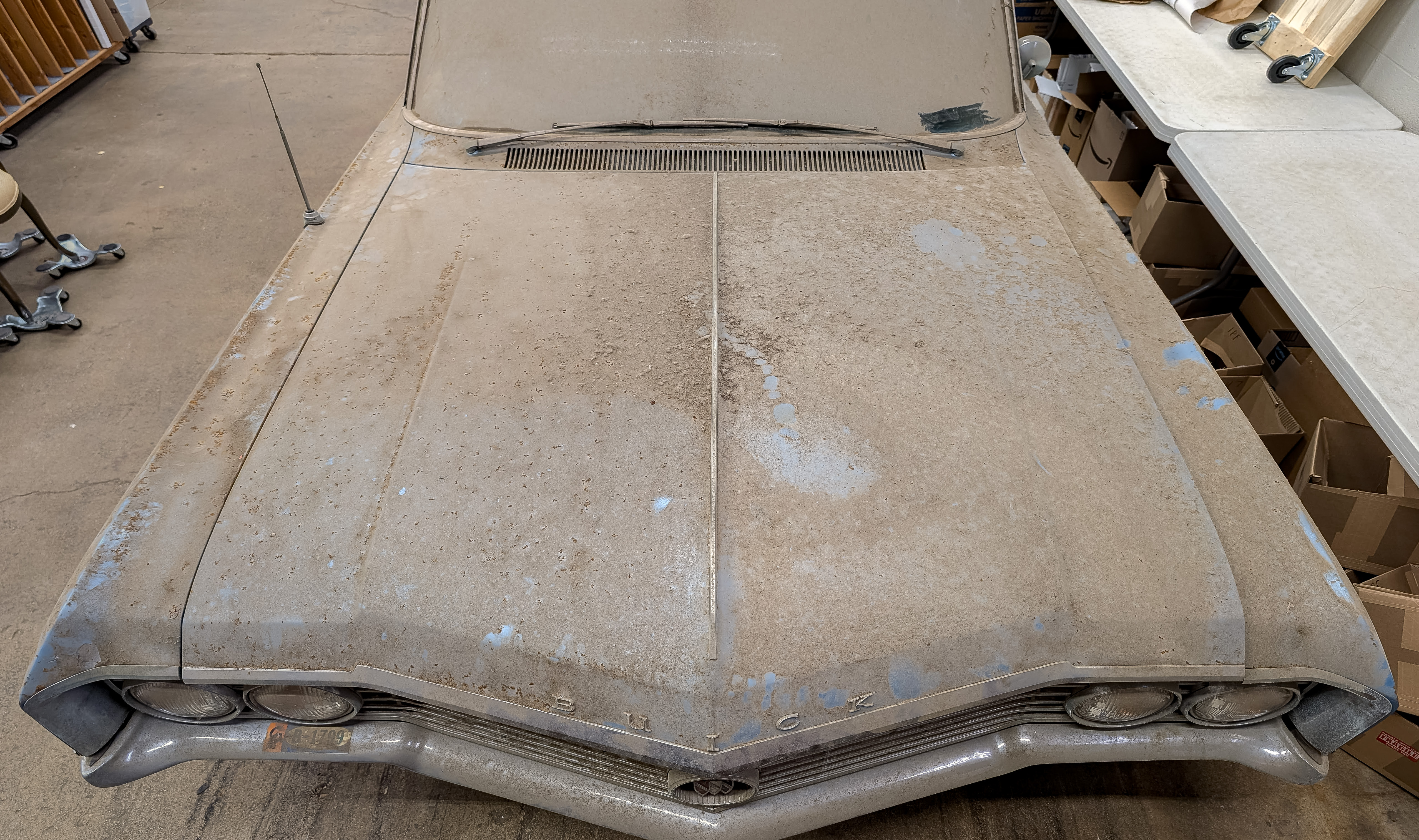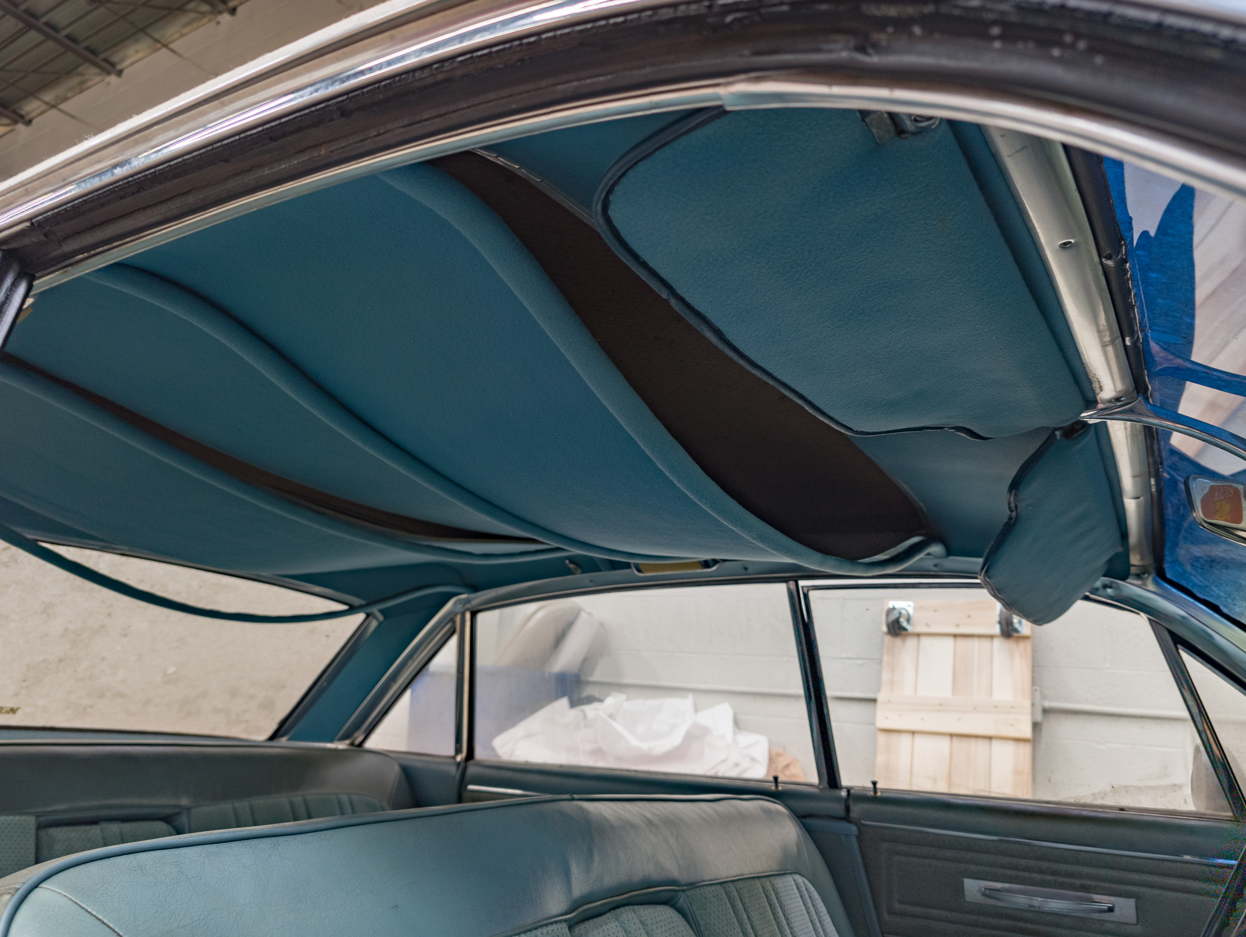 Stored untouched in a storage locker for the last 15+ years, VIN #8K1092920, Wedgwood blue, four door sedan, 401 cubic-inch V8 engine #B11969, blue leather and fabric interior, automatic, odometer current reading 39,346 miles, chrome detailing, including fuses and 4-way turn lights, title, books and personal gas and mileage log