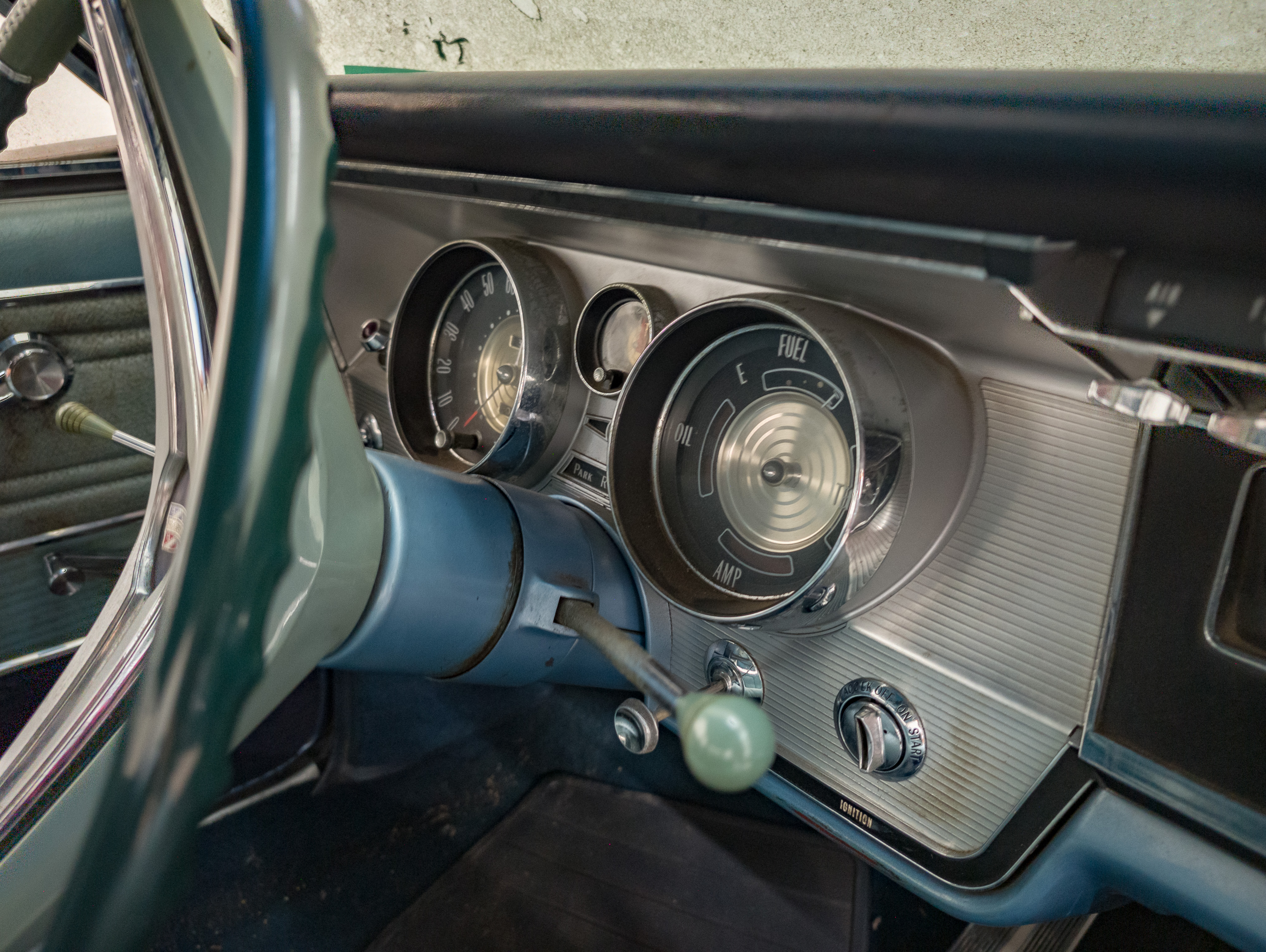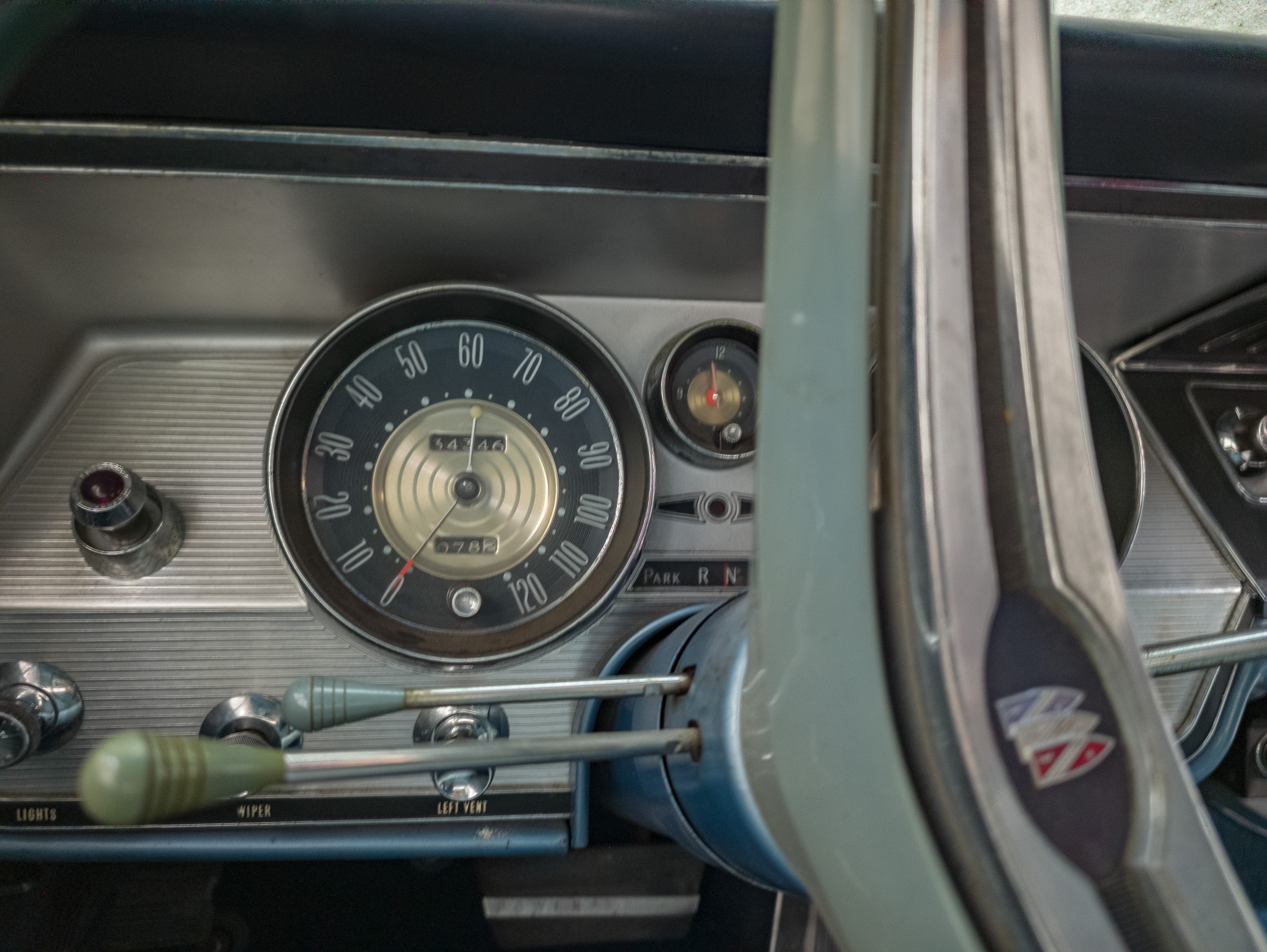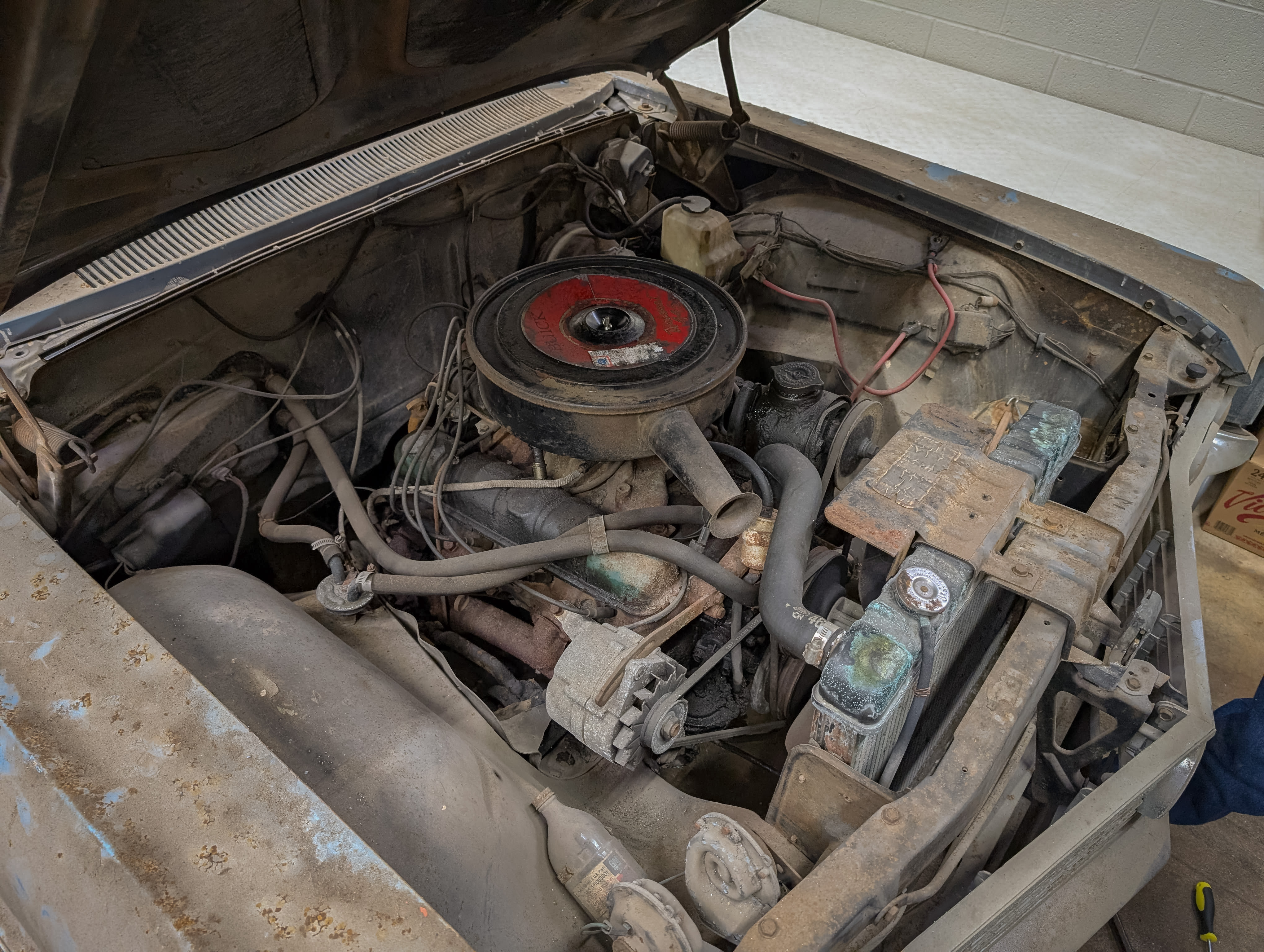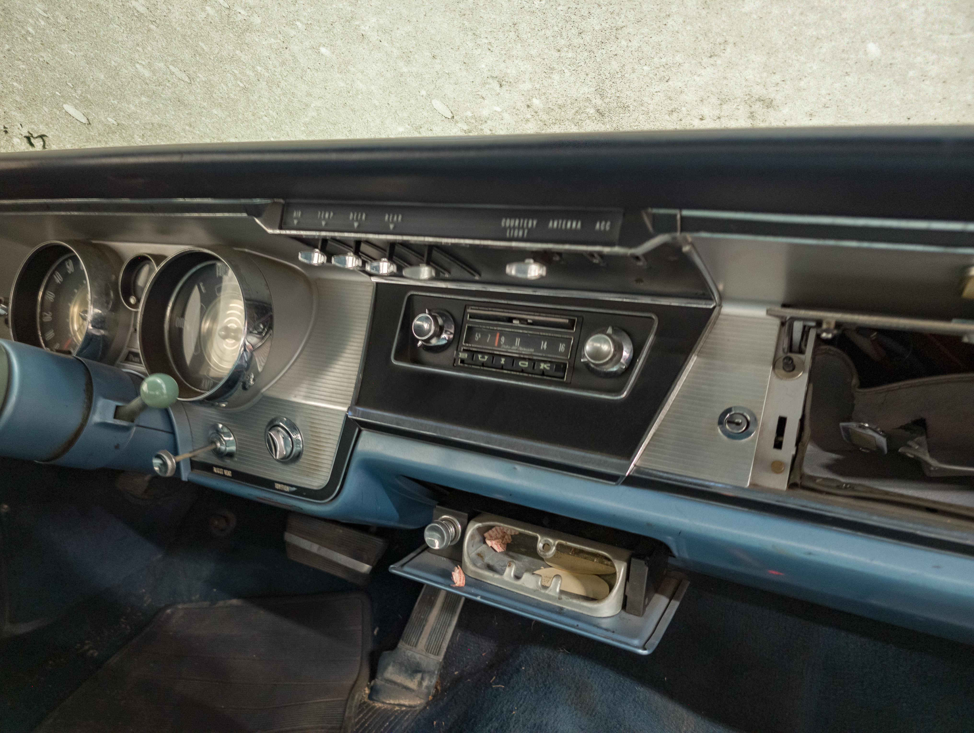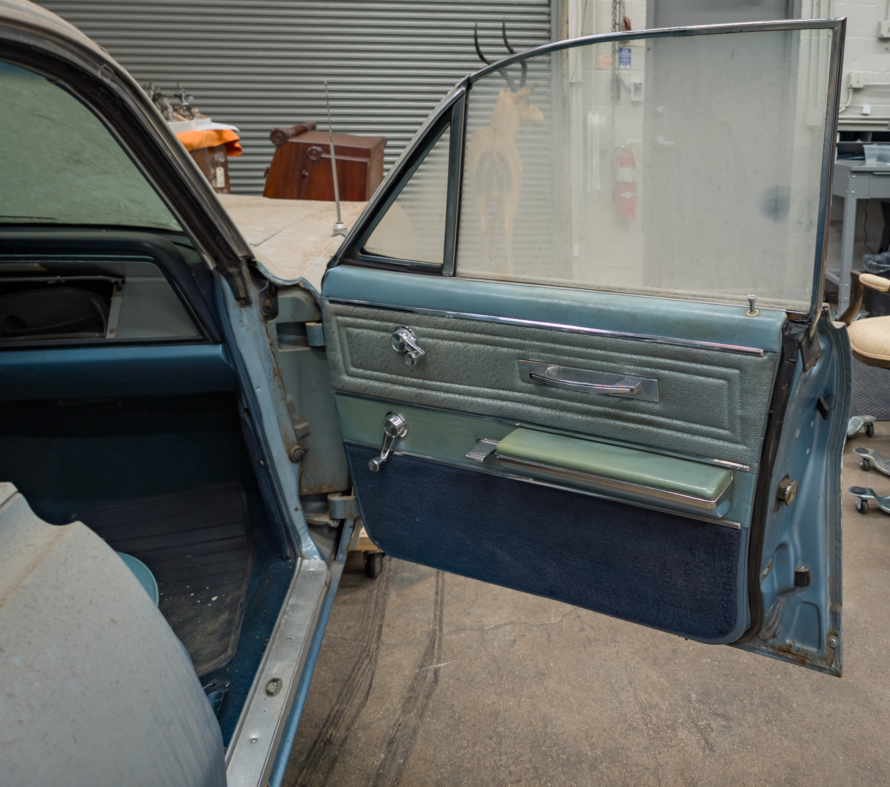 Stored untouched in a storage locker for the last 15+ years, VIN #8K1092920, Wedgwood blue, four door sedan, 401 cubic-inch V8 engine #B11969, blue leather and fabric interior, automatic, odometer current reading 39,346 miles, chrome detailing, including fuses and 4-way turn lights, title, books and personal gas and mileage log