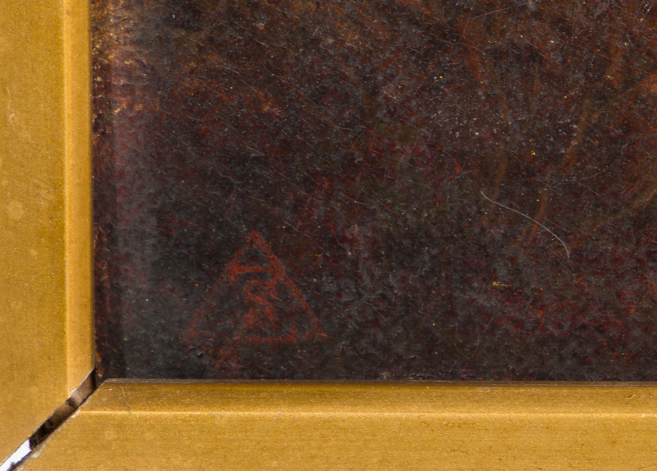 Condition: both having paint loss along the edges, Native American painting cut down from a larger image, both frames having chips, cracks and scratches, Native American frame having repairs