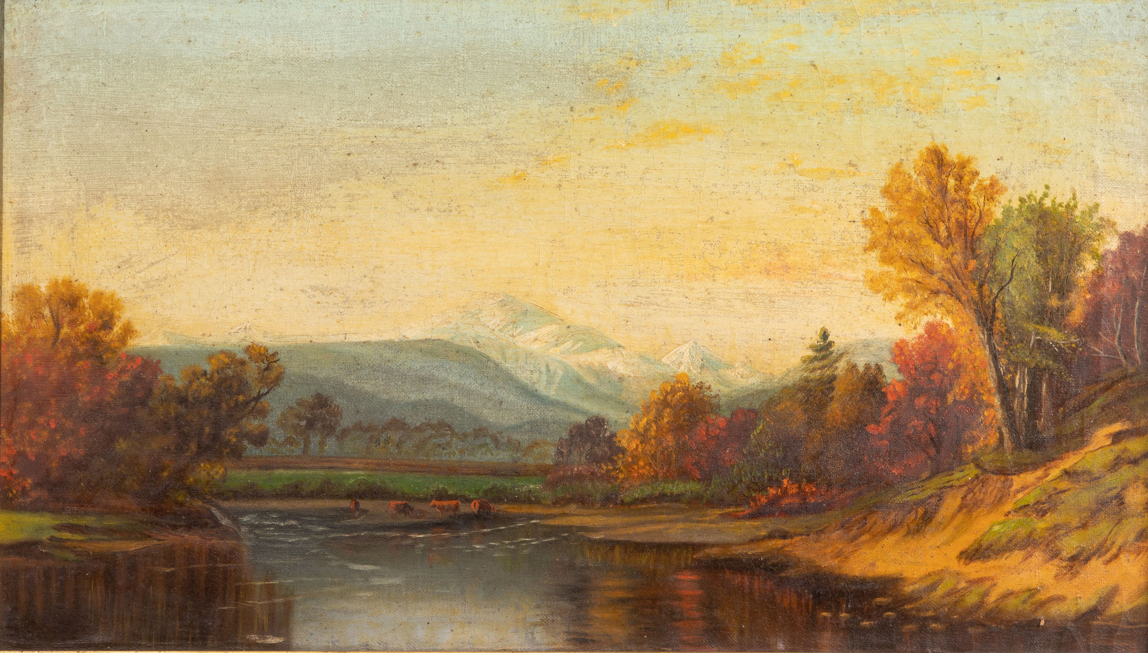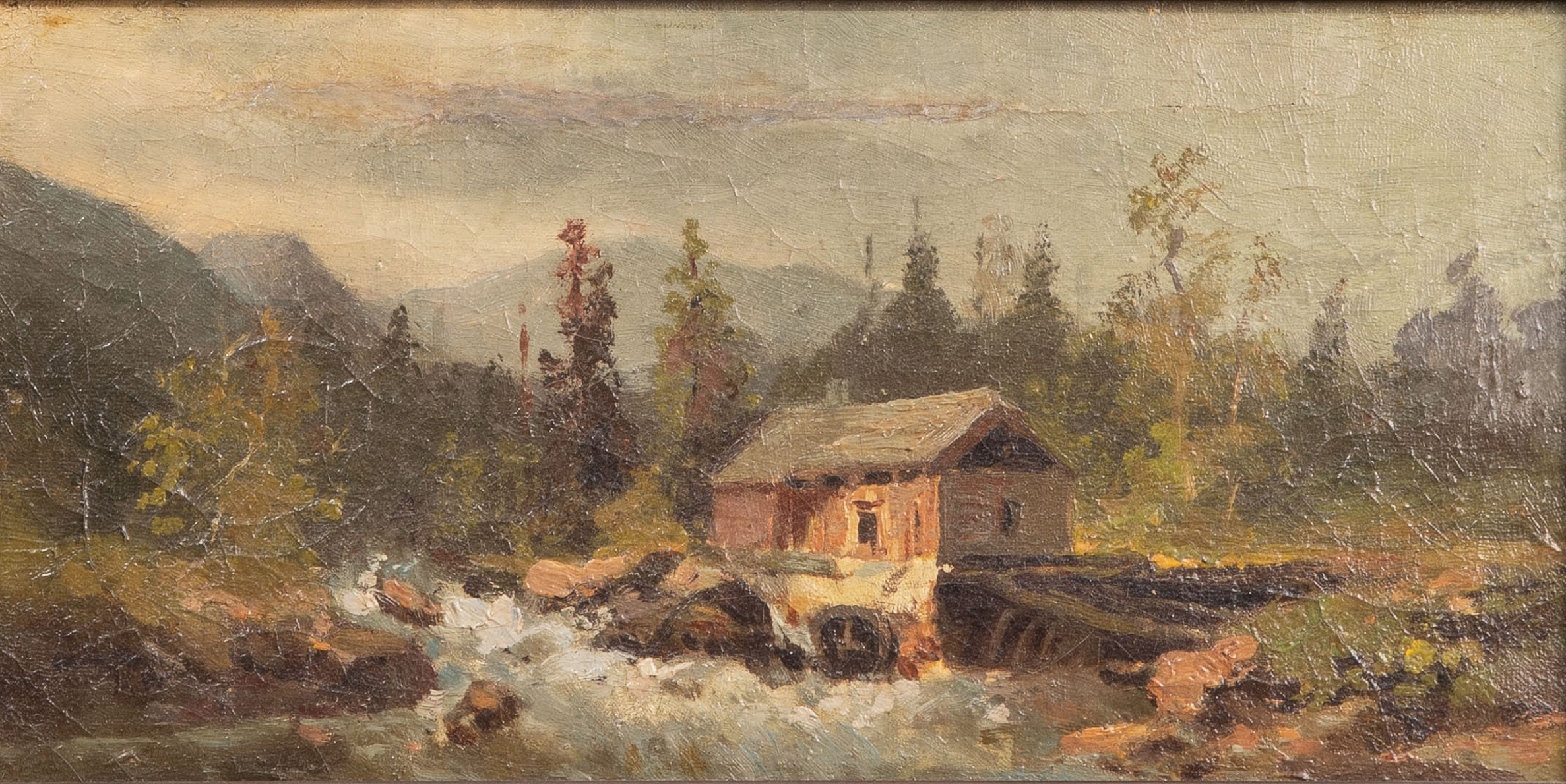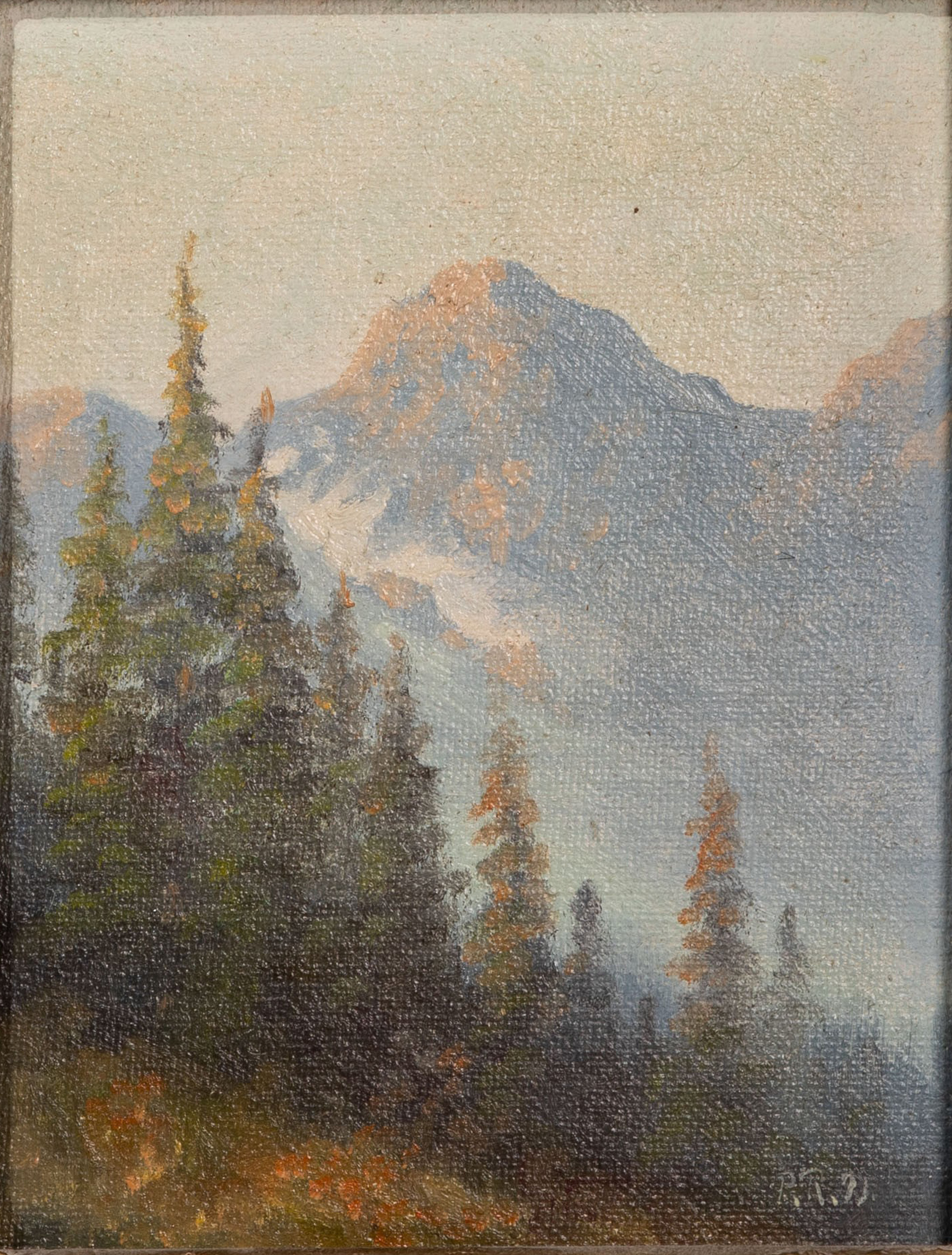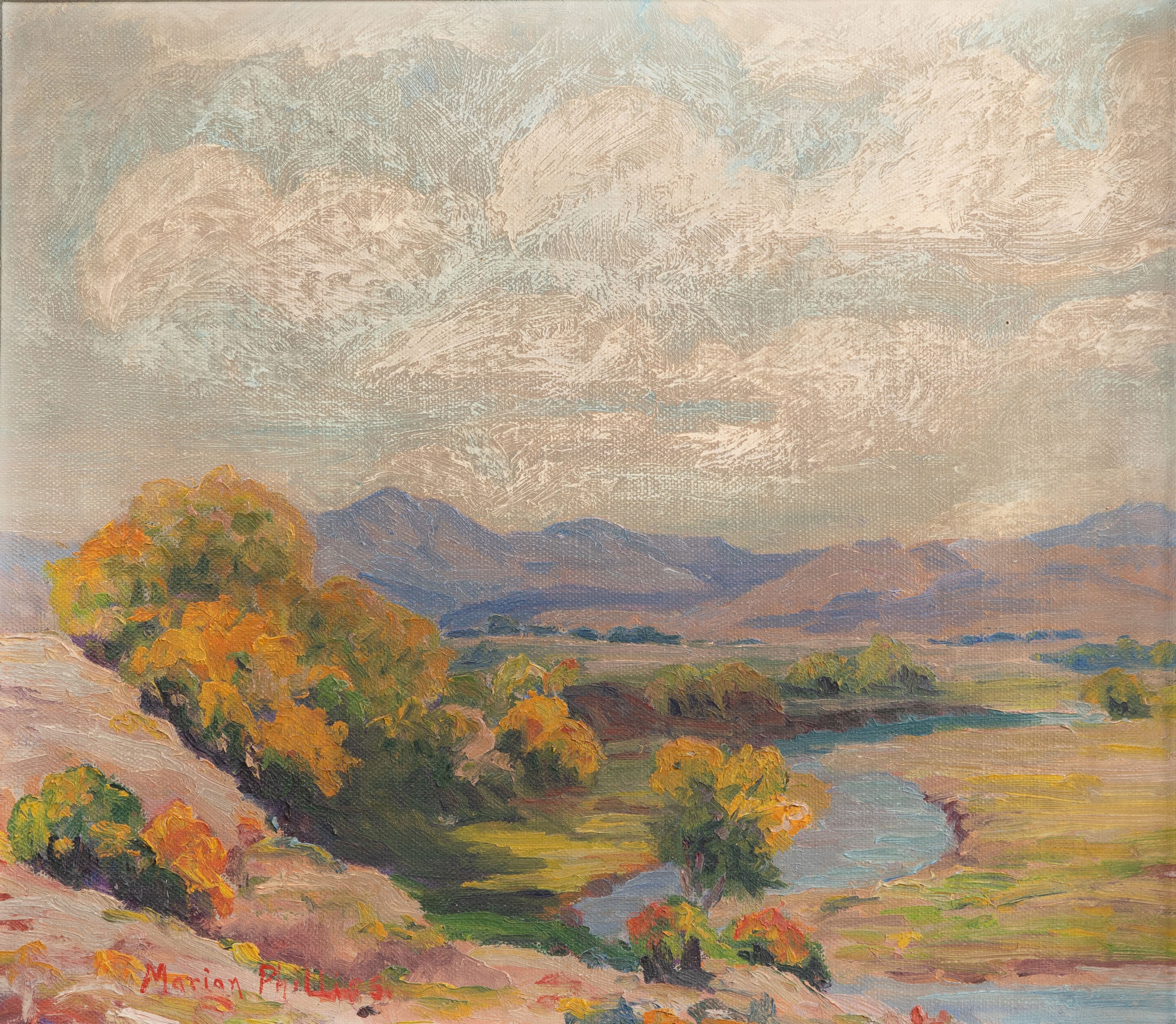 (5) undated items, including a landscape signed ‘Marion Phillips’, all others unsigned / illegibly signed, all depicting various mountain landscapes in wood frames