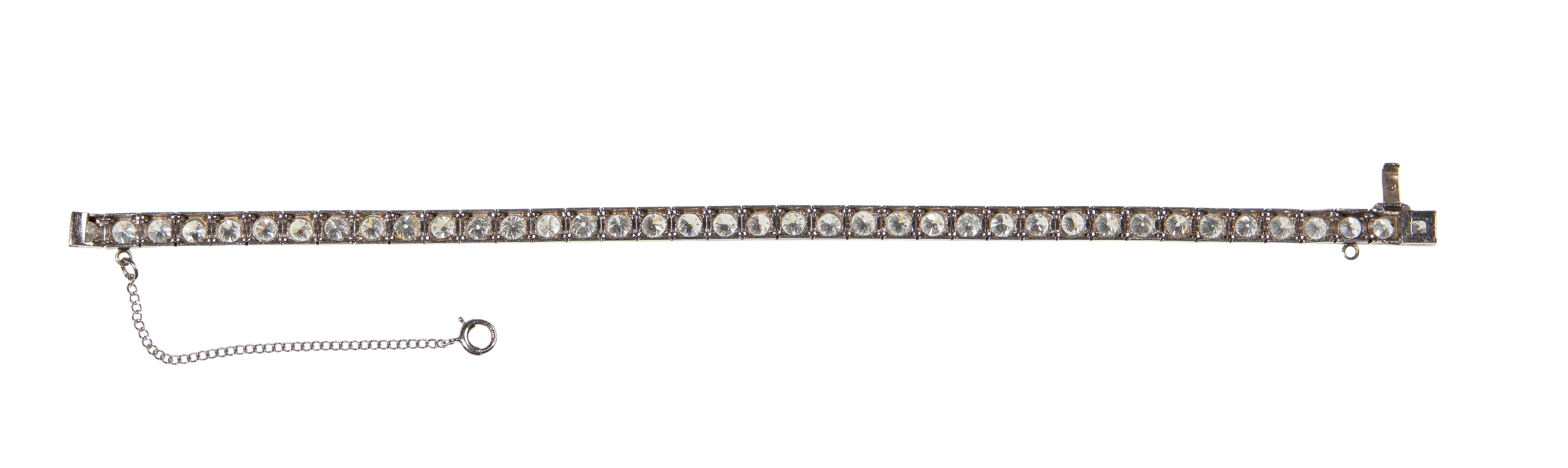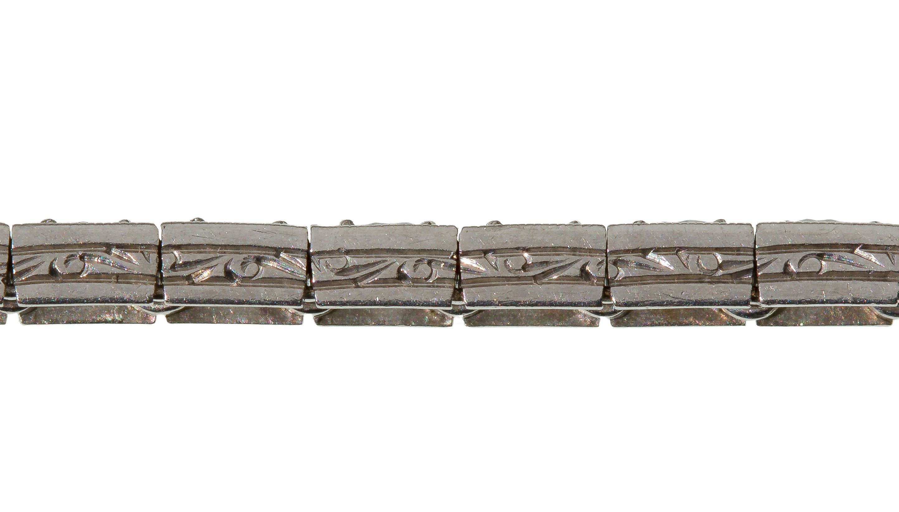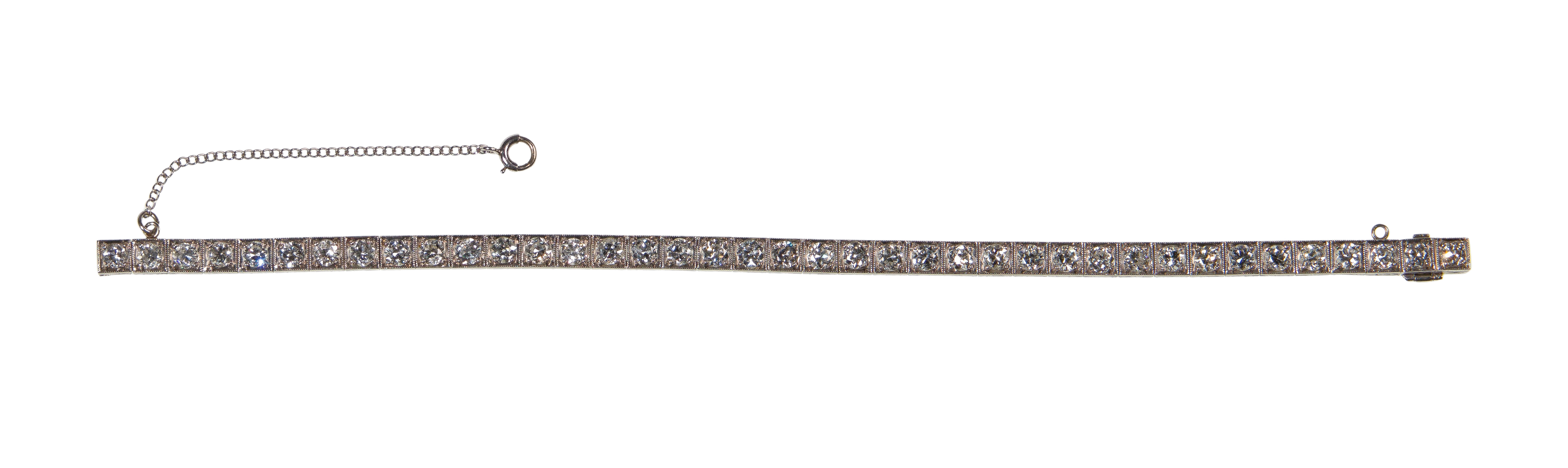 Condition: bracelet clasp broken, bracelet unmarked but XRF tested as 95% platinum, safety chain XRF tested as 14k gold