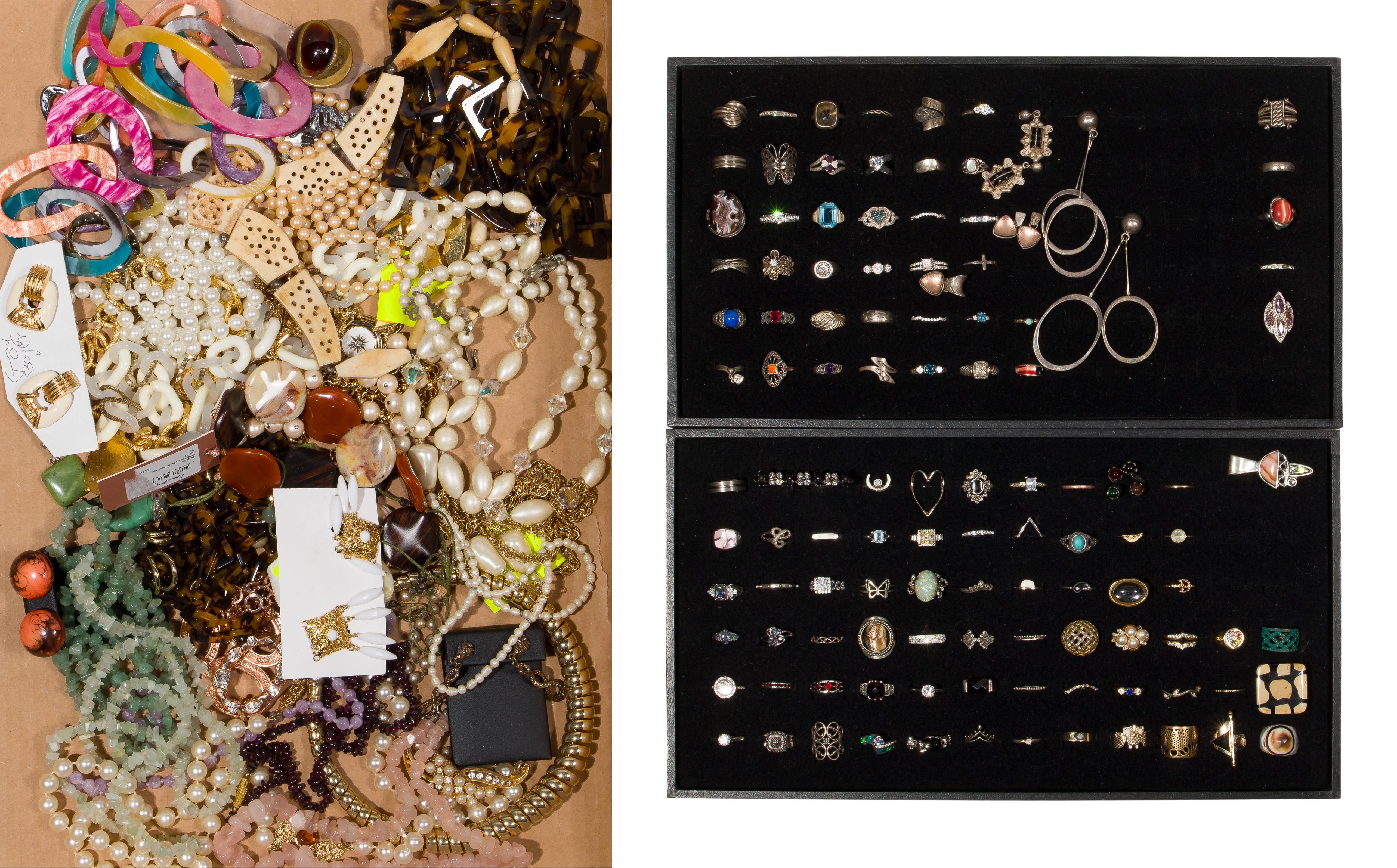 Approximately (40) rings, earrings and a pendant (most marked ‘sterling’ / ‘925’) and approximately (8) pounds of fashion jewelry including rings, earrings and necklaces, some with stones