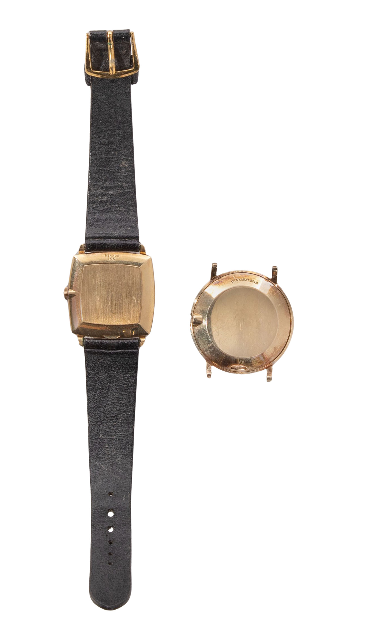 Weight: 14k gold: 29.84 dwts., 10k gold: 20.32 dwts. (total including crystals, movements and band)