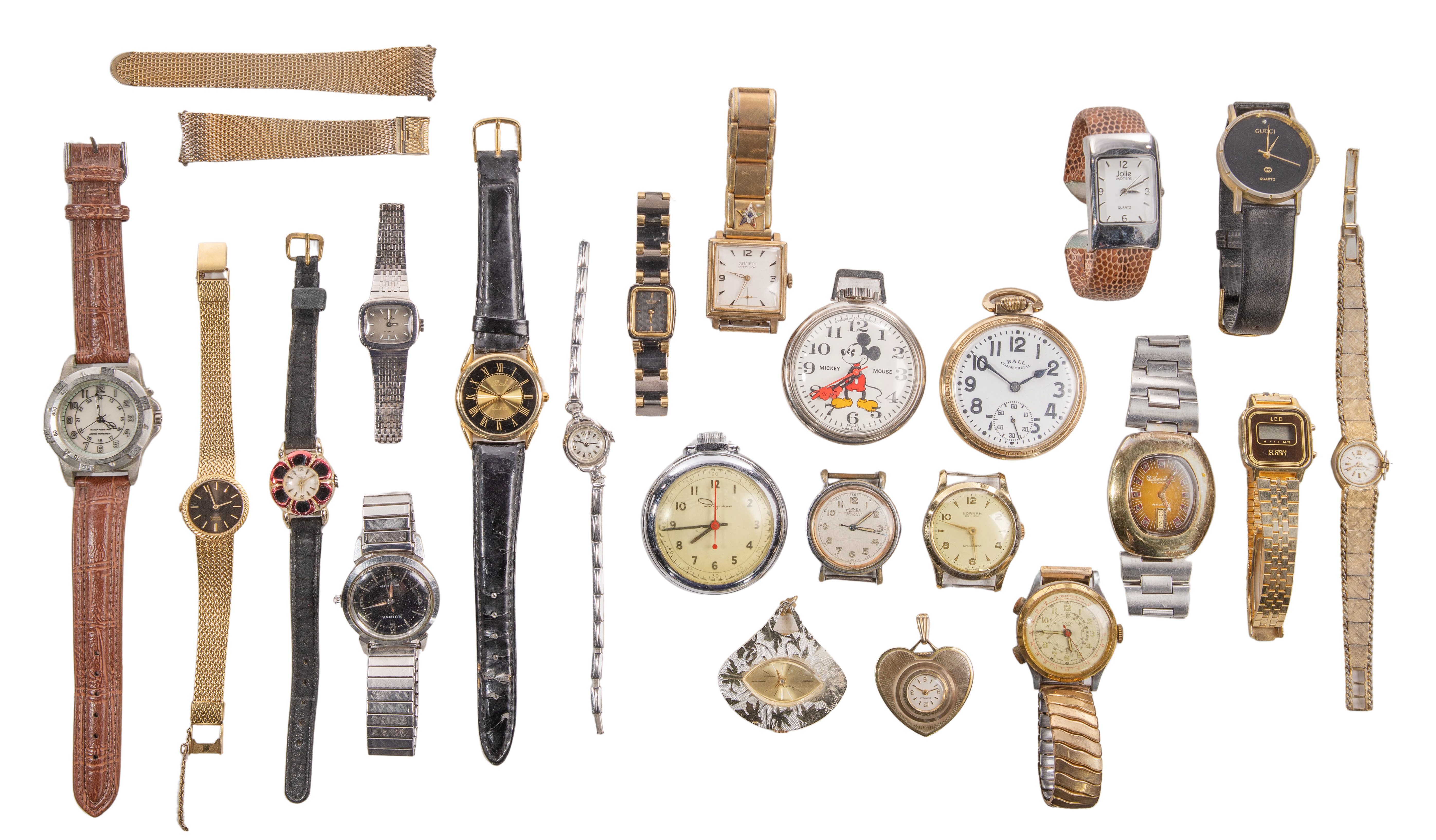 Approximately (25) items including a Benrus and a Longines (marked ’14k’ on cases), a Hamilton (marked ’10k’) and fashion watches by Piccard, Botany, Gruen and Gucci
