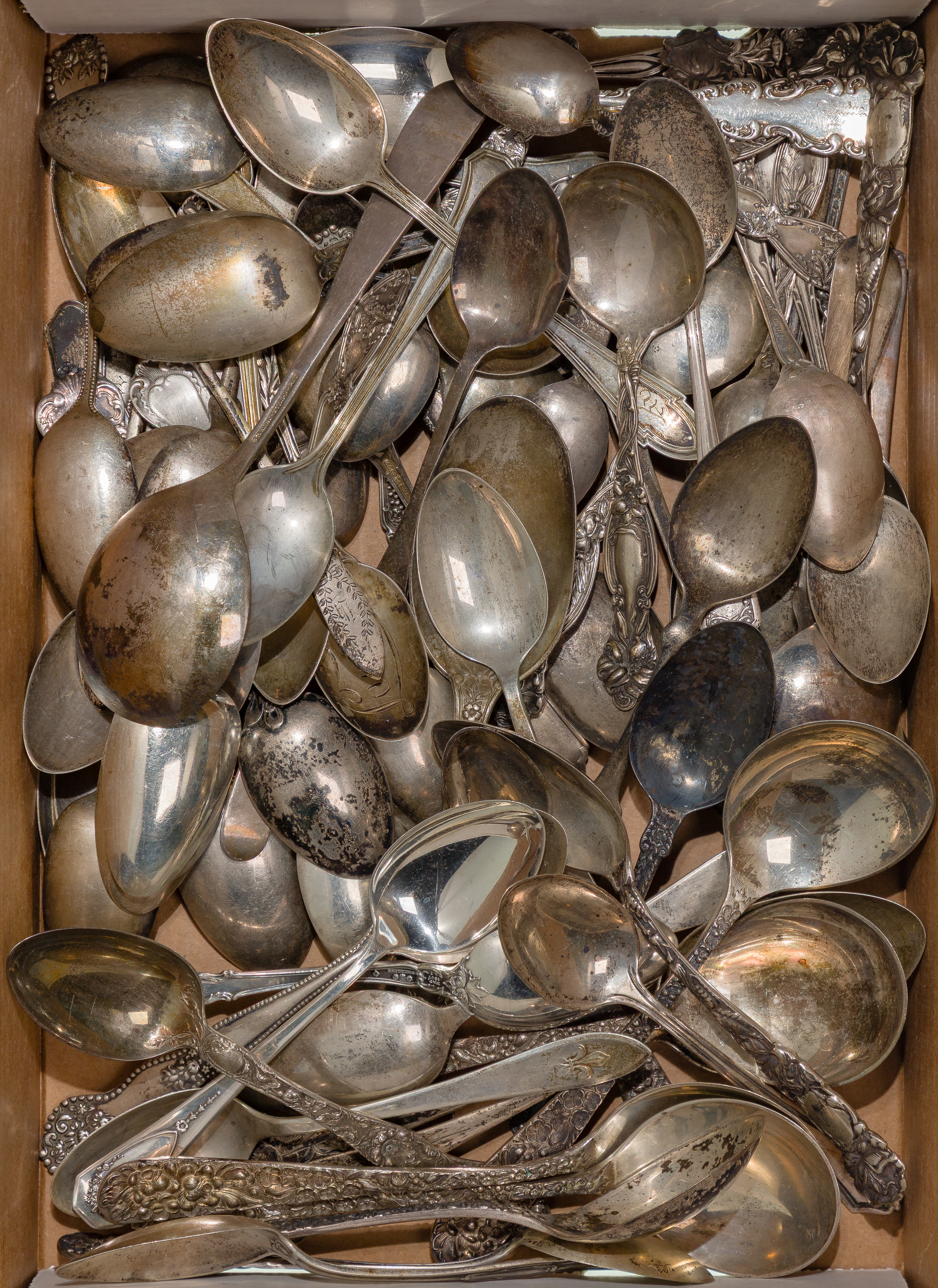 Approximately (50) spoons including makers Whiting, Alvin and Stieff (all marked ‘sterling’)