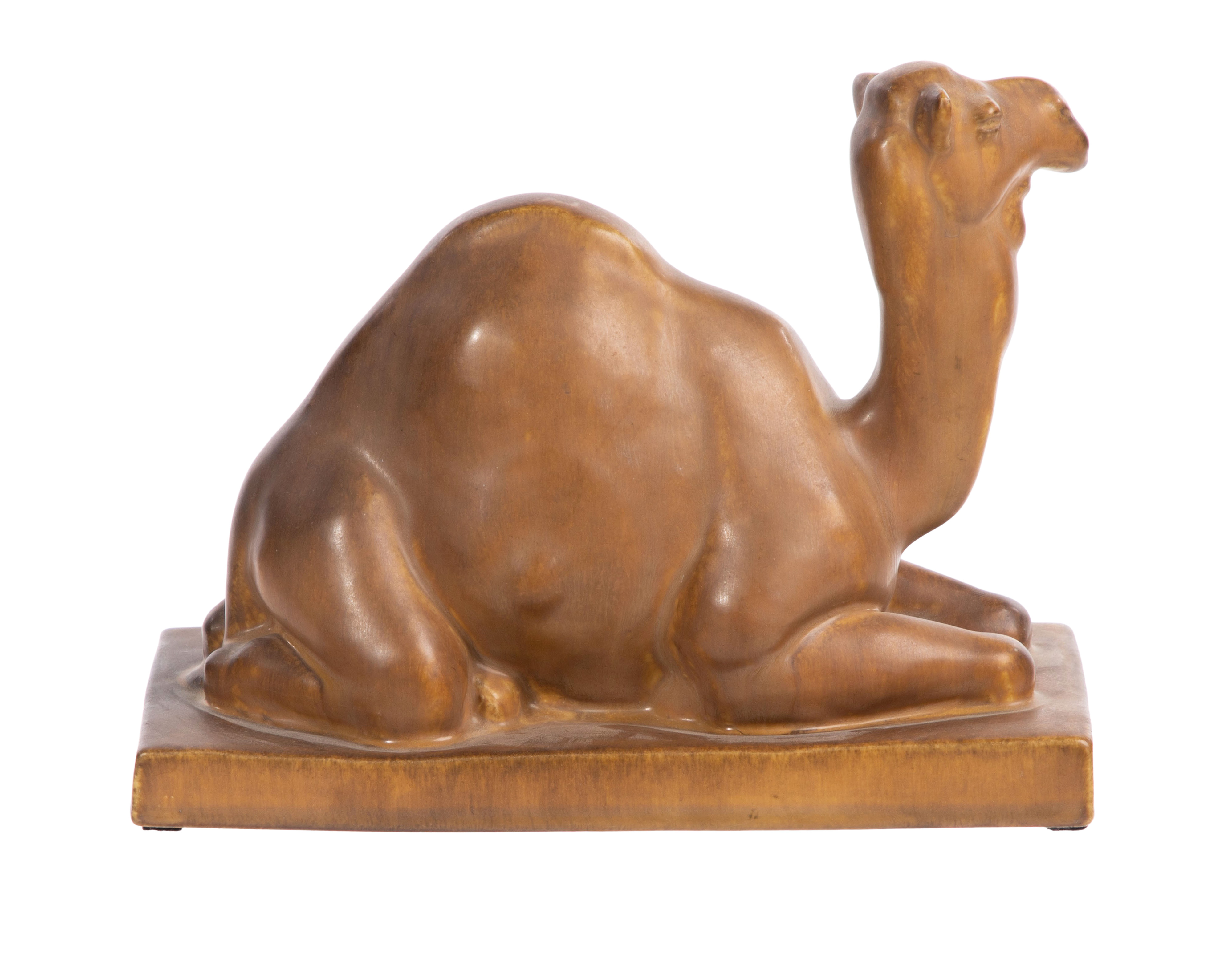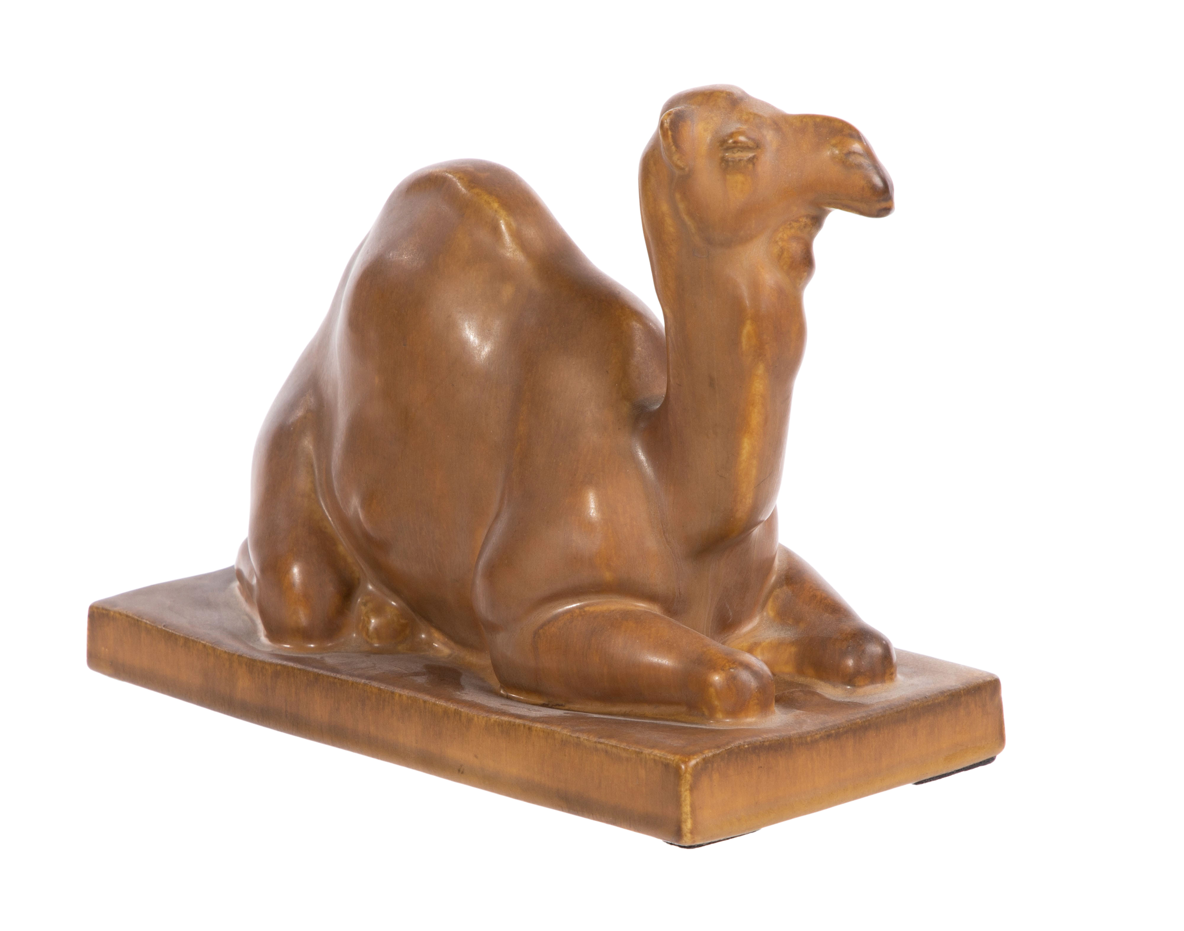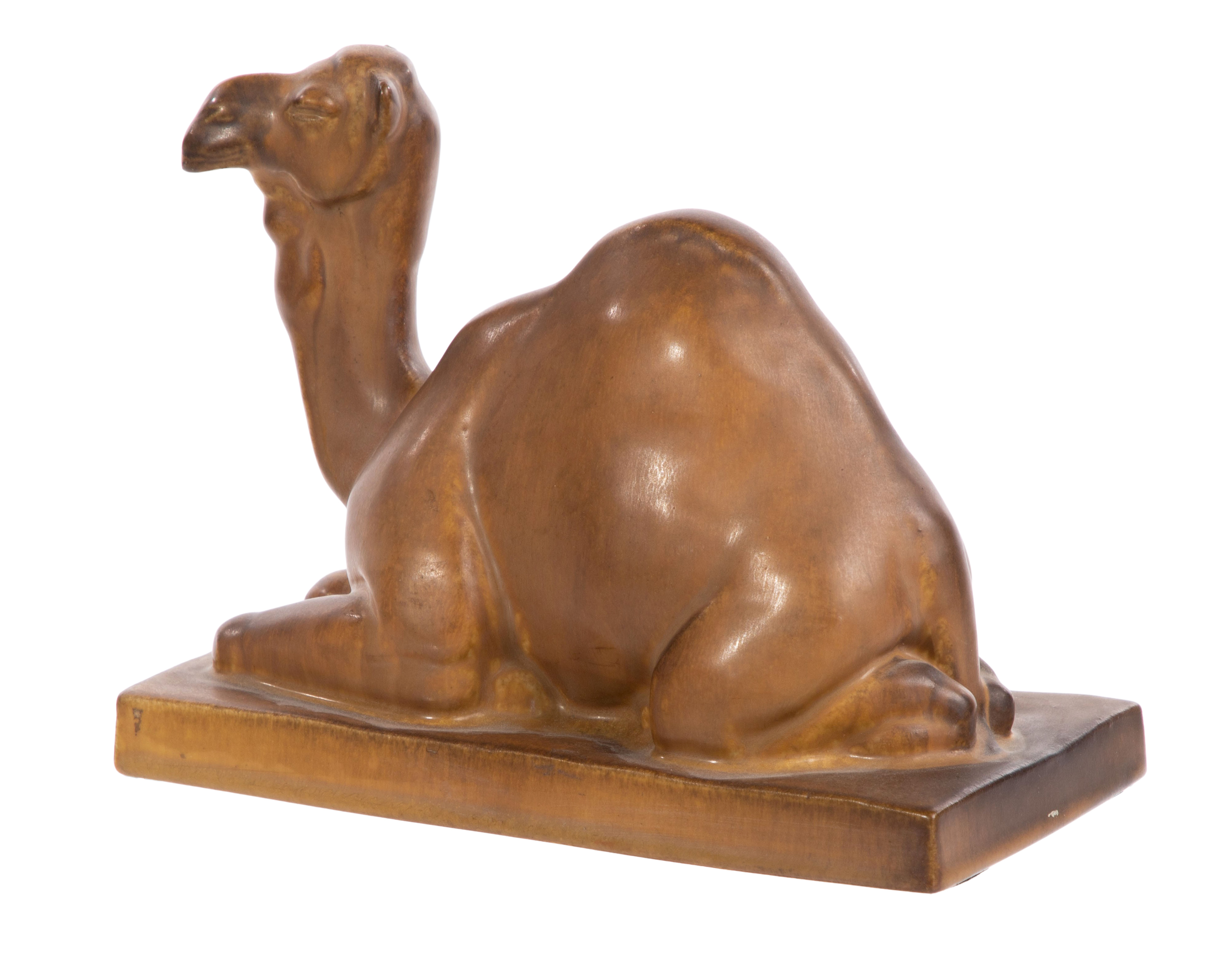 1930, having appropriate impressed mark, model #6166 and ‘A’ in a circle, depicting a dromedary at ease, camel-hued satin glaze