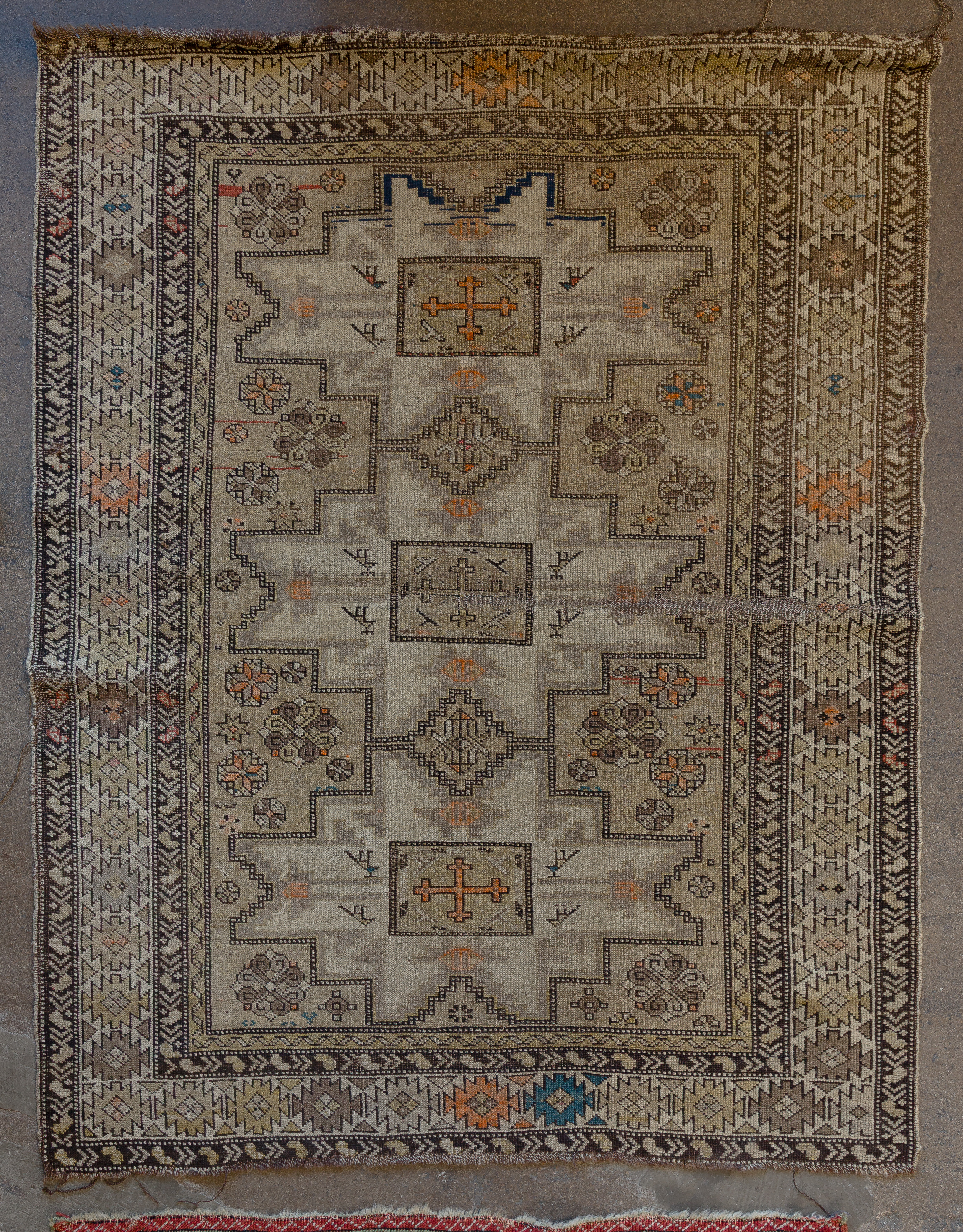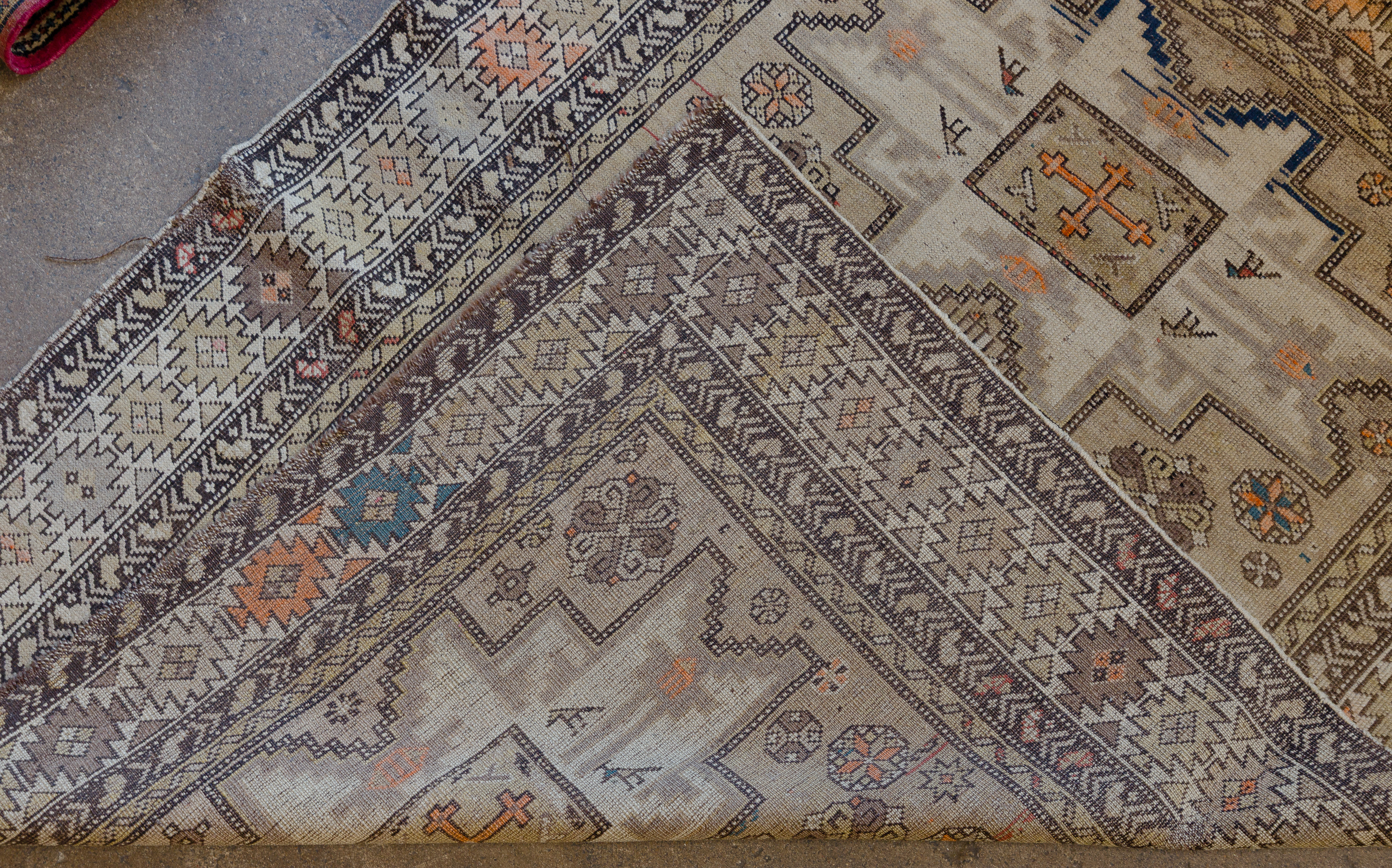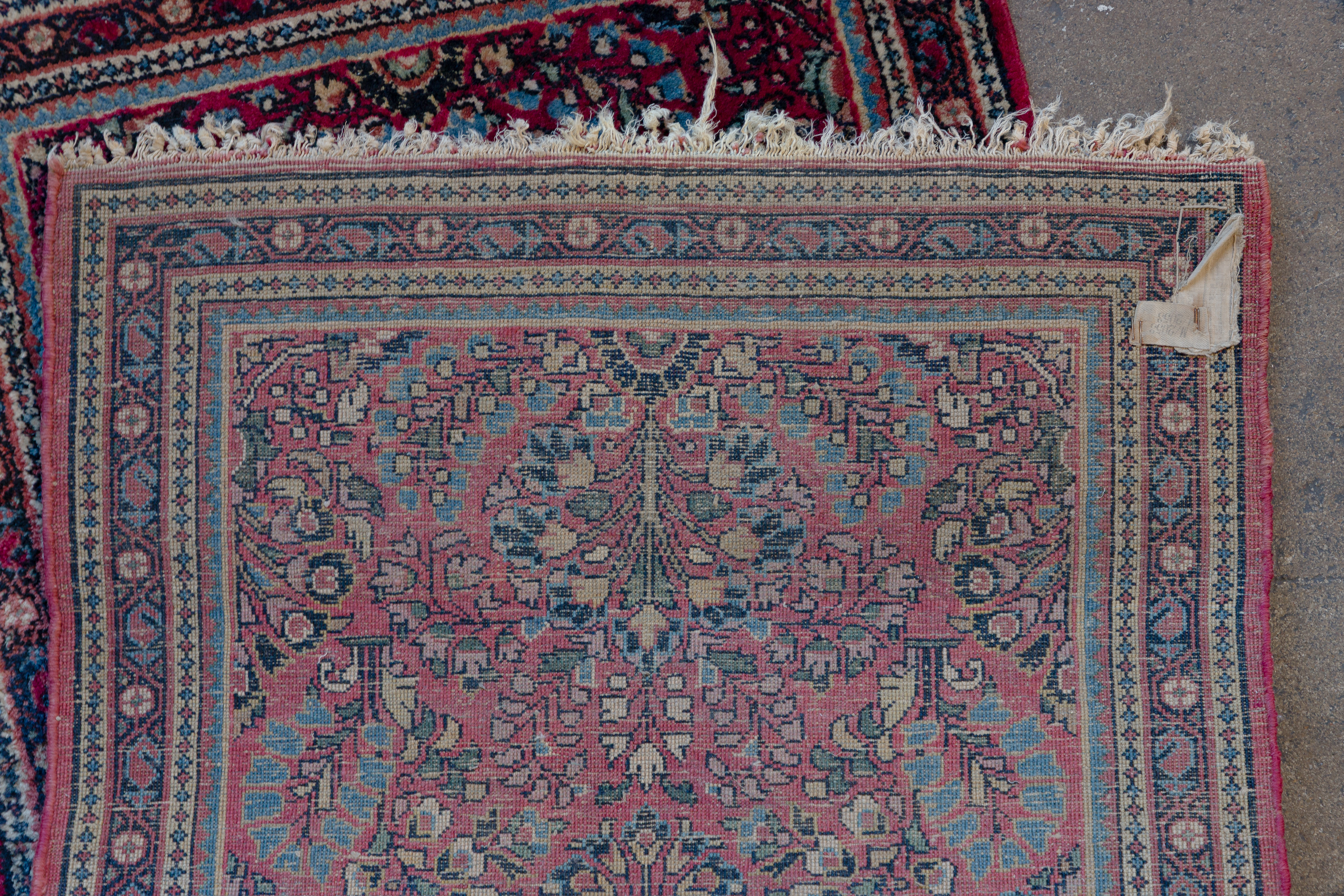 Condition: overall light to heavy wear consistent with normal use, dirt accumulation, fraying, Kazak rugs having wear through to backing in centers, loose threads, minor stains, Sarouk rugs having corner damage, fading, stains, fringe damage
