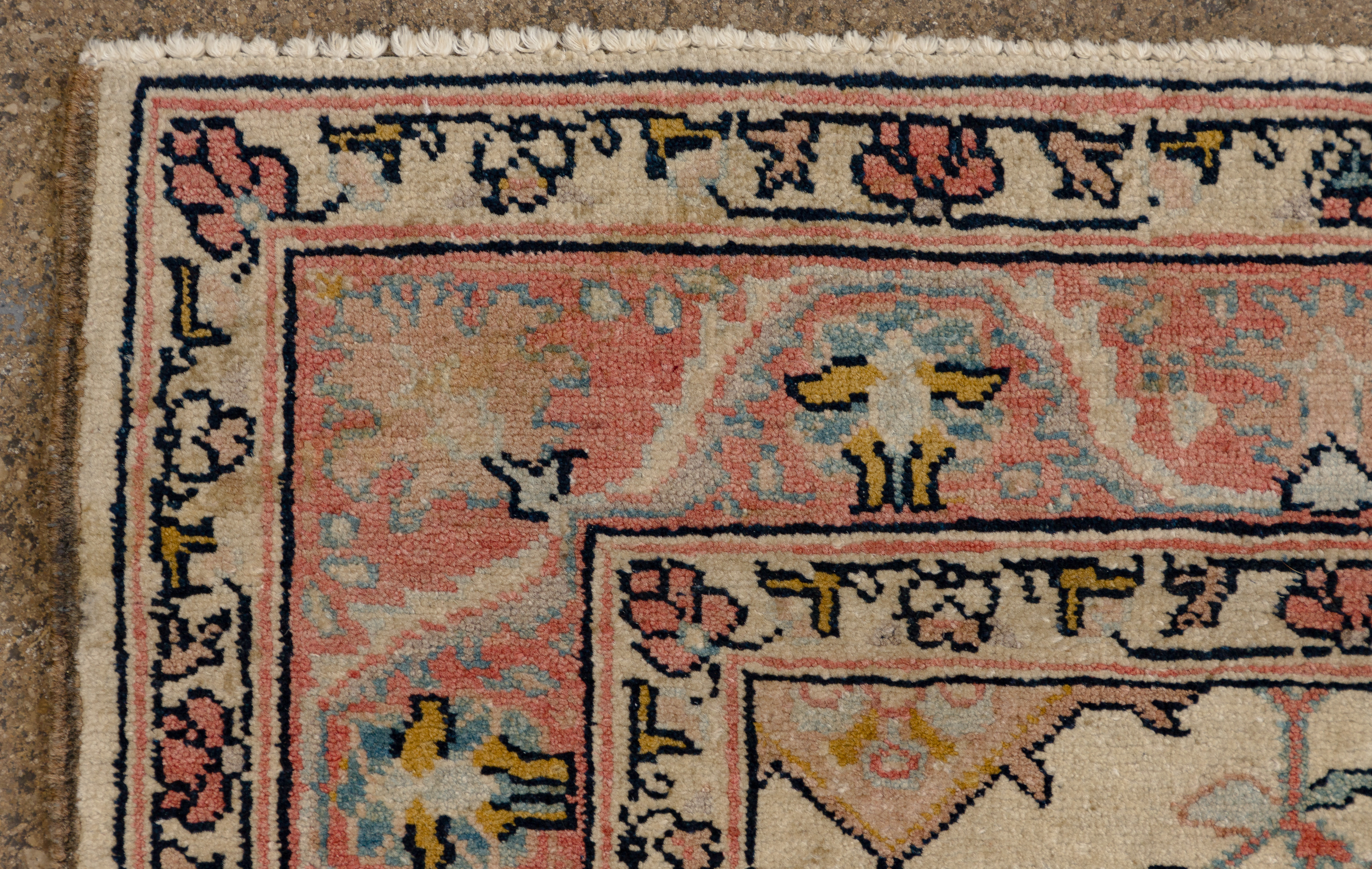 Condition: overall light to moderate wear consistent with normal use, having wear patterns, stains, minor fading, fraying, dirt accumulation and fringe damage overall