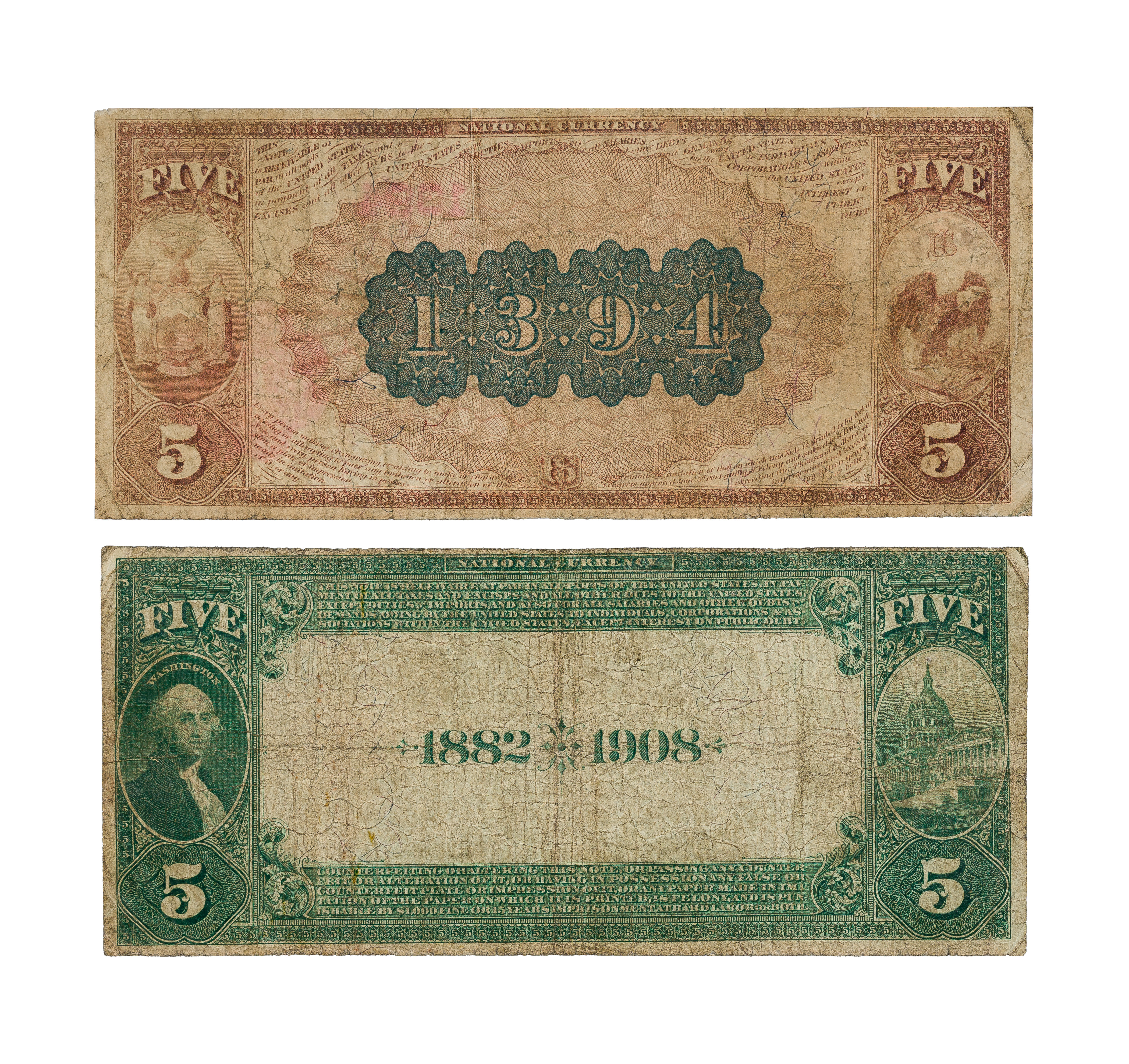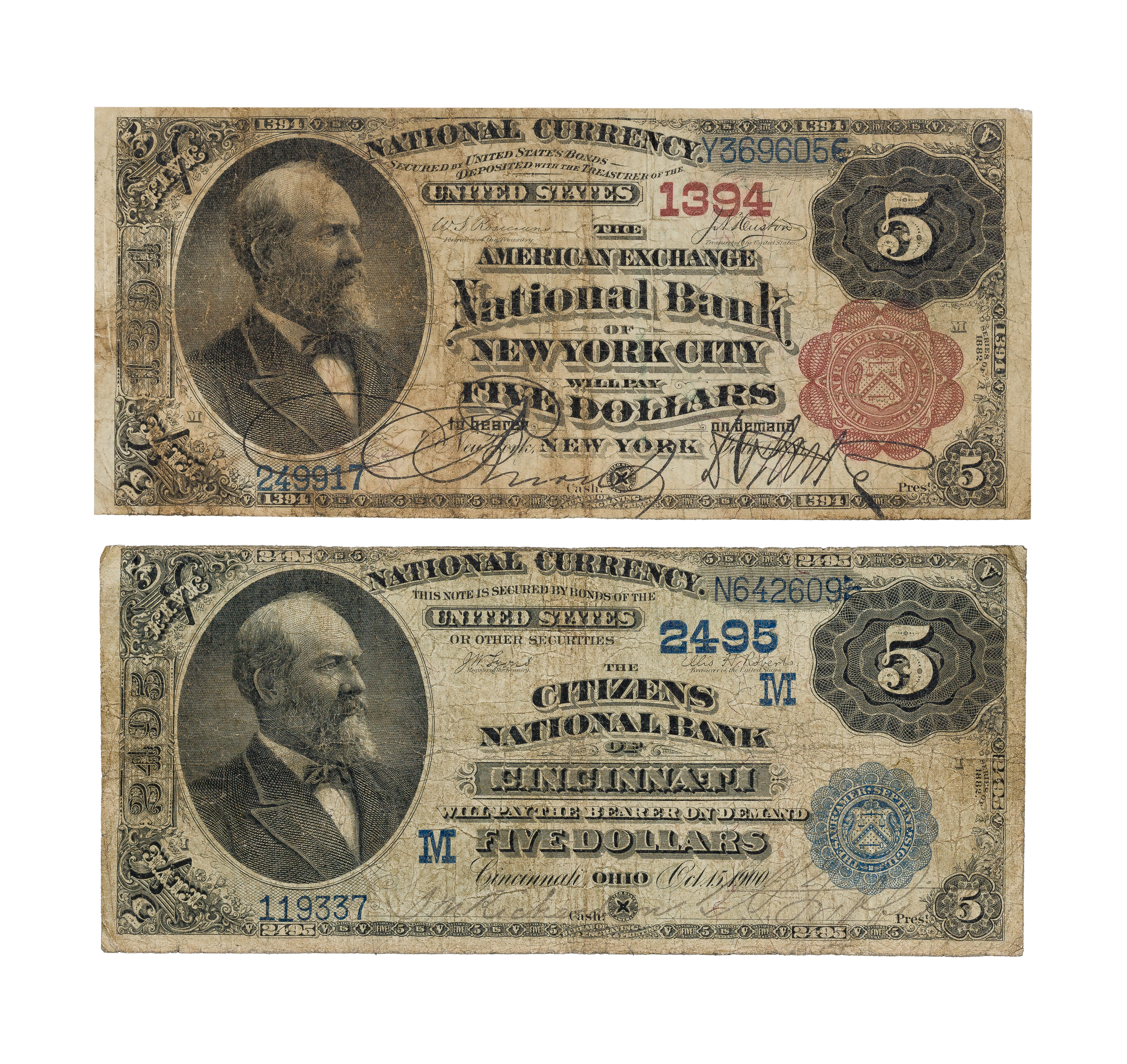 Including an 1882 $5 National Bank of New York City #1394 and an 1882 $5 Citizens National Bank of Cincinnati #2495