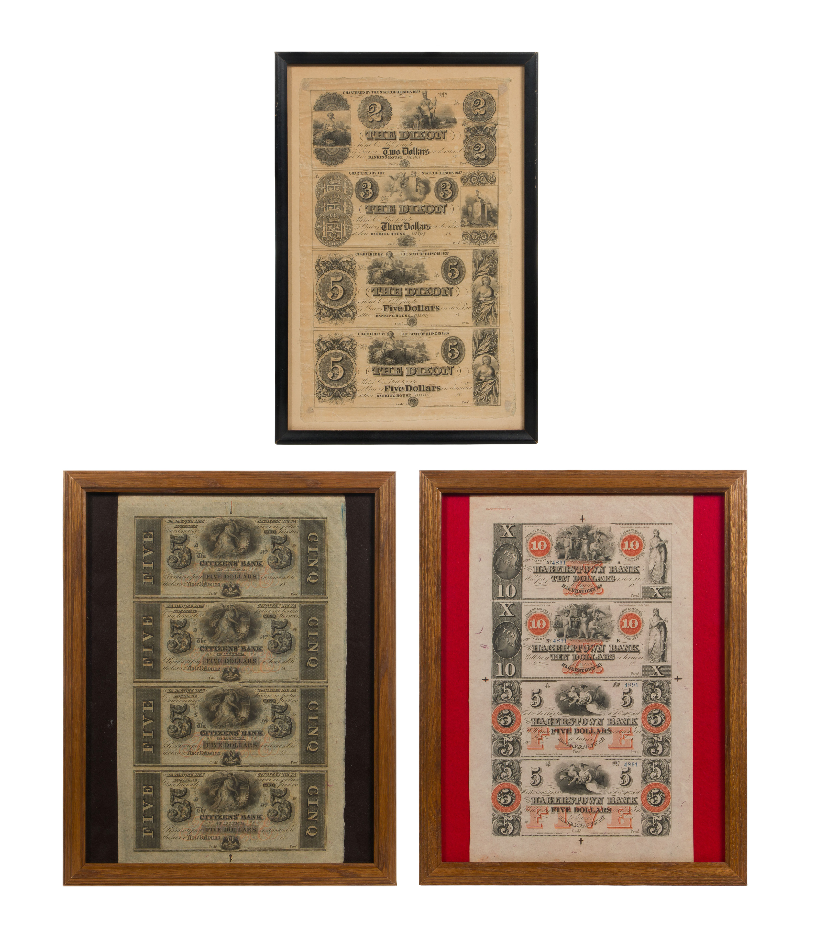 (3) items Including a Citizens Bank of Louisiana having (4) $5, a Hagerstown Bank of Maryland having (2) $10 and (2) $5 and a 1837 The Dixon Hotel Co. having a $2, $3 and (2) $5
