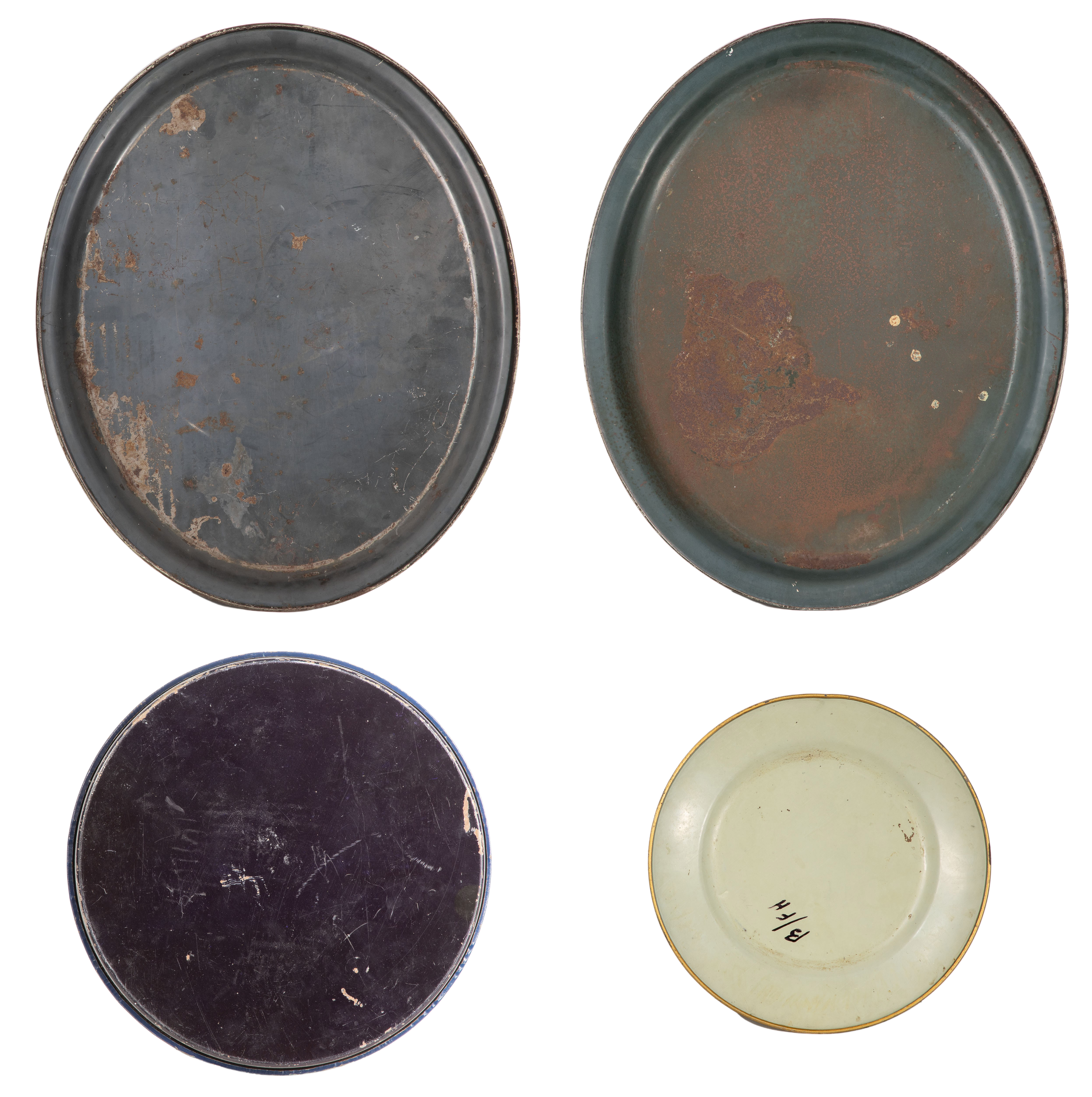 overall light to moderate wear consistent with normal use, all having chips to paint around edges, most having light scratches, ovals both having oxidation to undersides