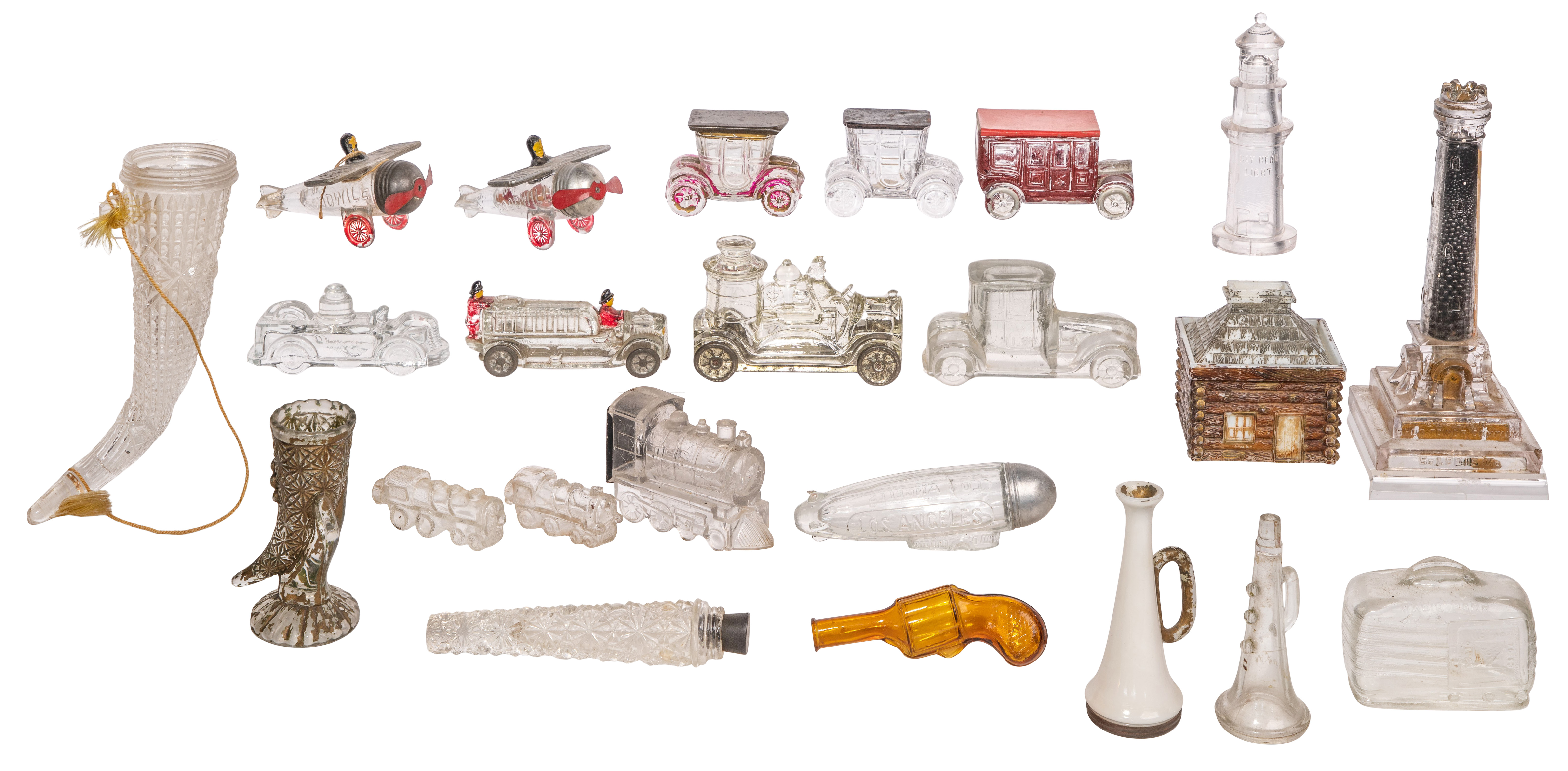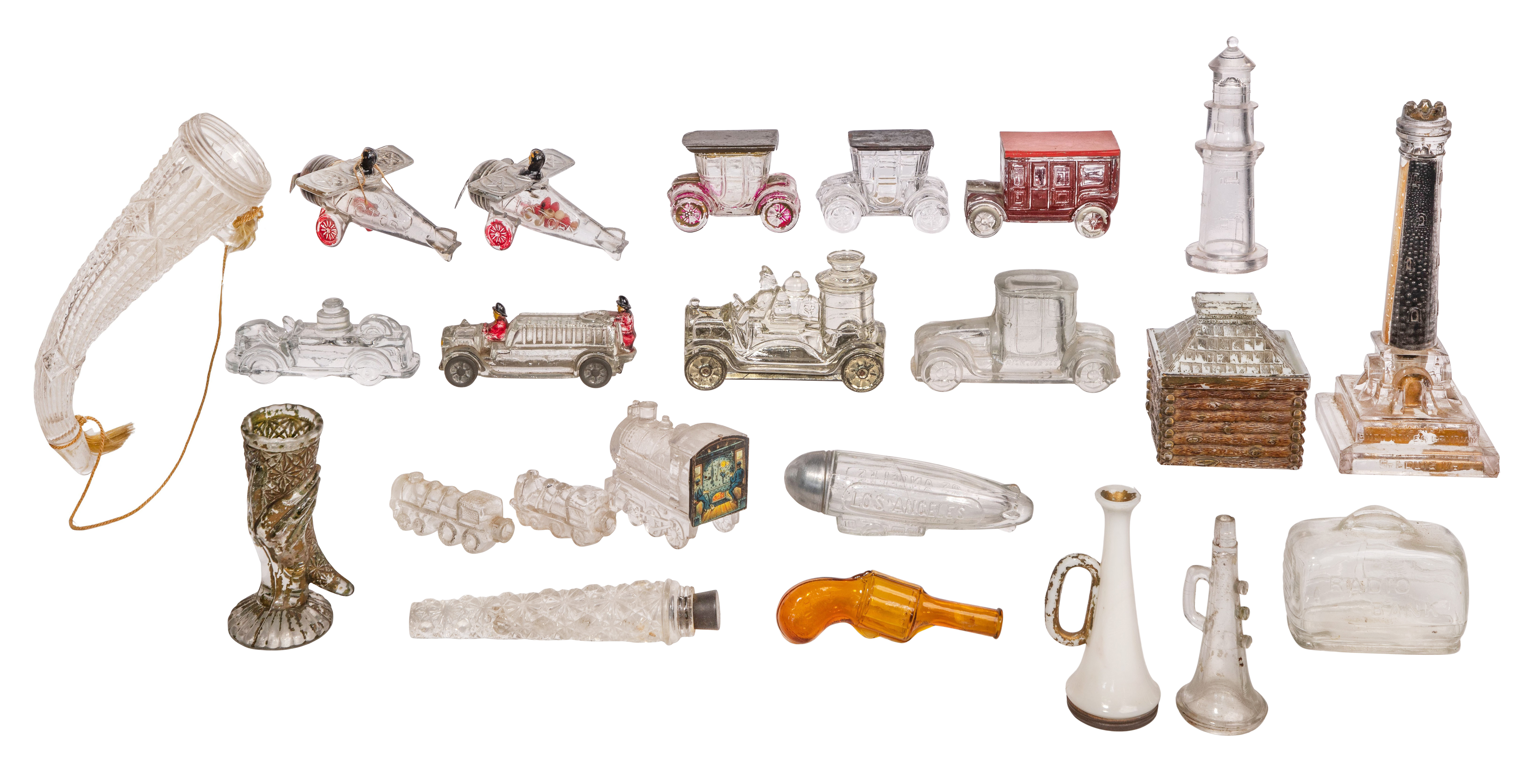 (23) jars, in various shapes, sizes and motifs including trains, cars, fire trucks, airplanes, tourist sights, some having metal accents