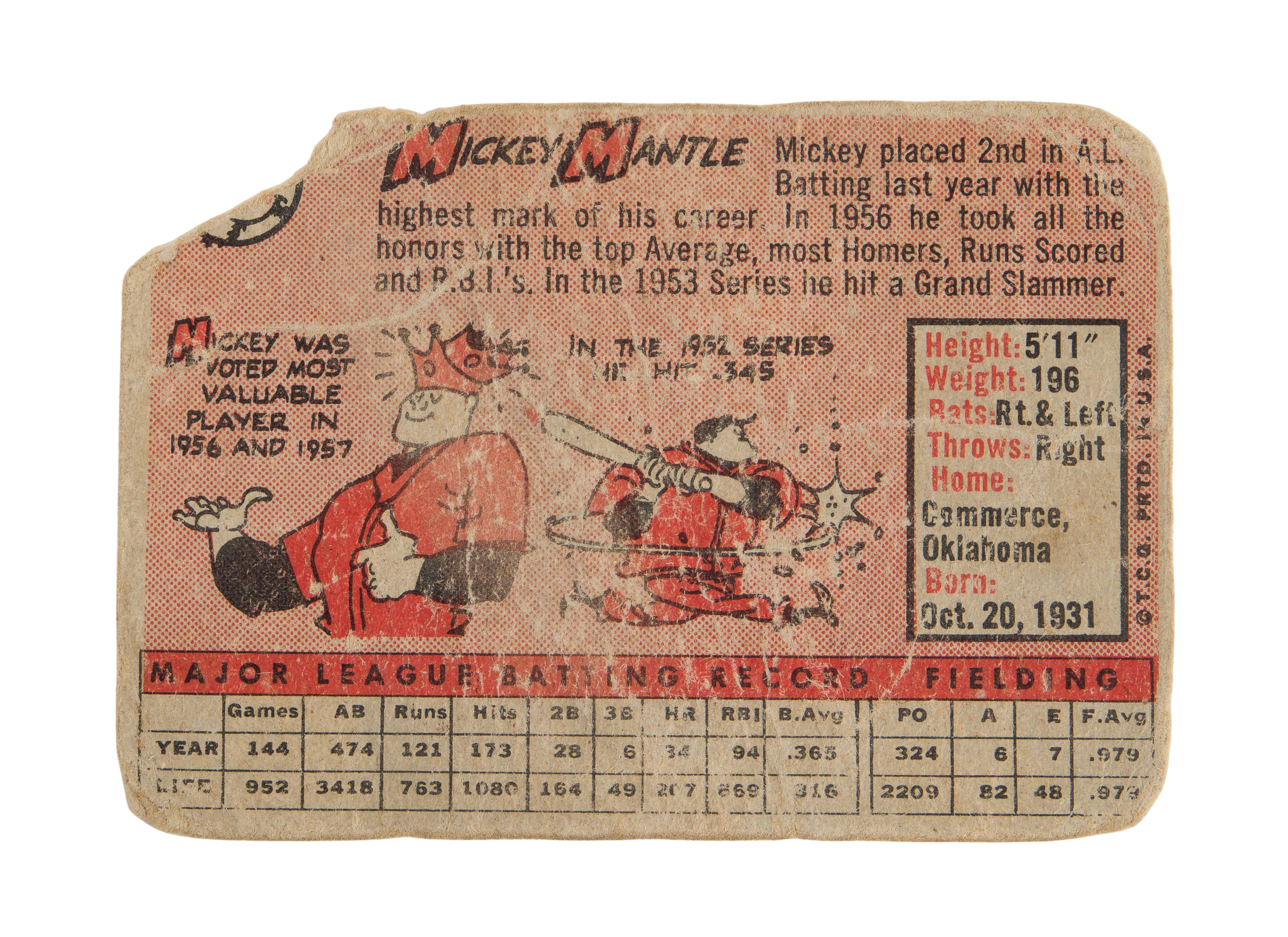 Condition: some corners slightly bent or peeling, nicks, tears, some having mild to moderate creasing, Mantle card having creasing and missing a corner